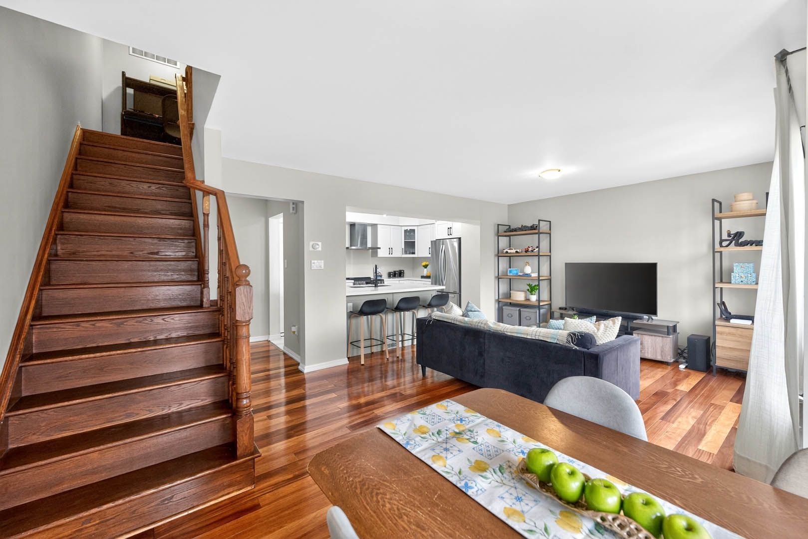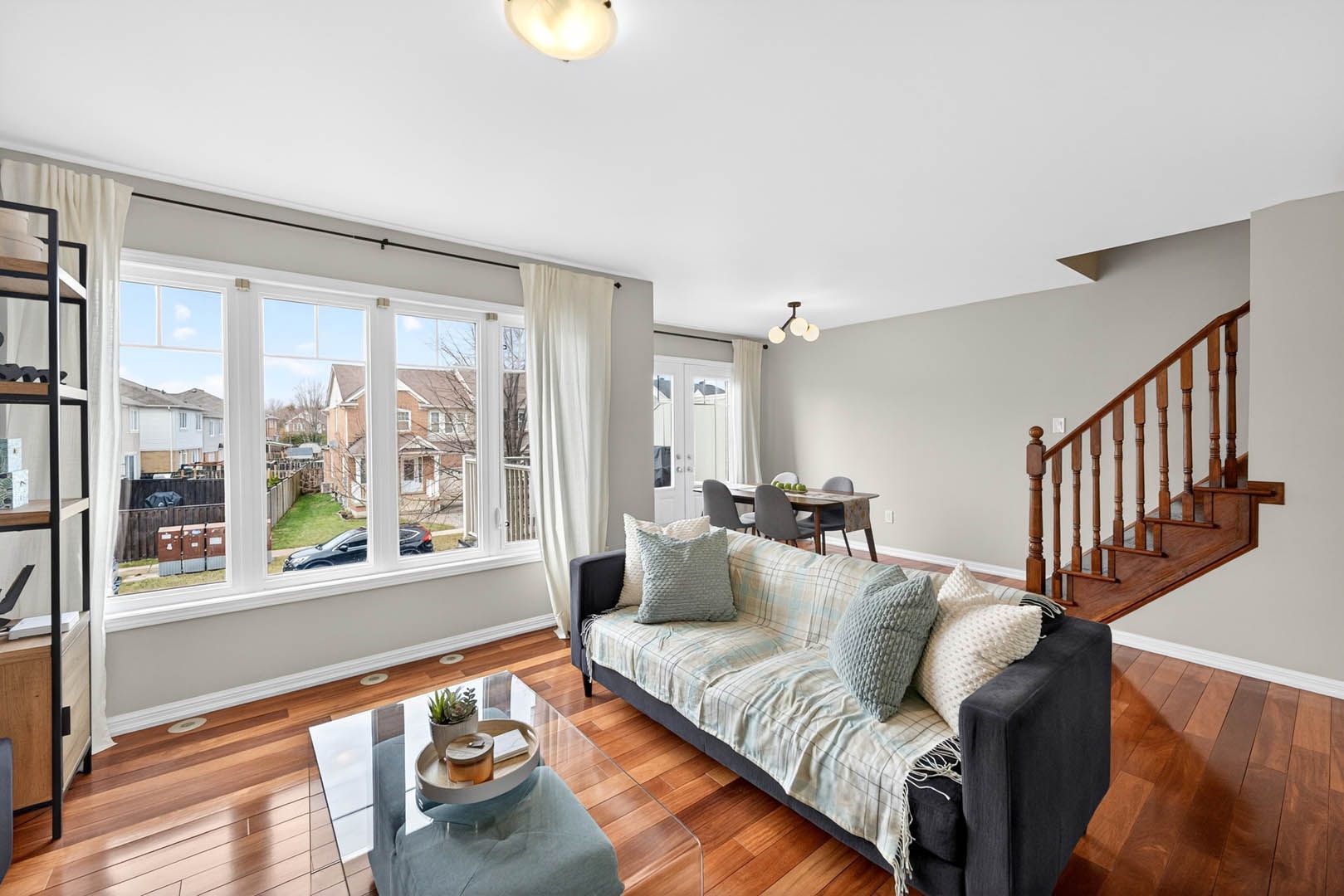 A bright well-maintained 2-bedroom + den freehold townhome - ideally located facing north for more privacy. Features a private driveway with no condo fees! Kitchen has been recently renovated in 2024 with new dishwasher, stove, and rangehood. Step out onto the balcony off the dining area to enjoy your morning coffee or unwind in the evening. Upstairs, the primary bedroom features a walk-in closet, while the second bedroom is generously sized and filled with natural light. Home has directly entry to garage with a long driveway that can park 2 cars. Located just a short walk to schools, shopping, public transit, and the go train, with quick access to main street stouffville, parks, trails, grocery stores, cafes, and community amenities. This move-in-ready home offers the perfect balance of small-town charm and everyday convenience.