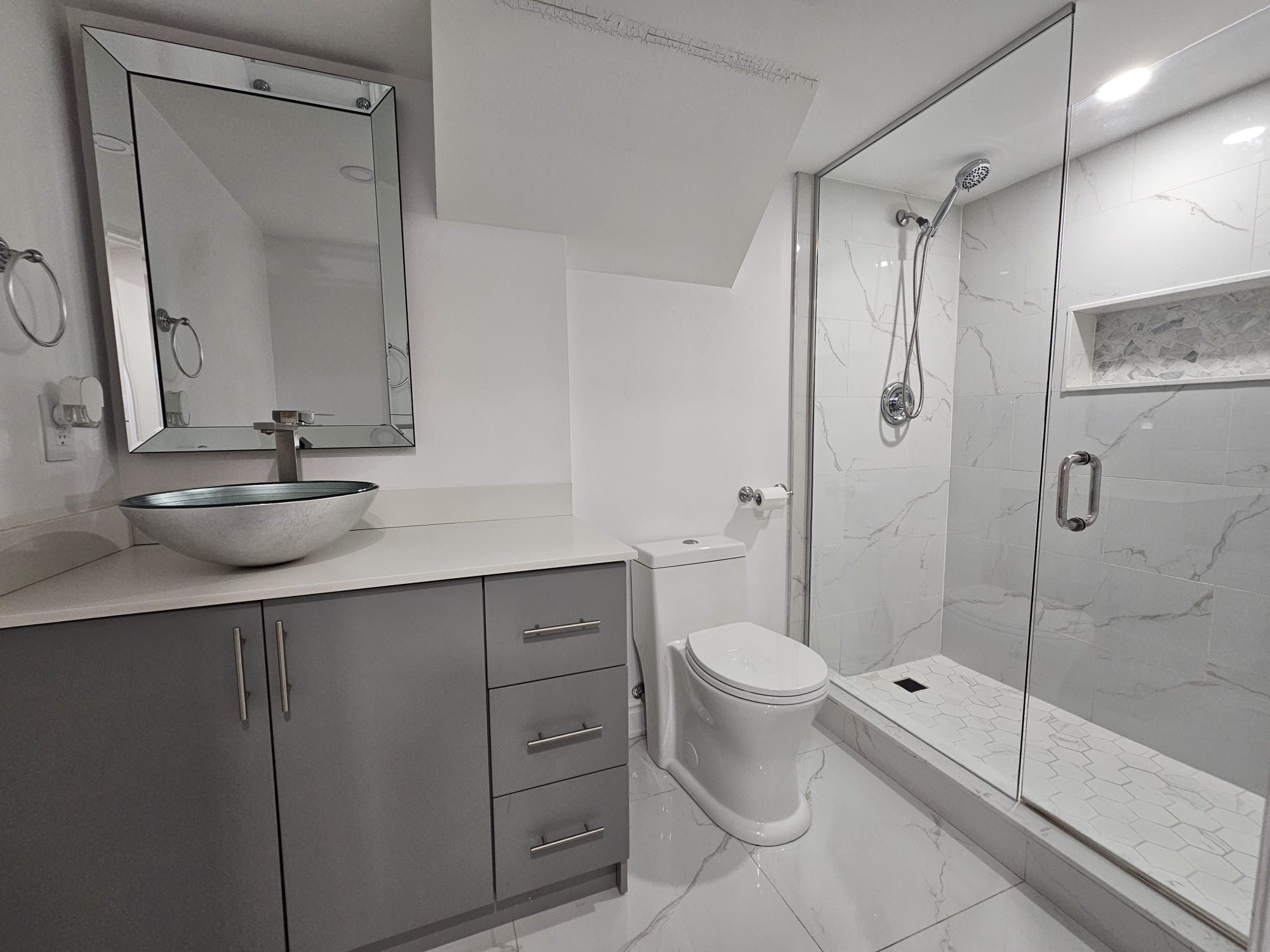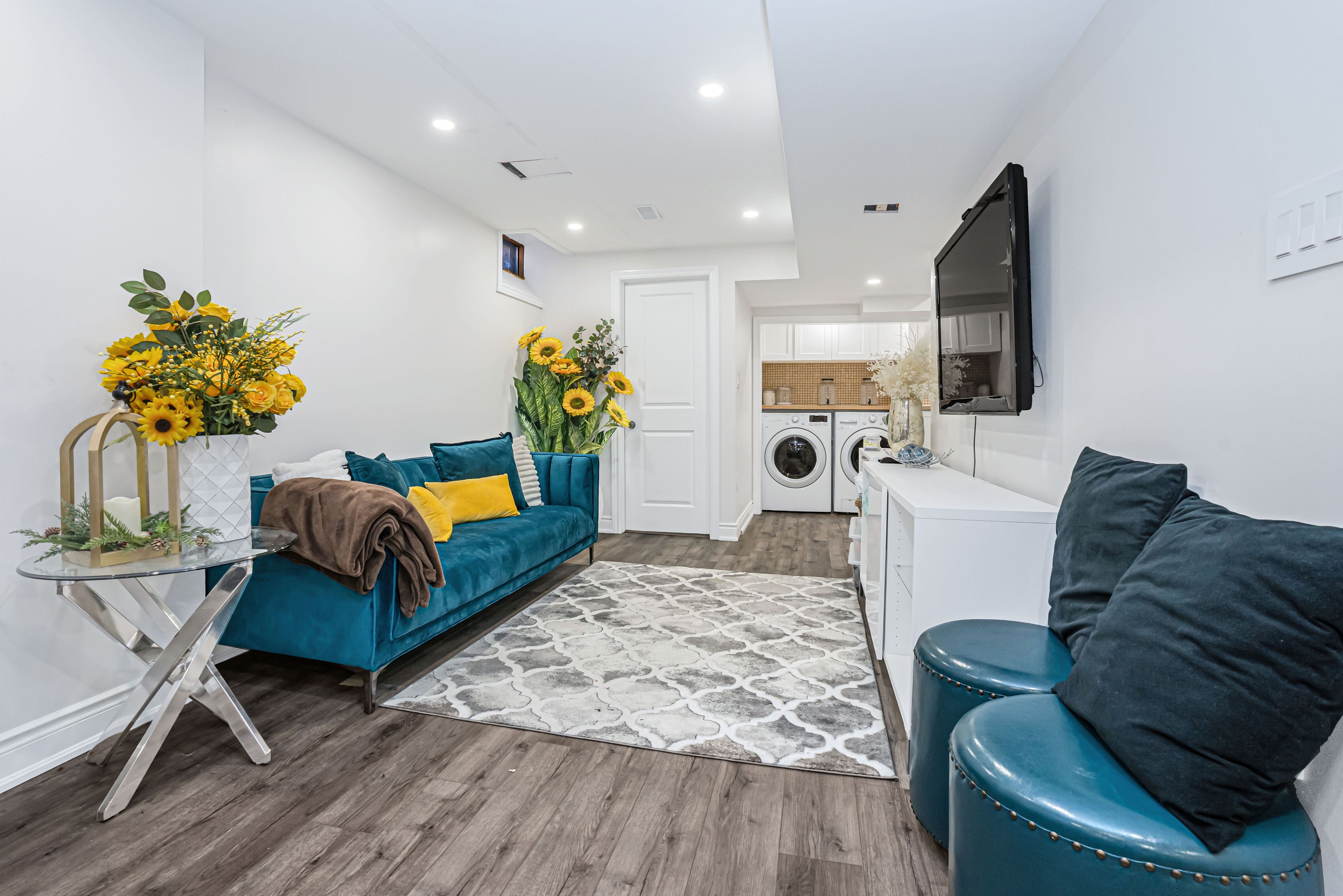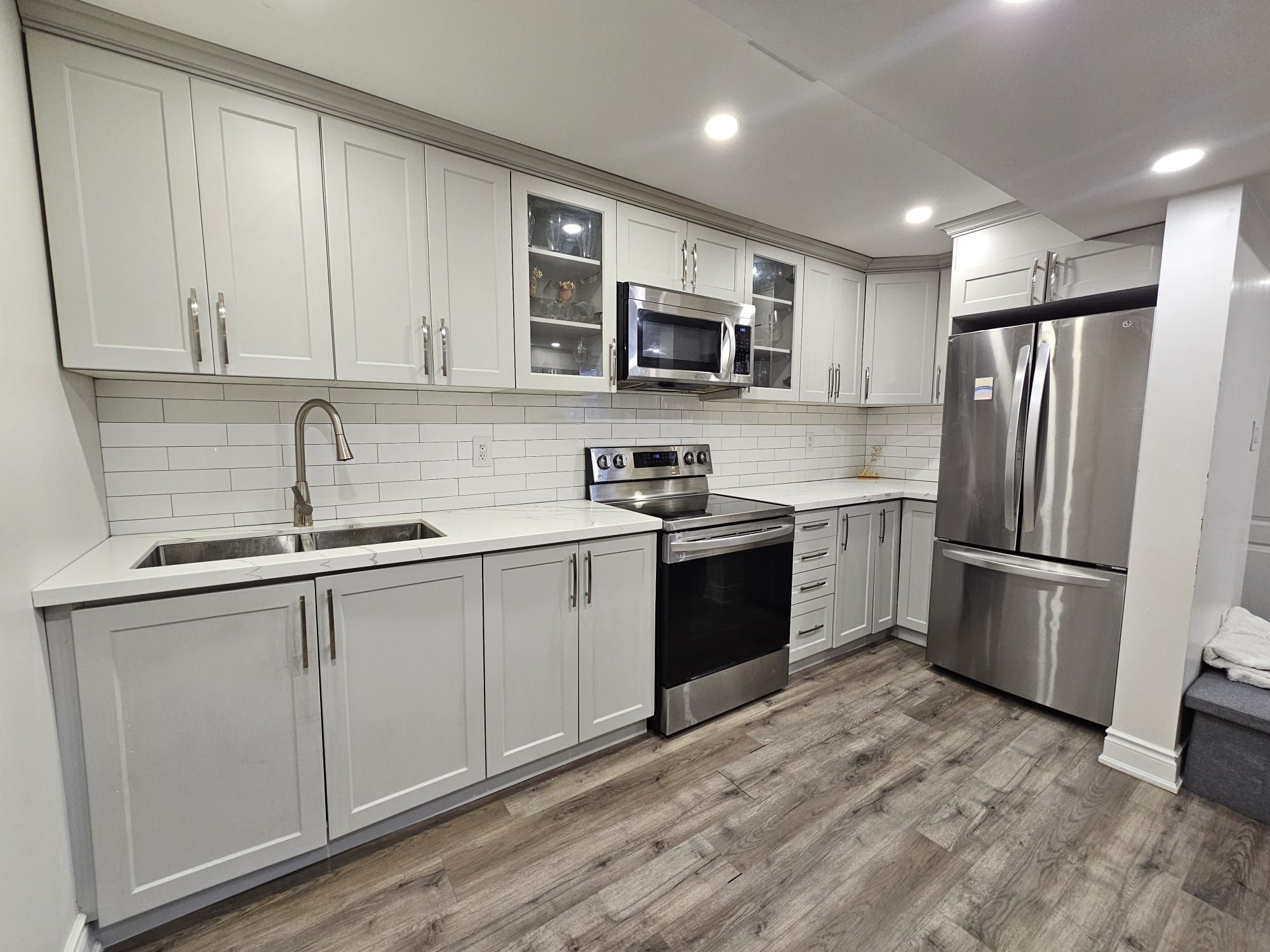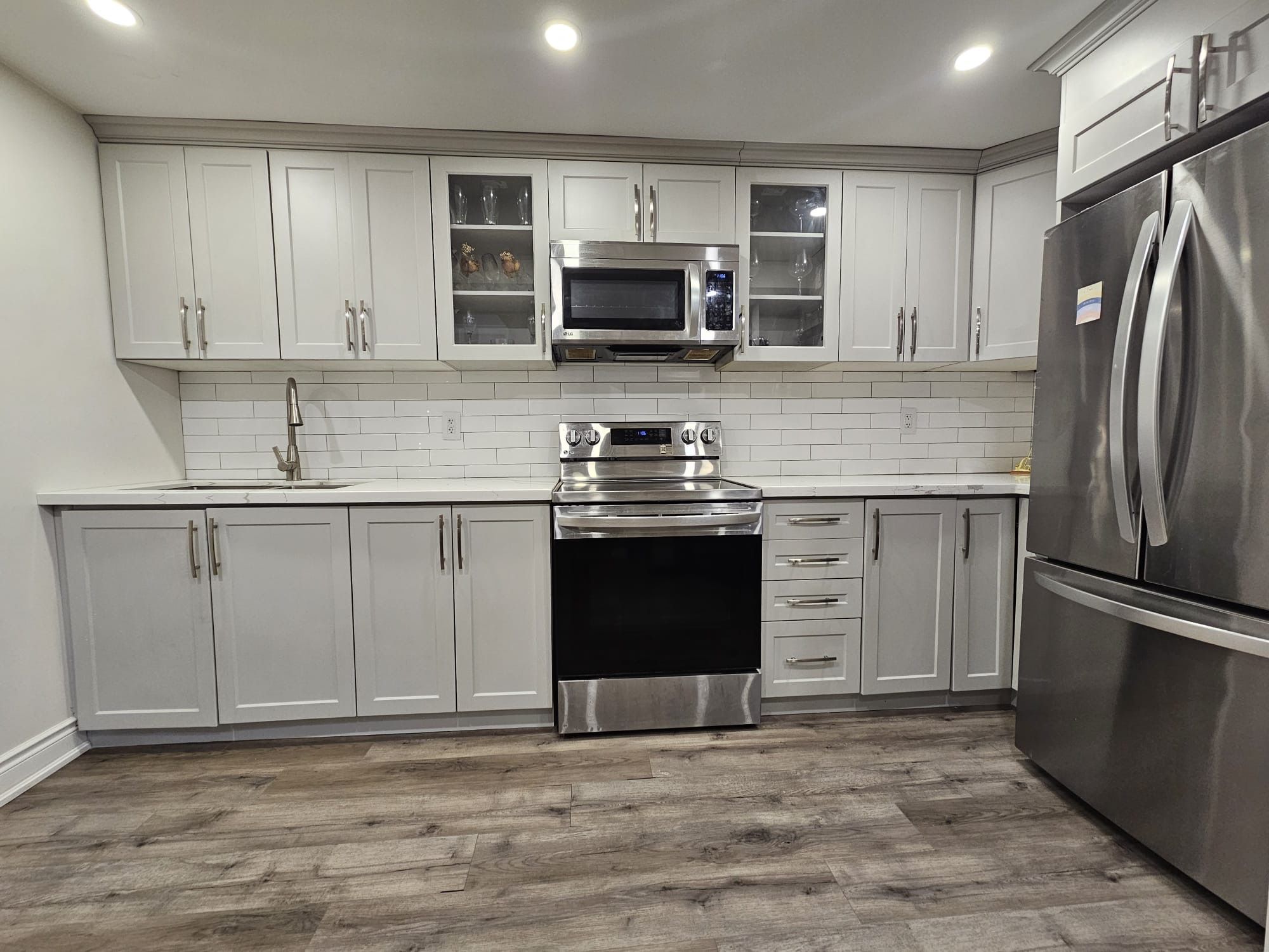 • Updated kitchen with high-end stainless steel appliances and quartz countertops.