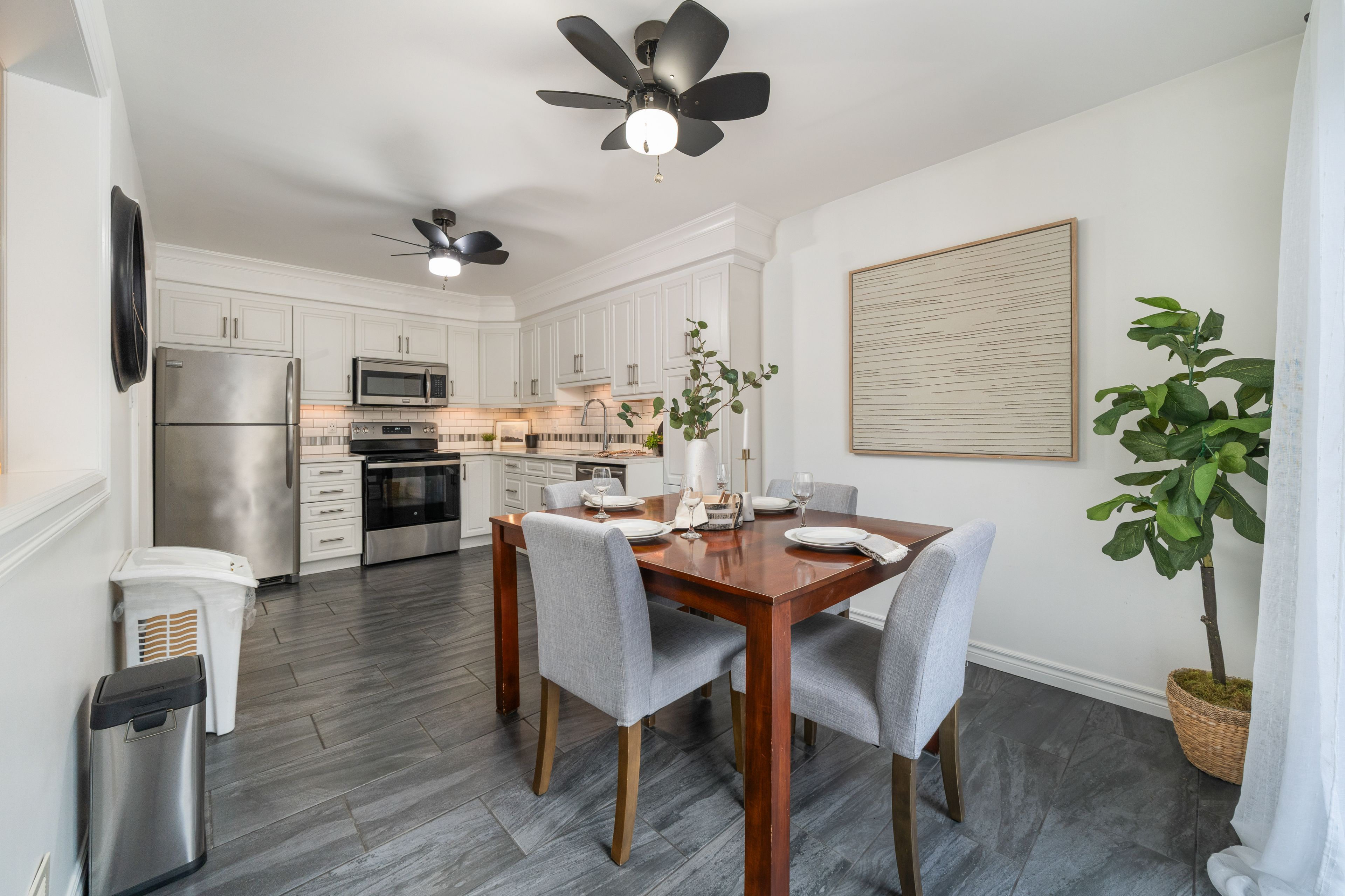 • Updated kitchen with quartz counters and bright eat-in dining area.
