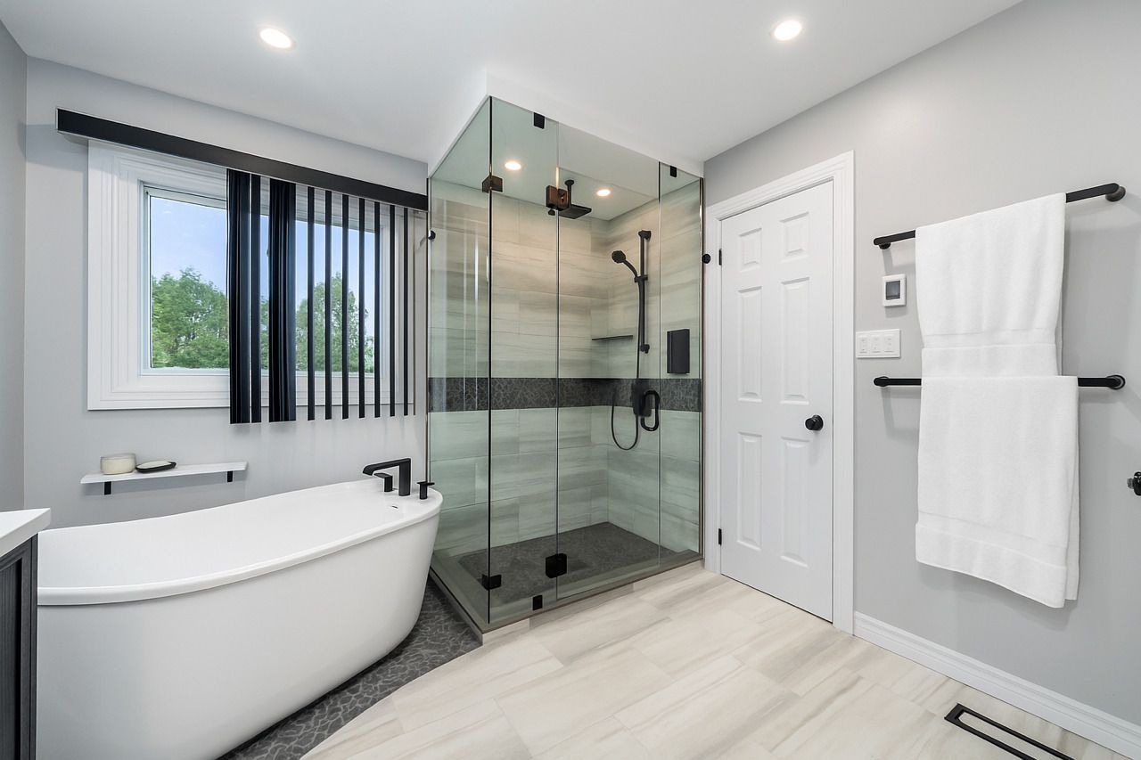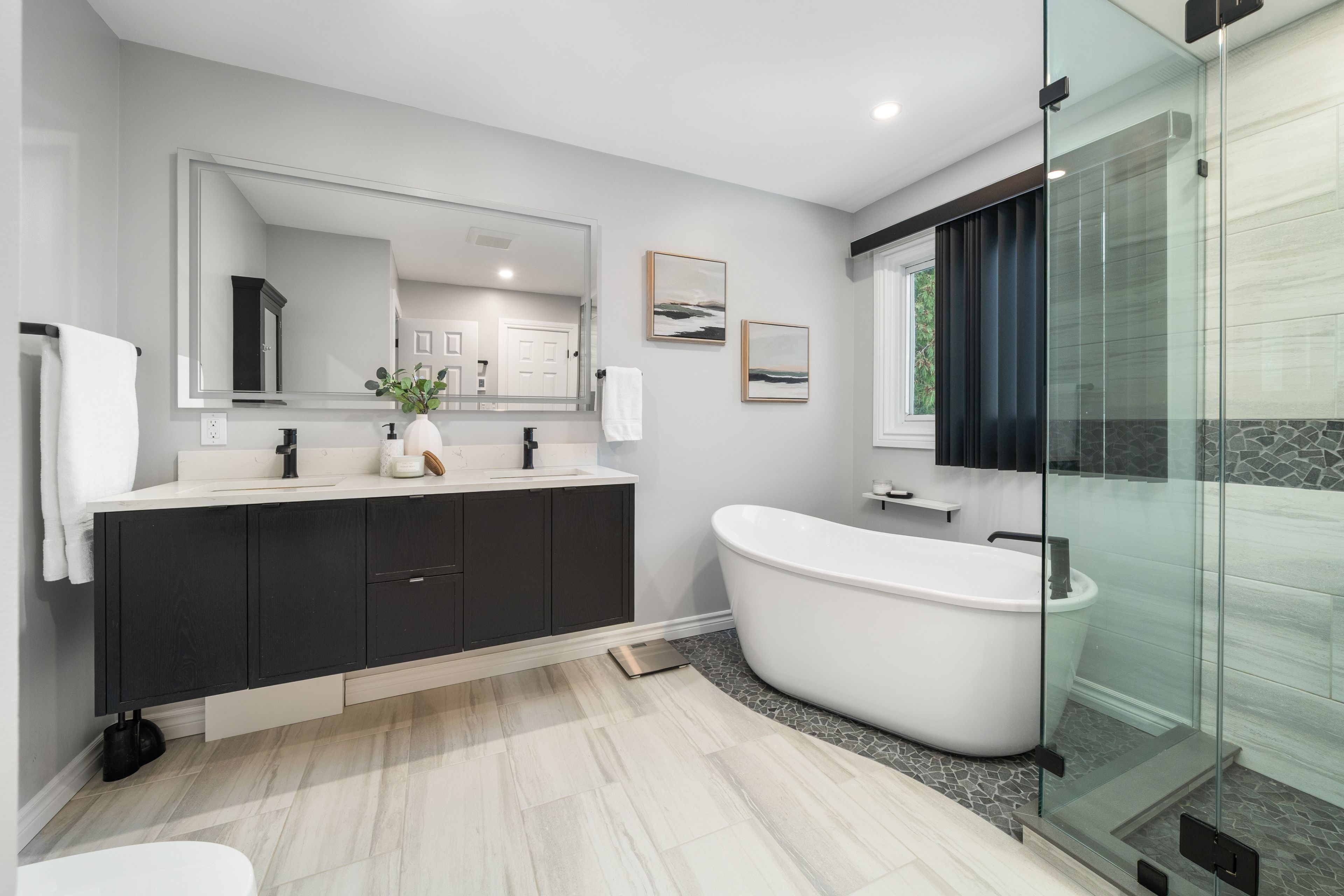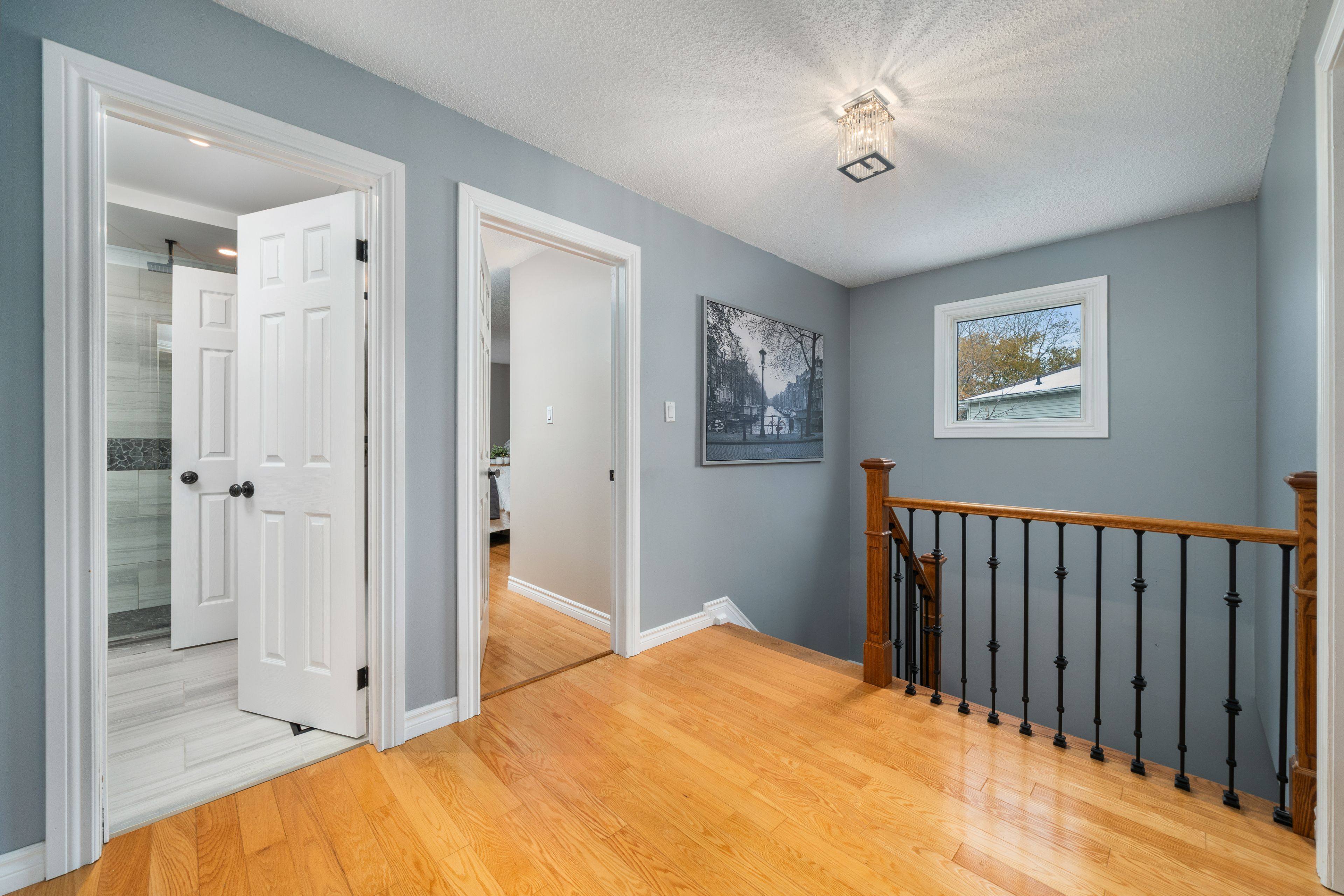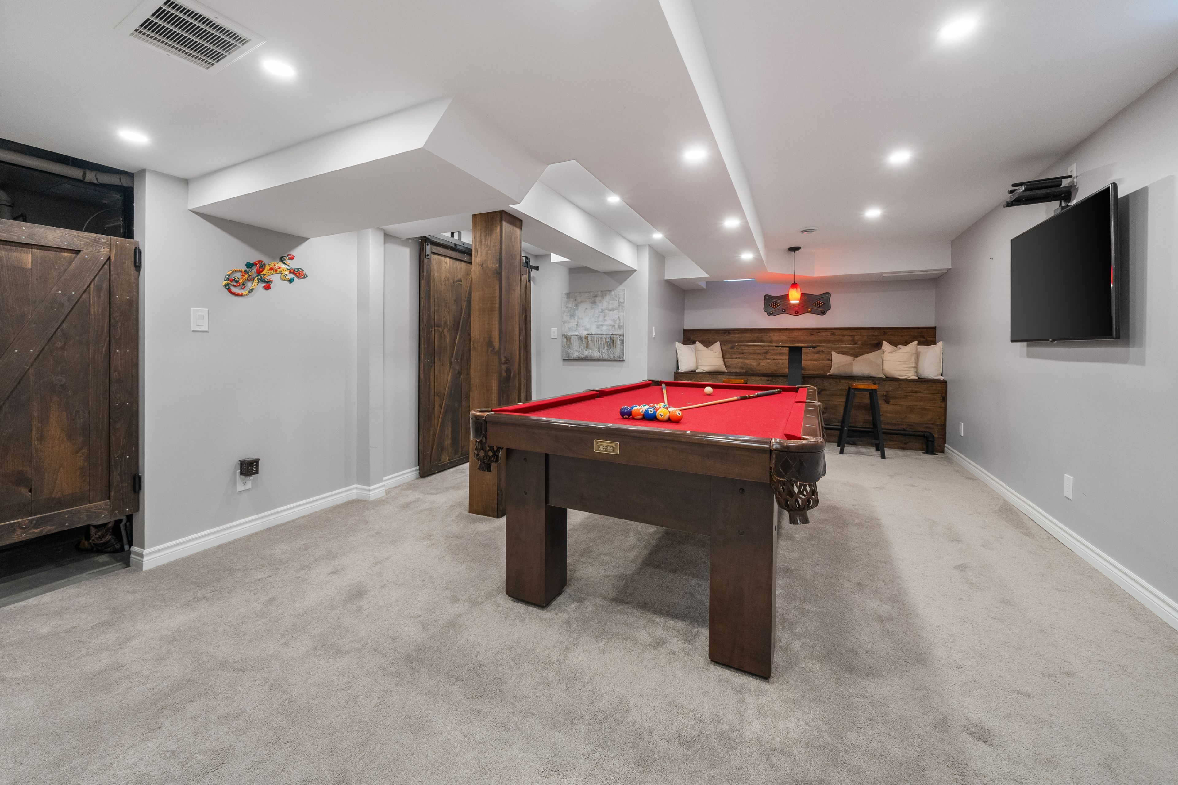 Charming port hope 3 bedroom, 2 bath, 2-storey home situated in a great family neighbourhood. The main floor features an updated kitchen with quartz counters and a bright eat-in dining area with walkout to the rear deck, plus a cozy living room with gas fireplace and convenient 2pc bath. Upstairs offers two secondary bedrooms and a newly renovated main bath showcasing a luxurious soaker tub, double sinks with quartz counters, custom tiled glass shower (schluter waterproofed), luminous anti fog mirror and heated floors. Semi-ensuite access to the spacious primary bedroom with walk-in closet. The finished lower level provides a great rec room space-currently set up with a pool table (included)-plus built-in bench seating, laundry and utility areas. Outside features a new deck, hot tub, above-ground pool, and usable yard space, ideal for summer entertaining. Attached one-car garage with myq wifi opener adds convenience and functionality. Pathway access to hewson park just steps away. Updates: metal roof (2023 on garage & over kitchen; main roof 2025), deck (2020), above-ground pool (2020), ac (2018), main bath renovation (2024), basement finishing (2018). All completed with necessary permits. Move-in ready and easy to show in this welcoming family location!