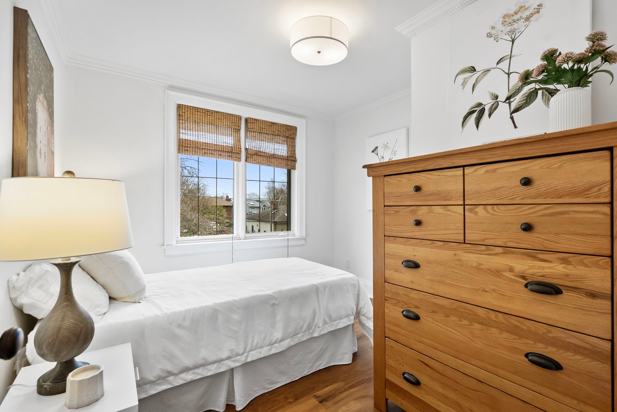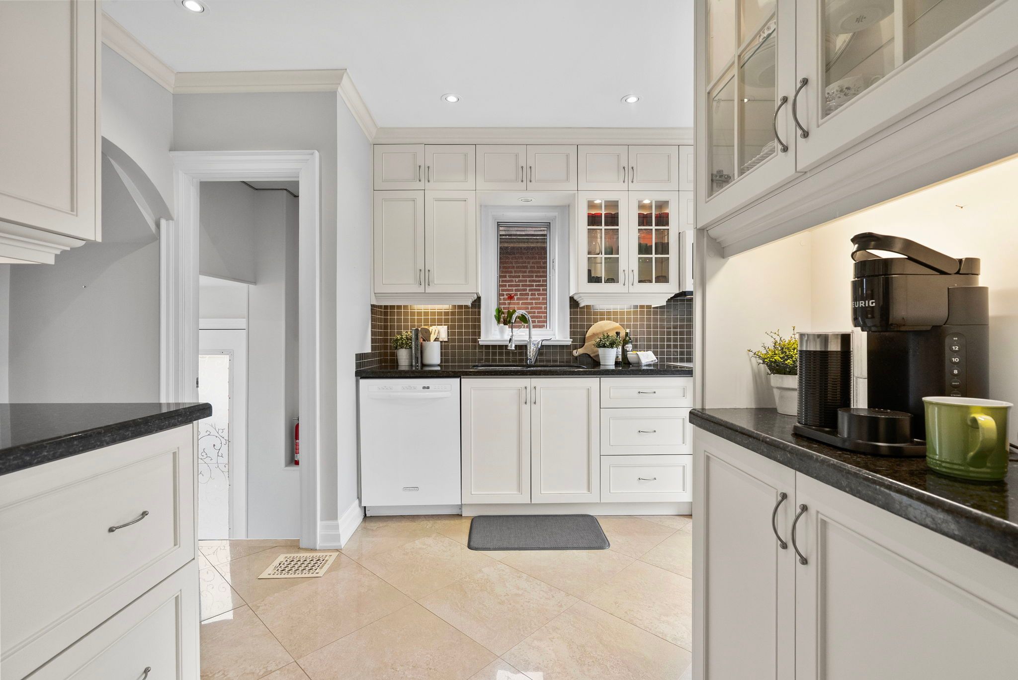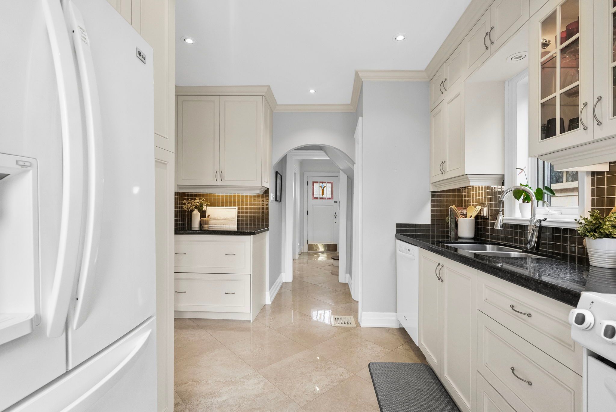 The crescents of mimico will stop you in your tracks - mature trees arching overhead, gentle curves in the topography, sightlines that pull you into something with actual history. Lakeside, storied, and quietly coveted. 18 dartmouth holds its own here. Stately georgian-craftsman architecture, a wide and generously 149'+ deep (pool sized) lot, a private drive, detached garage, and - for those who notice such things - the last cherry blossom to bloom on the block. Inside, the home has been updated with a steady hand and good taste. The main level is generous and grounded: a living room anchored by a stone clad fireplace, a warm dining room dressed in painted wainscoting with plate rail, and a large kitchen built for actual use - all opening to an entertainment deck and a backyard that earns your full attention. Oversized, private, and deeply green. The kind of yard where summers accumulate. You can almost smell the grill. Upstairs, three-plus-one bedrooms, all with closets. The principal connects to a jack-and-jill bath through a huge walk-in closet (big enough to become an ensuite bath) - yes -it has a laundry chute. The details here are well earned. The lower level is bright, warm, and complete with a second bath and its own separate side entrance. Practical and cozy. What makes 18 dartmouth rare is the thing no renovation can manufacture - the feeling that a home has been genuinely cared for. From the original antiqued door and stained glass on arrival, to the yard that holds an entire season in its quiet, this is a home for people who know what they're looking for. Minutes to the lake, mimico go, ttc, local shops, schools, and parks.