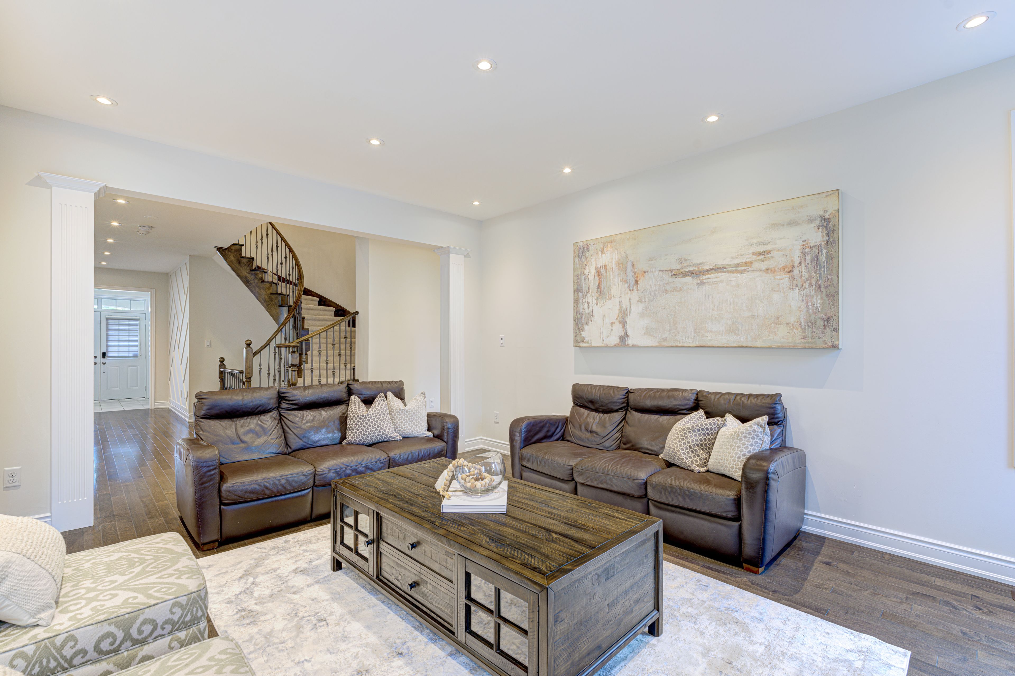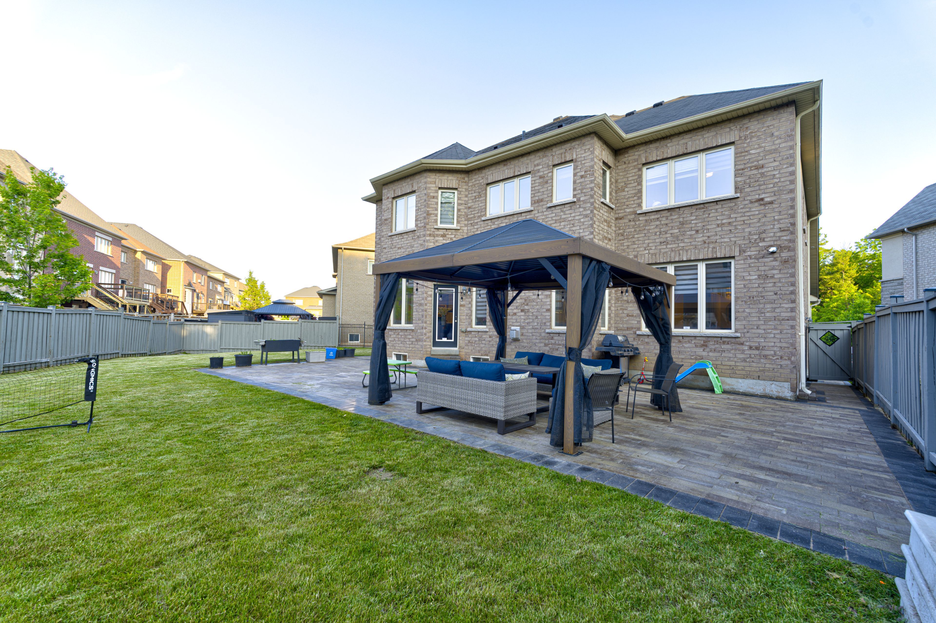 Welcome to this exquisite 5+2 bedrooms, 5-bathrooms luxury home built by tiffany park homes, offering over 5,500 sq. Ft. Of finished living space on a premium extra-wide, pool-sized ravine lot with no sidewalk, located on a quiet court street. This south-facing gem features maple hardwood flooring throughout, elegant round staircase, stone elevation, and 9-ft ceilings on the main, second floor, and legal finished basement. The main floor offers a rare full bedroom with a 3-piece bath, upgraded chef-grade kitchen with built-in appliances, custom cabinetry, large pantry, servery, and a separate living, dining, family, and breakfast area, all designed for both entertaining and functionality. Upstairs includes 3 full bathrooms and a spacious master suite with 9-ft ceilings, a custom walk-in closet, and upgraded ensuite. Enjoy upgraded finishes throughout, including no popcorn ceilings, pot lights inside and out, a feature wall, upgraded fireplace, custom built-ins in walk-in closets and bedrooms, and an upgraded main floor bathroom with private entrance from the den. The legal basement offers 9-ft ceilings and tremendous rental or in-law suite potential. Exterior upgrades include interlocking front and back with a gazebo, a balcony, and a long driveway with no sidewalk to limit parking. Recent updates include a new fridge (2023), washer (2024), and a/c (2023). This rare offering combines luxury, space, and smart investment potential in one of the areas most desirable locations.