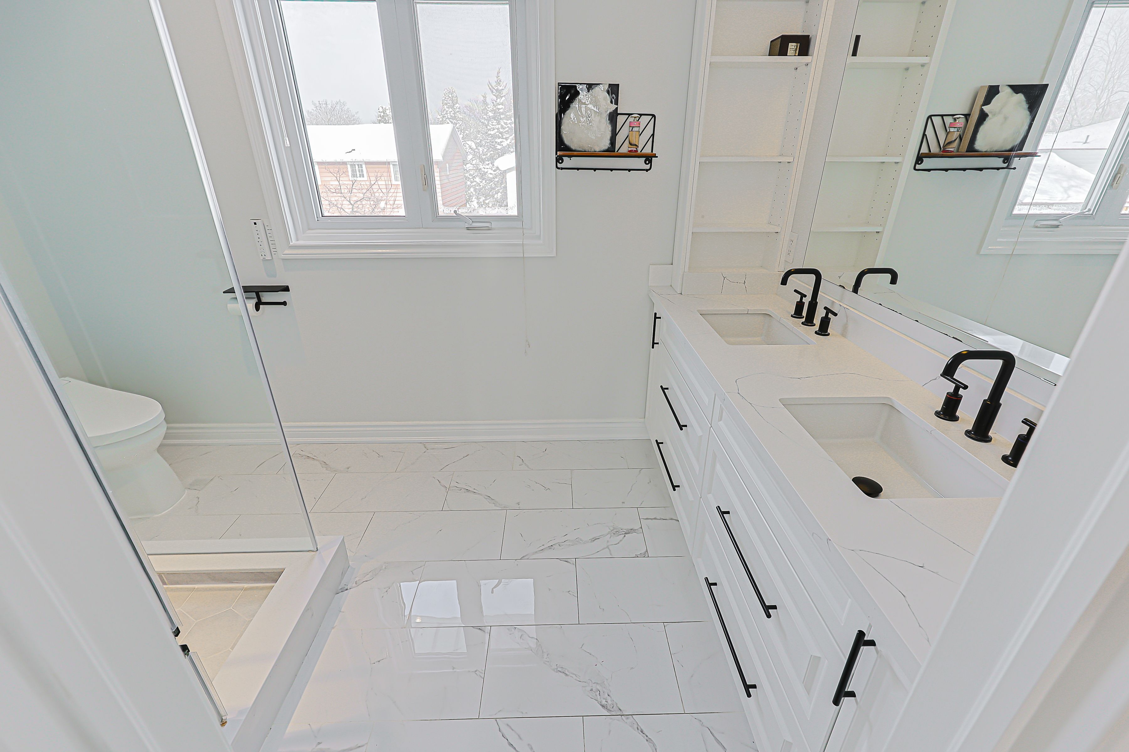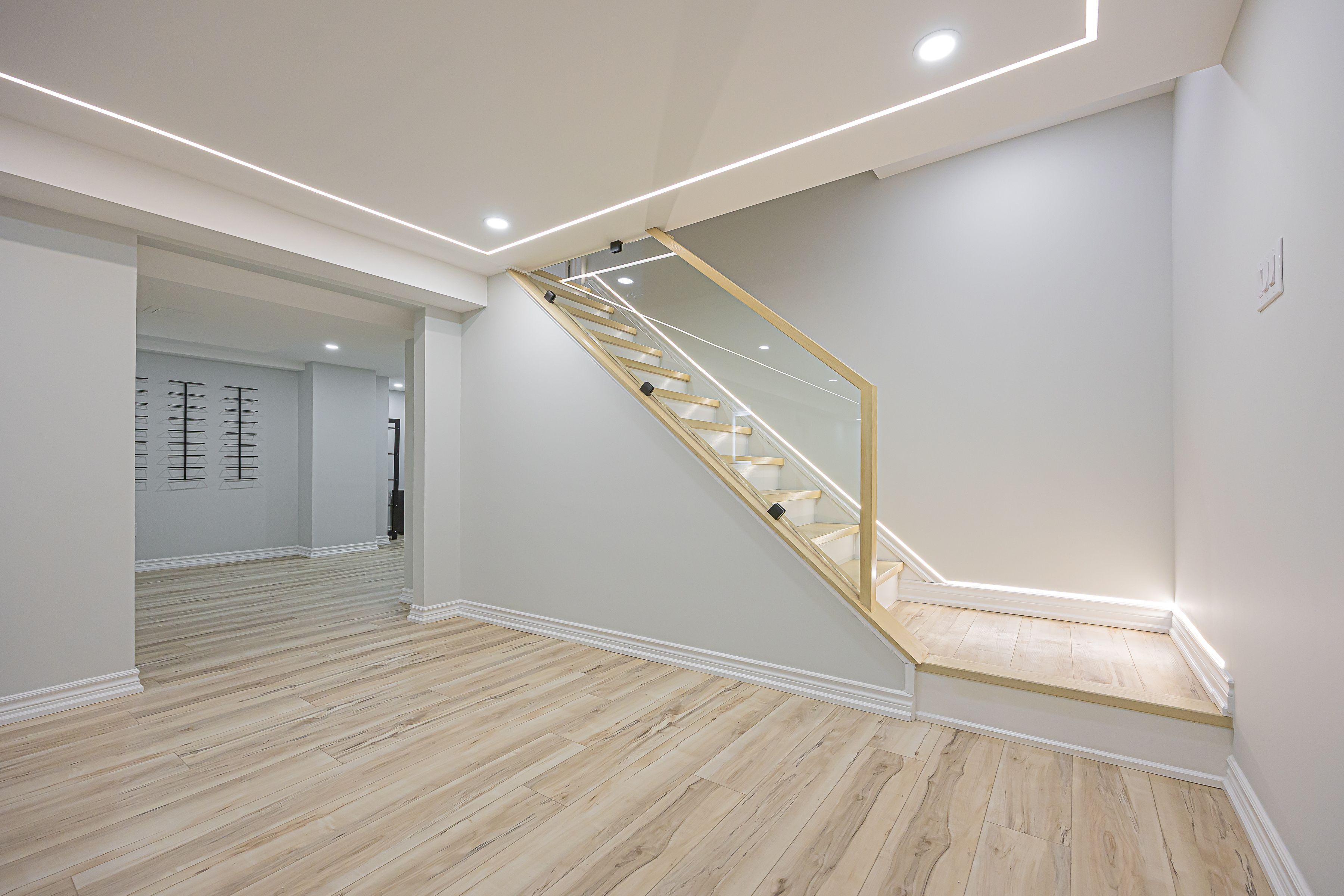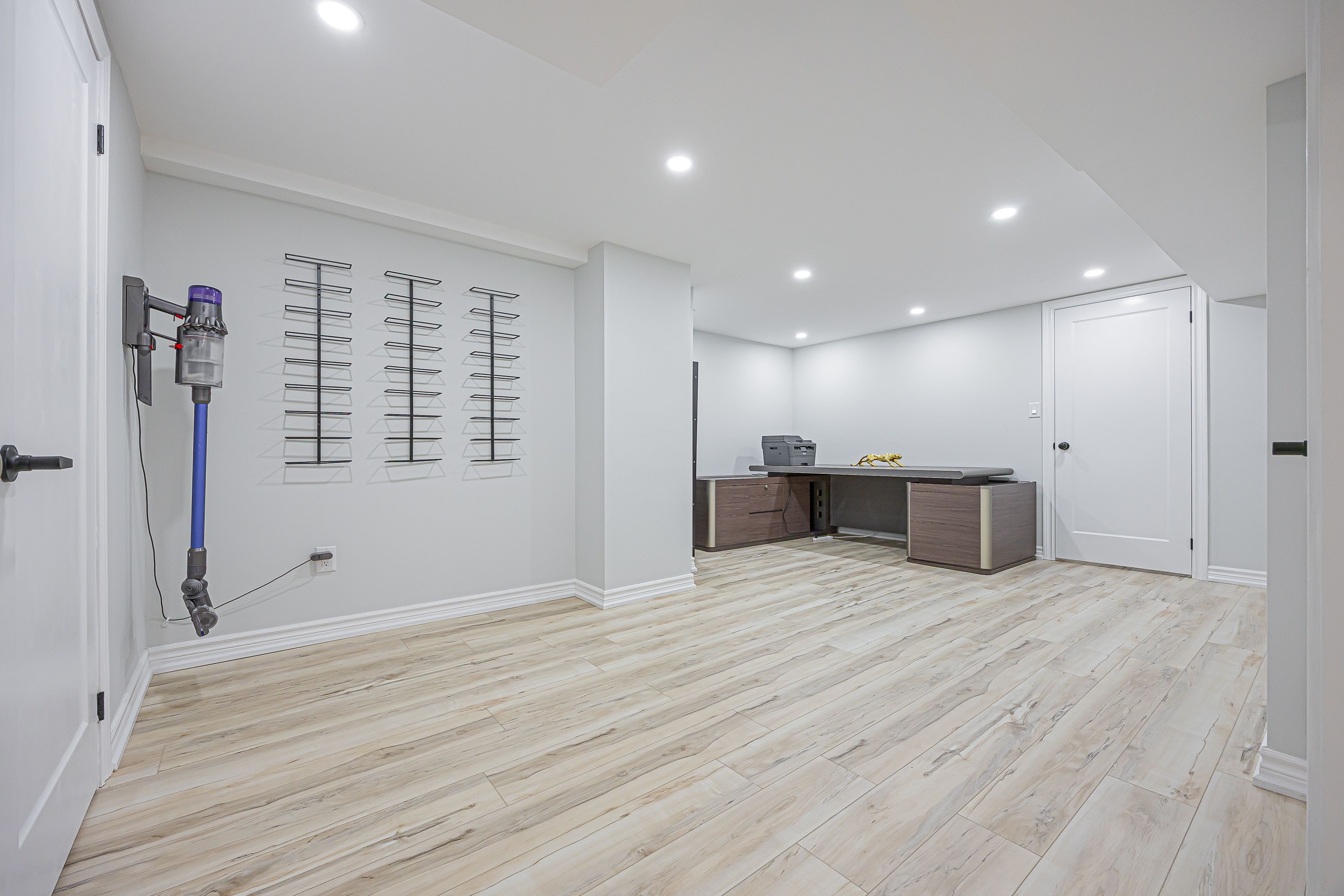 • Fully finished basement with modern amenities and stylish laundry area.