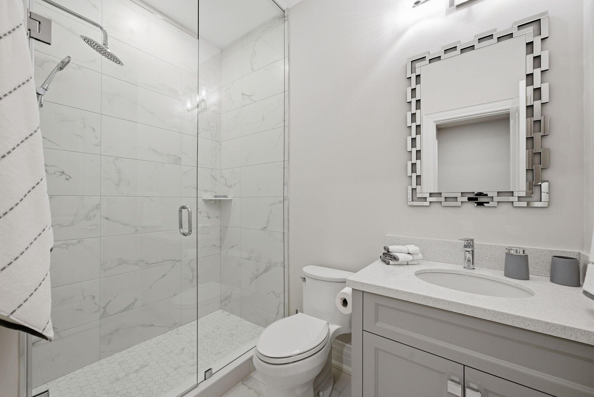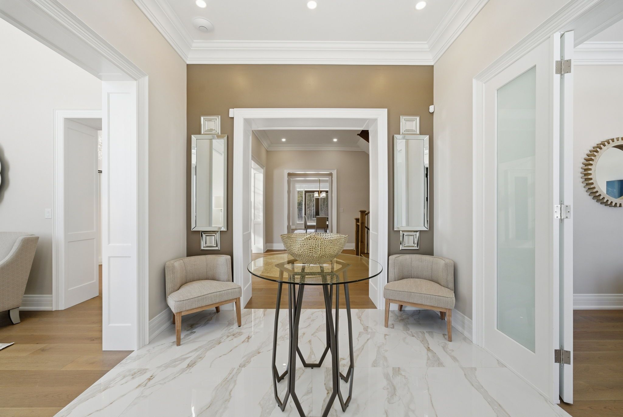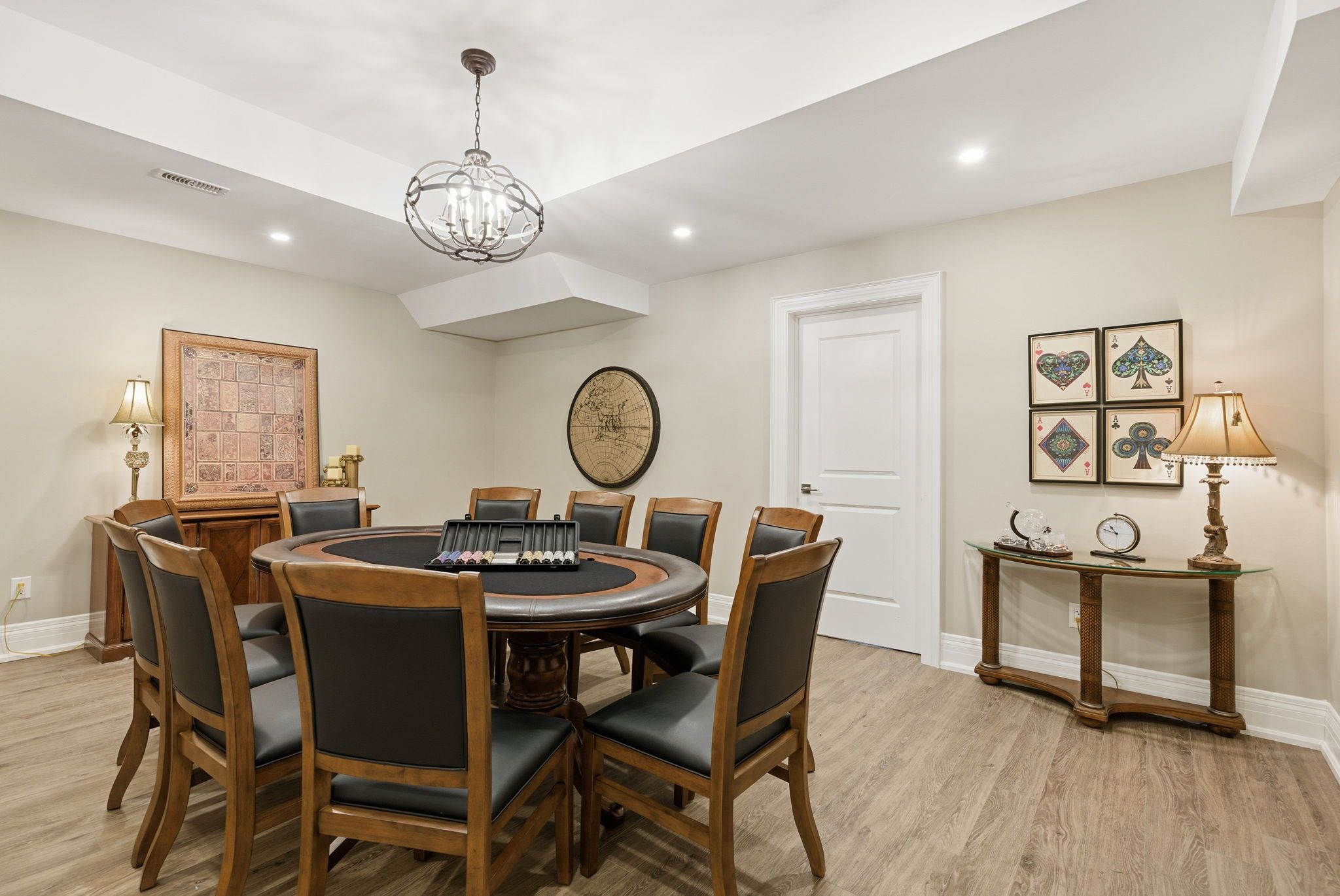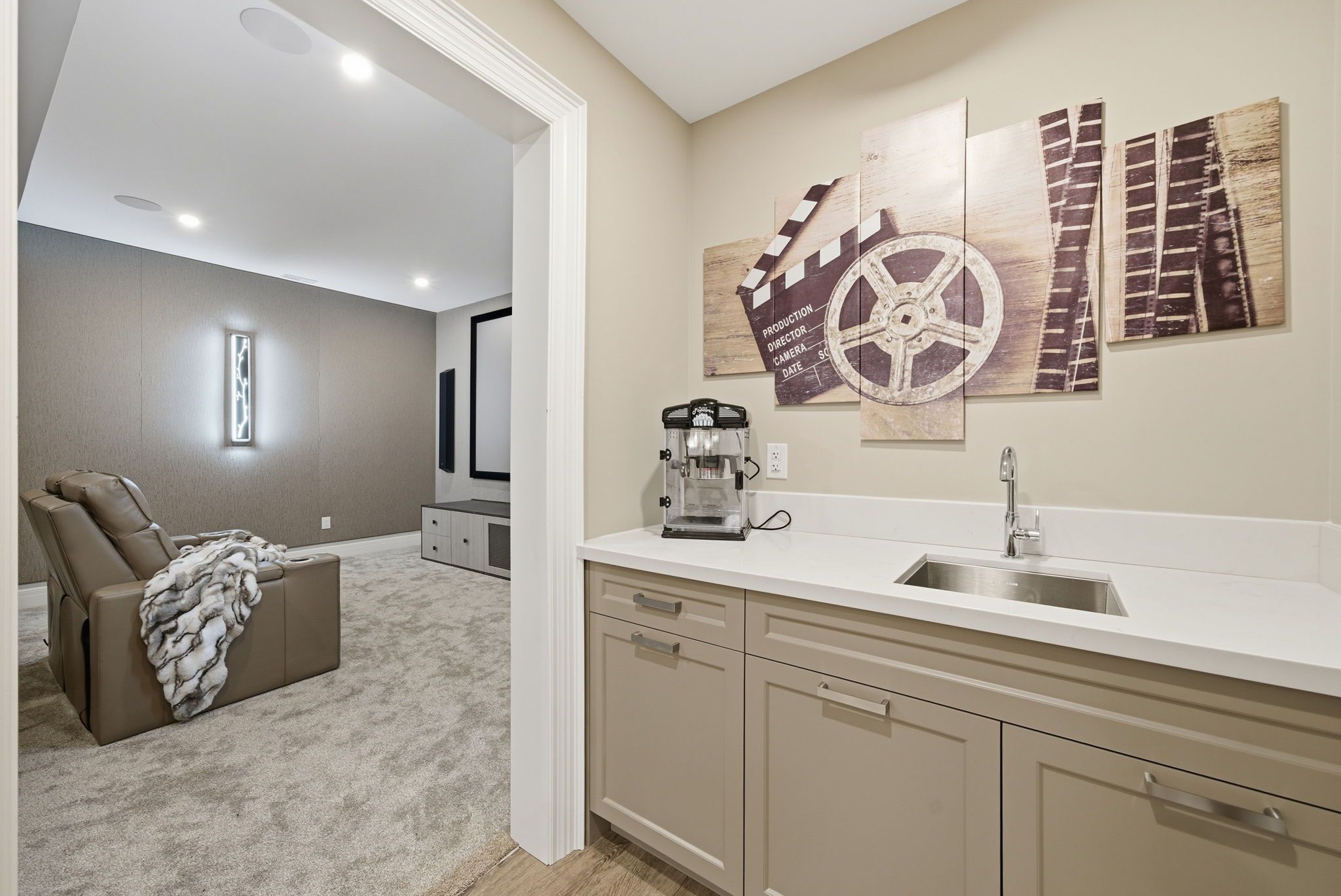 • Entertainment-ready basement includes a theater room, gym, and bar.