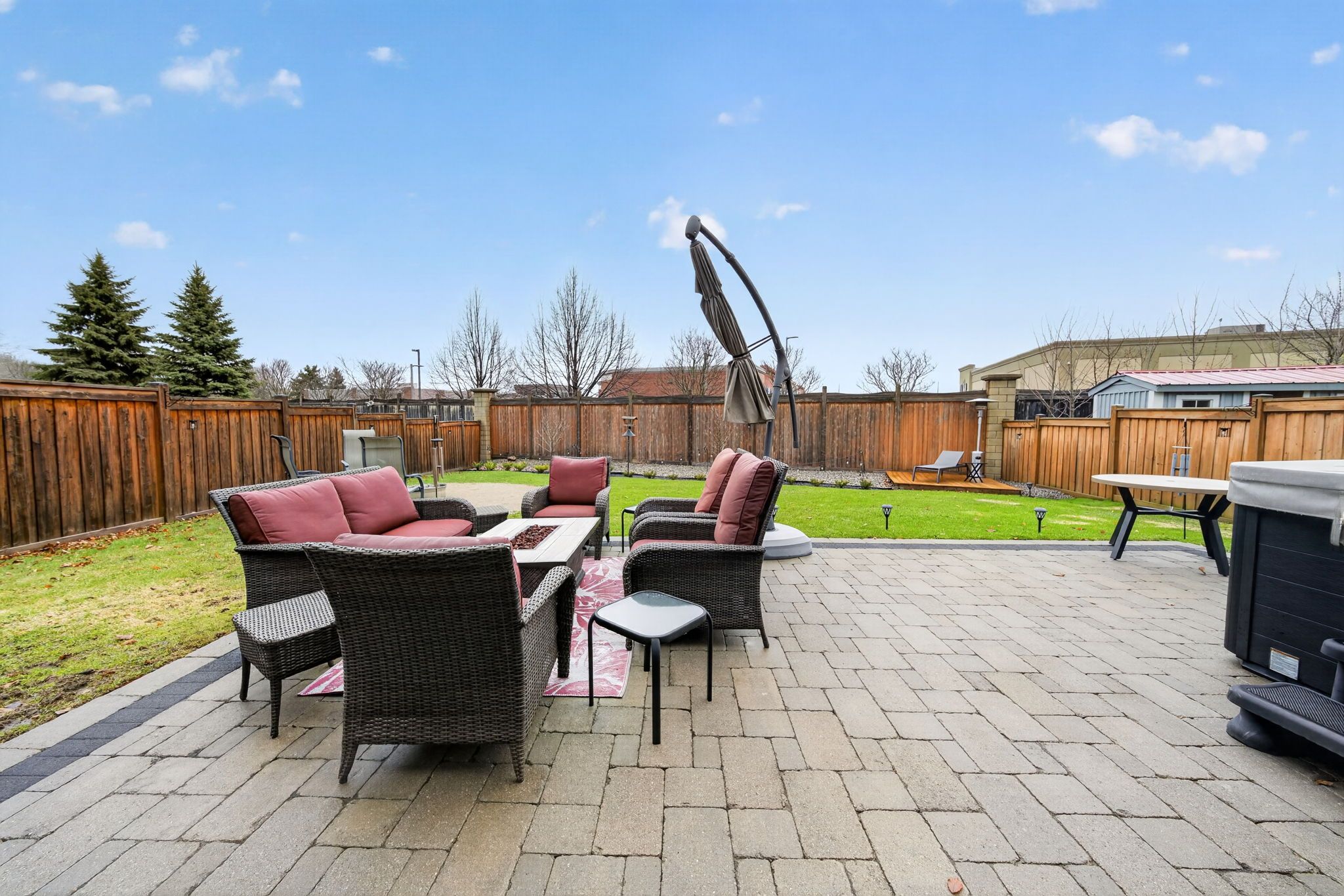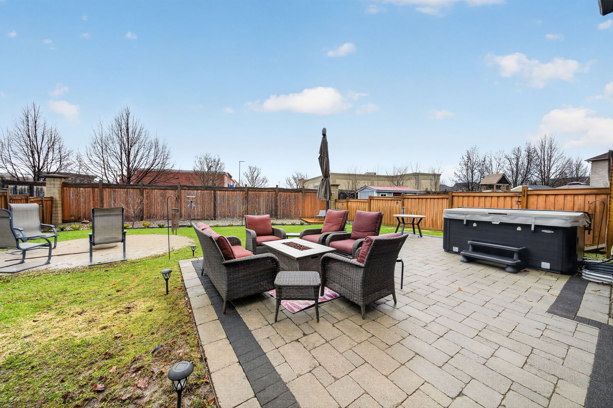 • Private landscaped pie-shaped lot featuring a hot tub and custom fire pit.