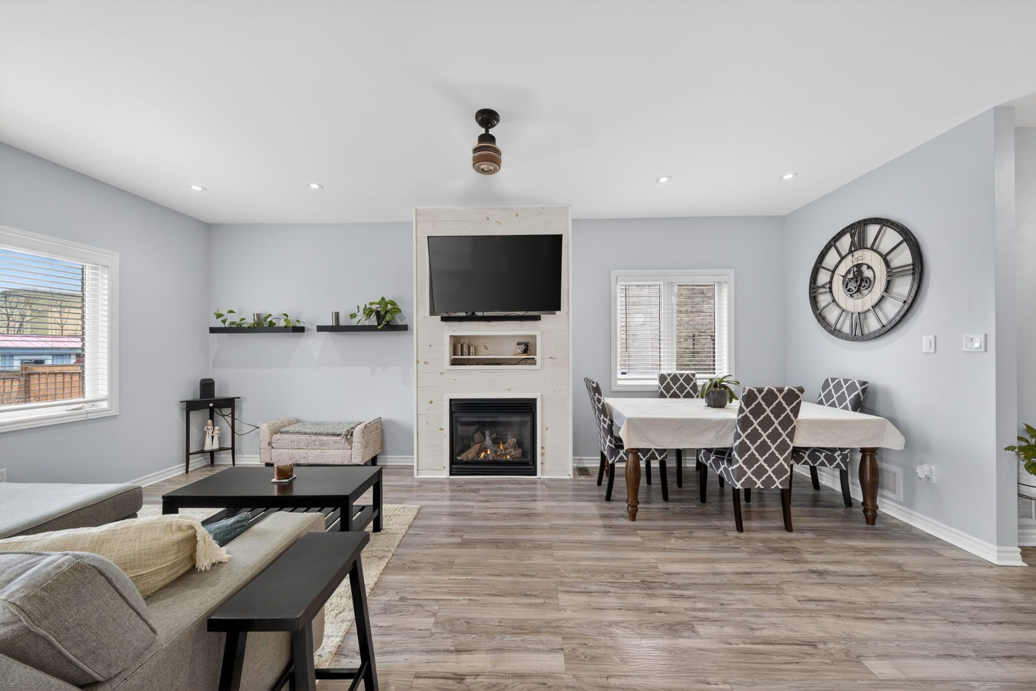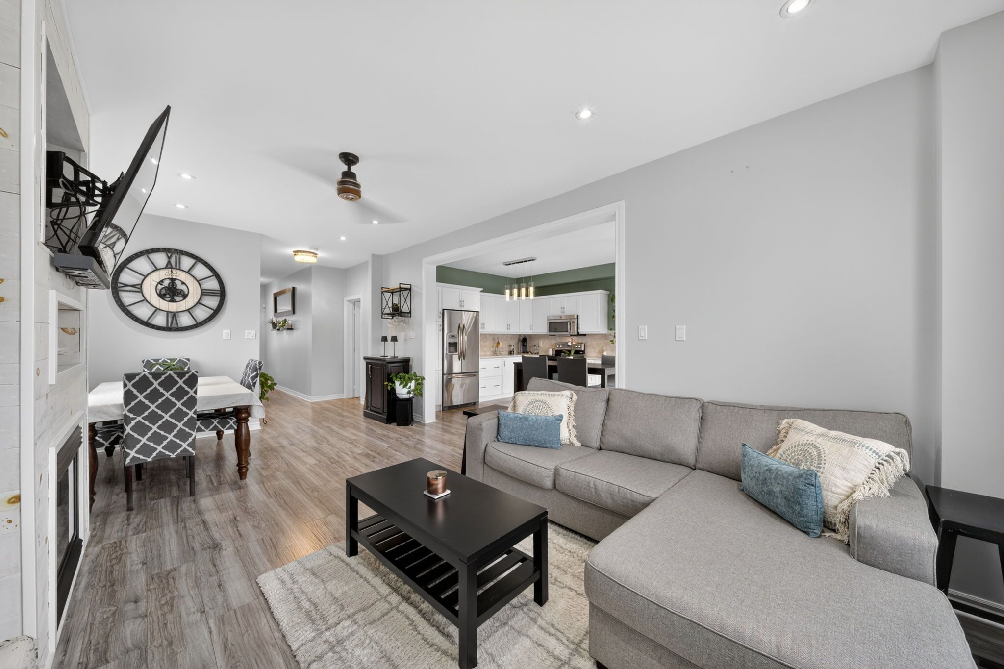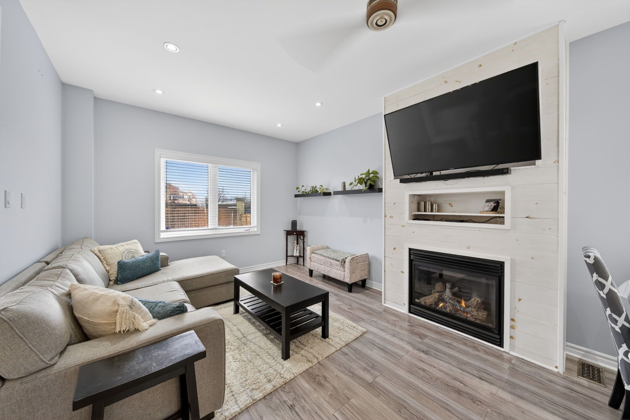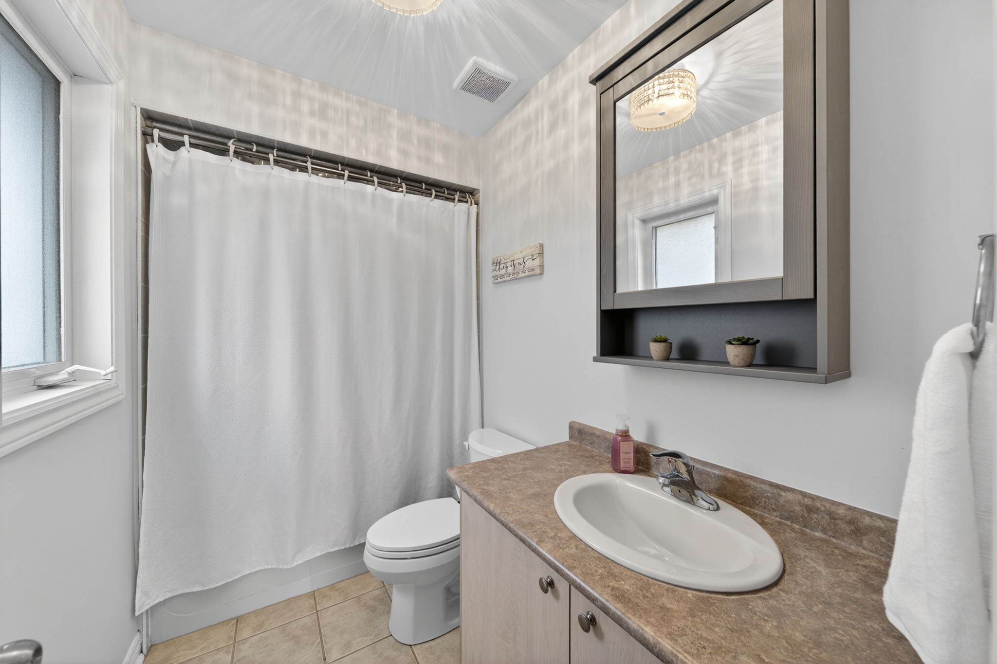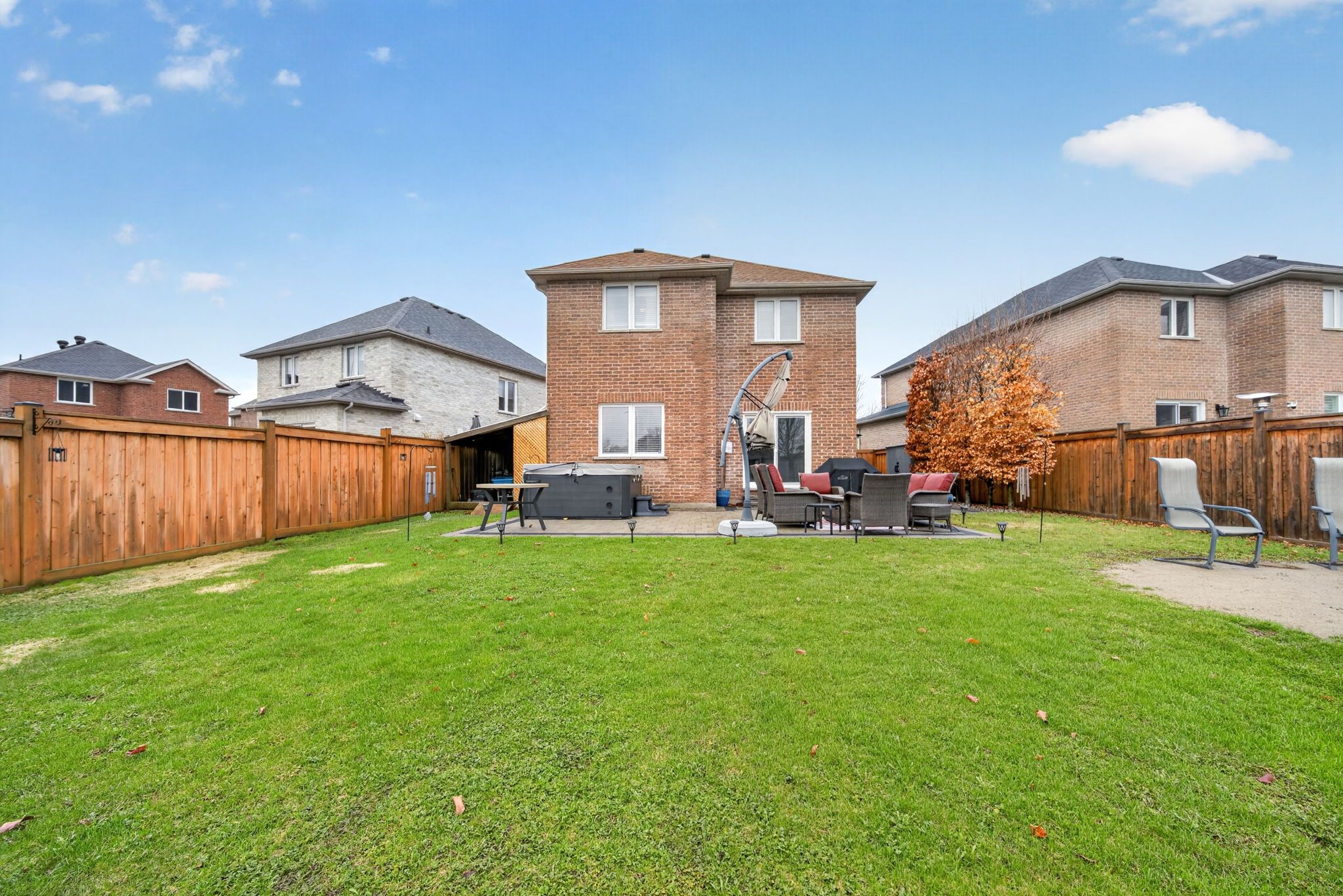 Welcoming front porch invites you to this charming detached home offering 4 bedrooms and 3 bathrooms in a bright, open layout ideal for family living and entertaining. The main floor features an eat-in kitchen that flows seamlessly into a combined living/dining area anchored by a cozy gas fireplace. Convenient main-level garage entry and a dedicated laundry room add everyday practicality. Step through the walk-out to a private, landscaped pie-shaped lot with a hot tub and custom fire pit-perfect for relaxing or hosting friends. Generous bedroom sizes and versatile living spaces provide room for a home office, playroom or guest suite. Large unfinished basement for your added value with 10'x 8'cold storage & rough in for washroom. Enjoy his family-friendly neighbourhood close to schools, parks, community centres and the lake, this home blends comfortable indoor living with outstanding outdoor amenities.