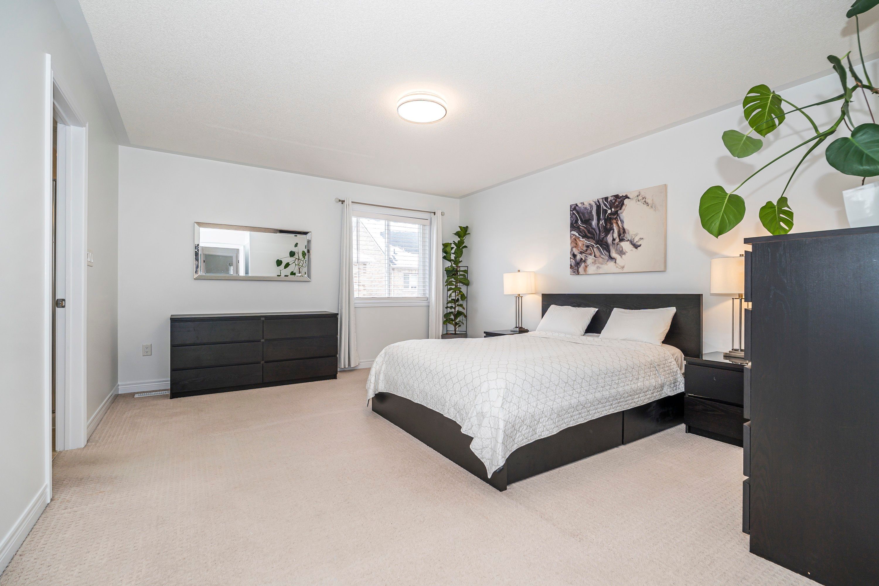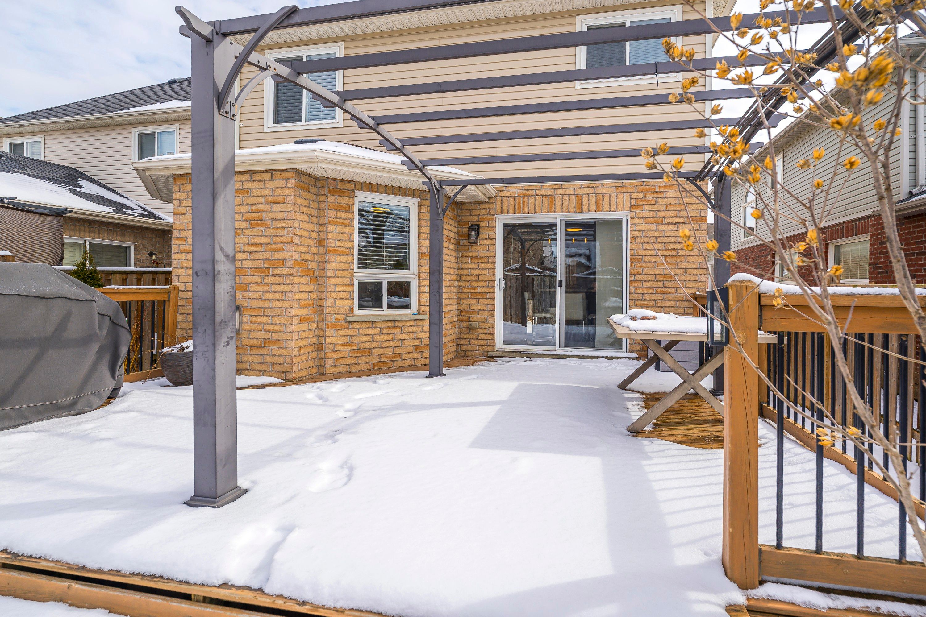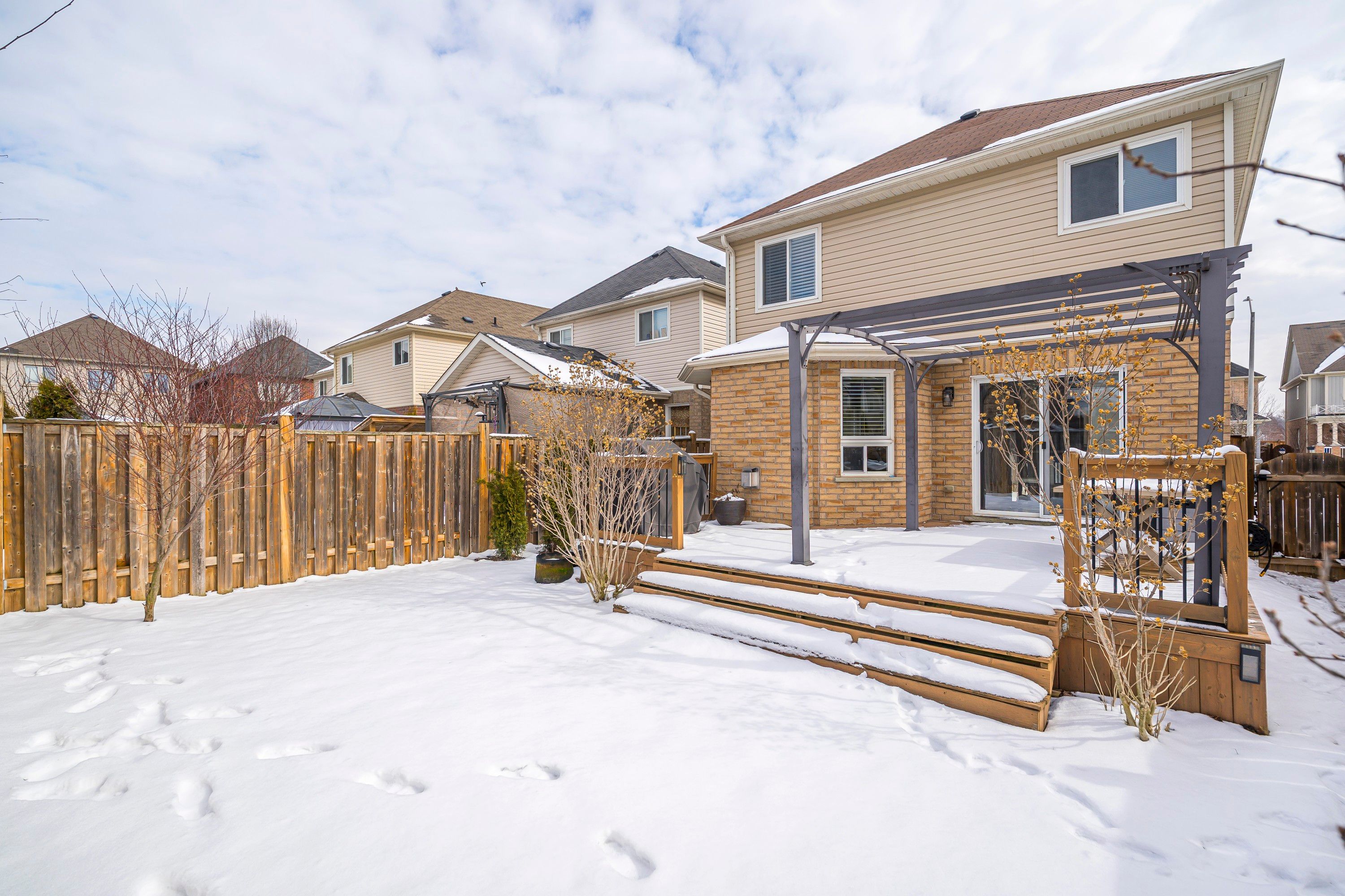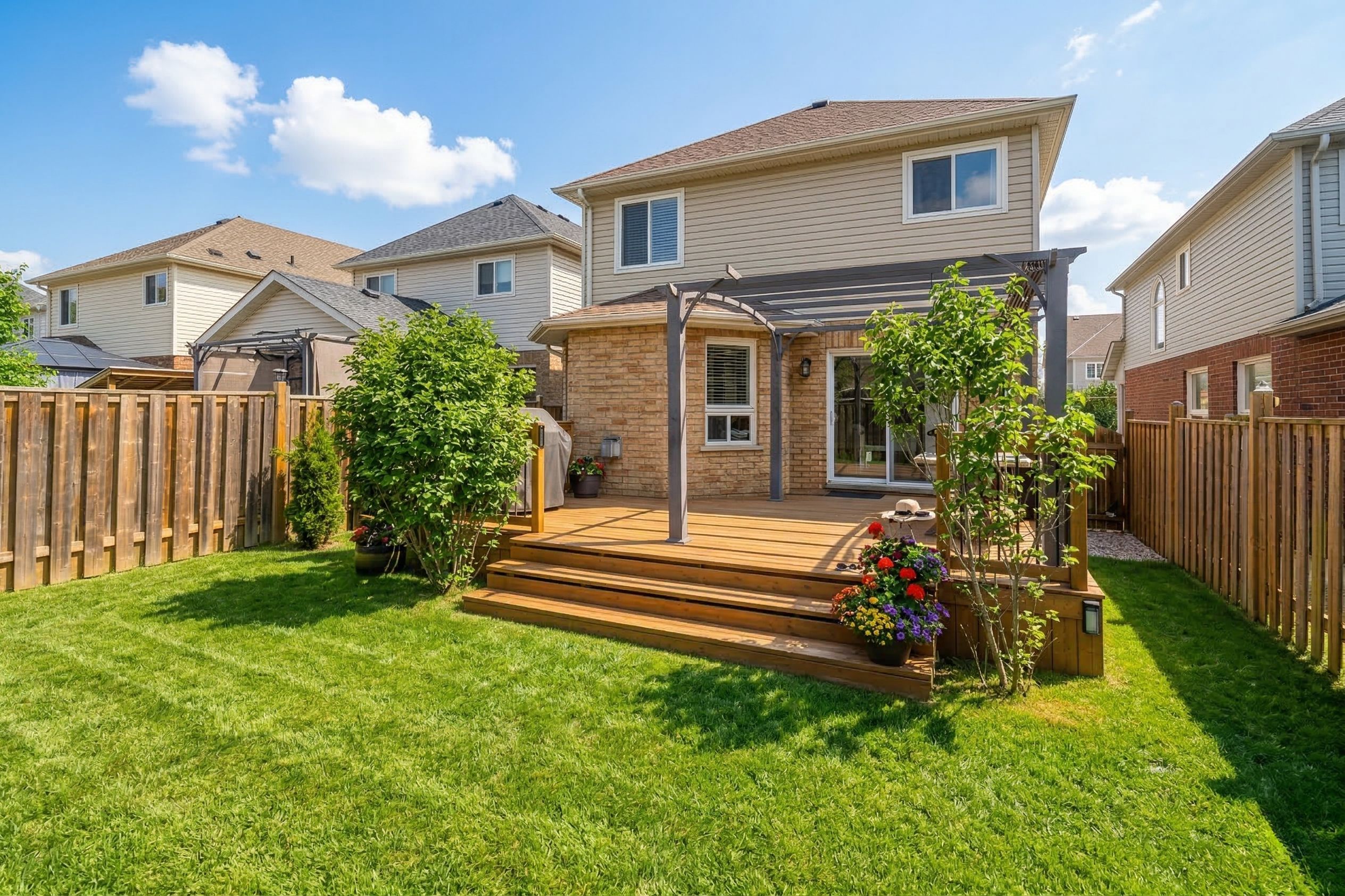Offers welcome anytime! Welcome to your new home, beautifully laid out, newly painted, and truly turn-key. The large foyer with a winding staircase creates an impressive first impression, complemented by an open concept design throughout. Approximately 1,800 sq ft above grade (not including the fully professionally finished basement), offering exceptional living space. The main floor features a spacious great room with a cozy gas fireplace, large bright windows, and modern led lighting. The eat-in kitchen is bright and open, complete with quartz stone countertops and stainless steel appliances, with a walk-out to a large deck with gazebo and a fully fenced backyard, perfect for entertaining. The main floor also includes a 2-piece bath and a convenient laundry area. The second floor offers a generously sized primary bedroom with double door entry, large windows, a walk-in closet, and a full-piece ensuite with separate shower and jet soaker tub. The second bedroom is spacious and currently used with additional office or den space. Tastefully updated throughout. The fully professionally finished basement adds incredible value with an additional bedroom, spacious living and family areas, a modern bathroom with bright windows, and a full cold room for extra storage. Perfectly sized for those looking to upsize or downsize into a comfortable, move-in-ready home, located on a quiet street in a unique neighborhood with minimal through traffic.