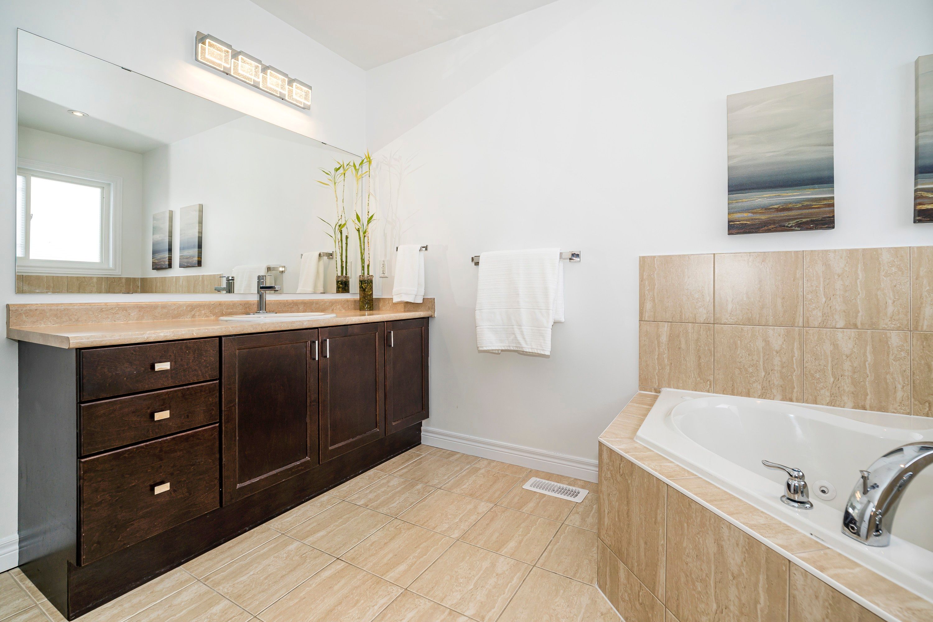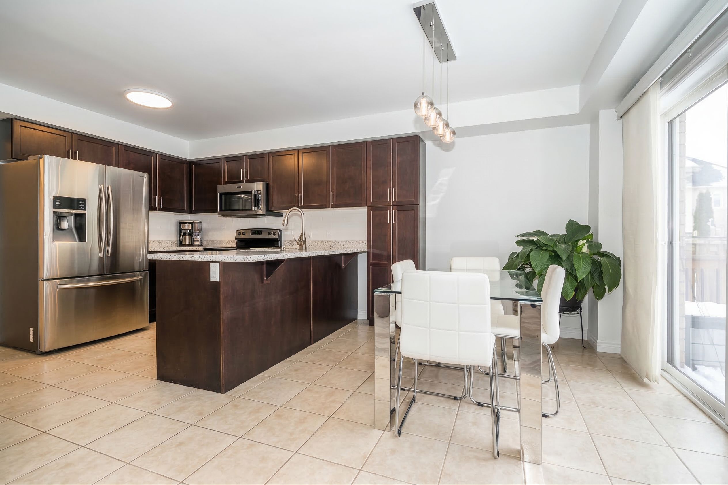 • Open concept design with a bright eat-in kitchen and quartz countertops.
