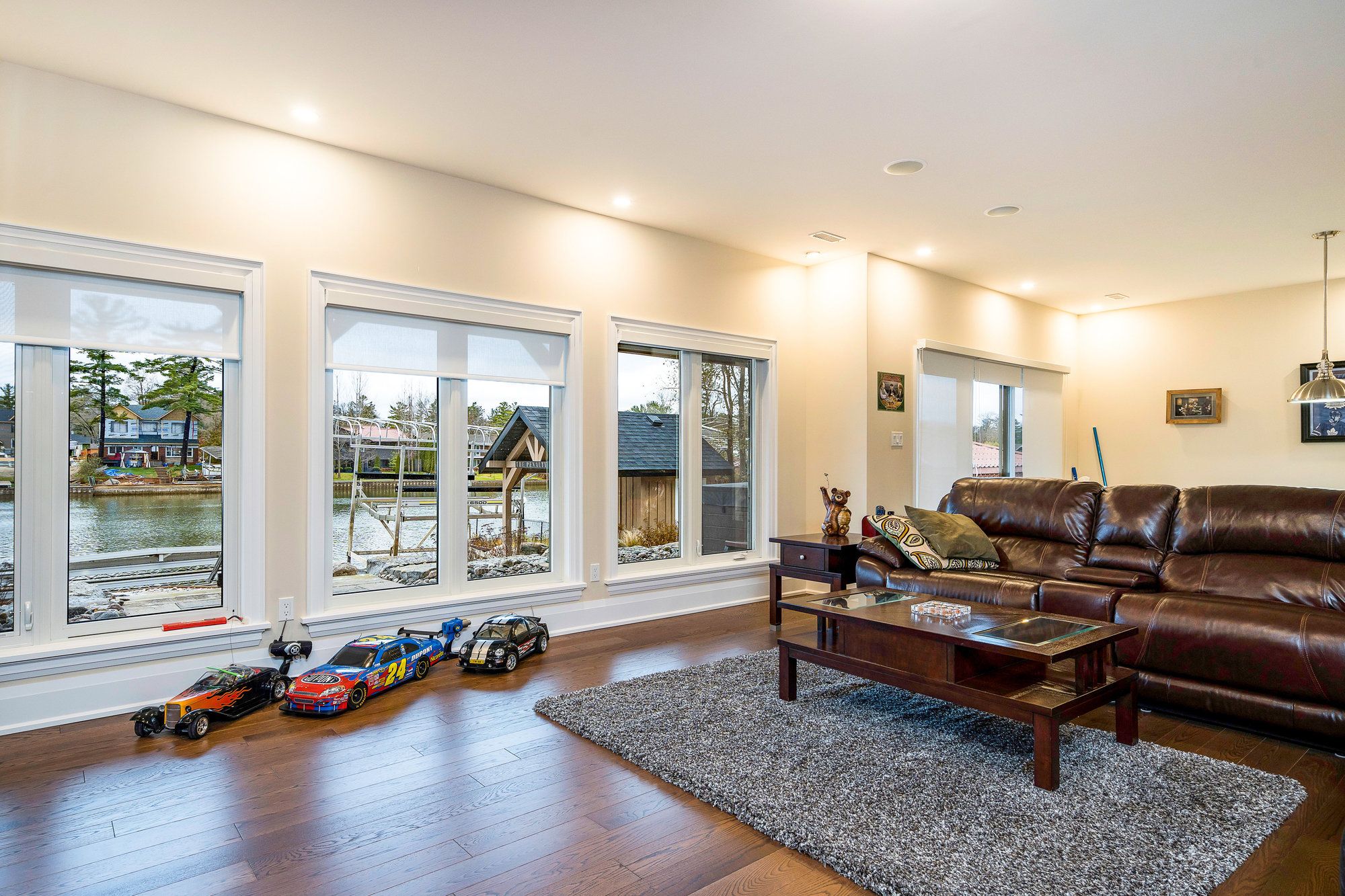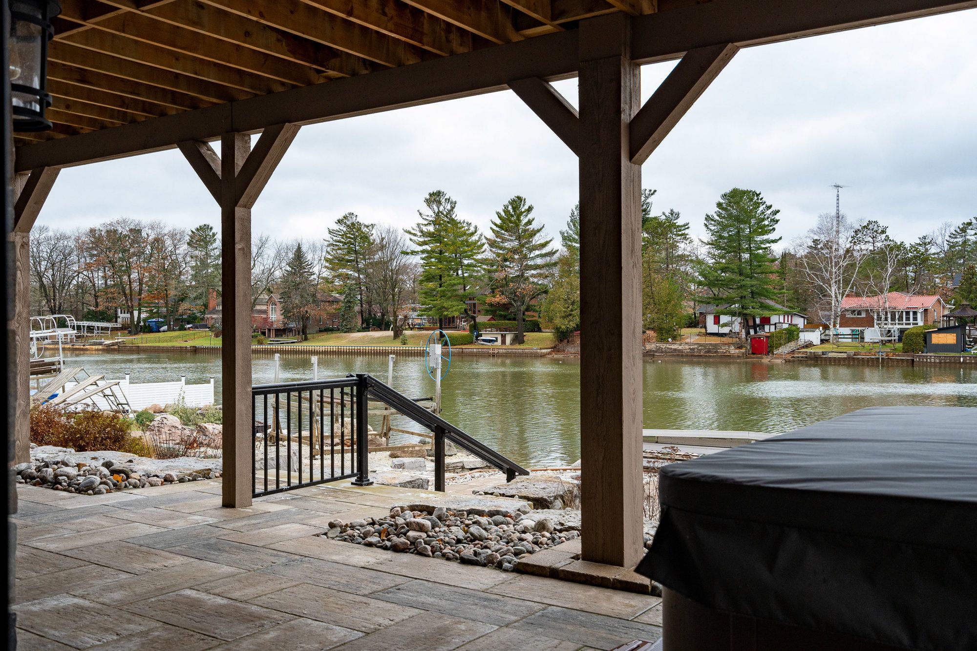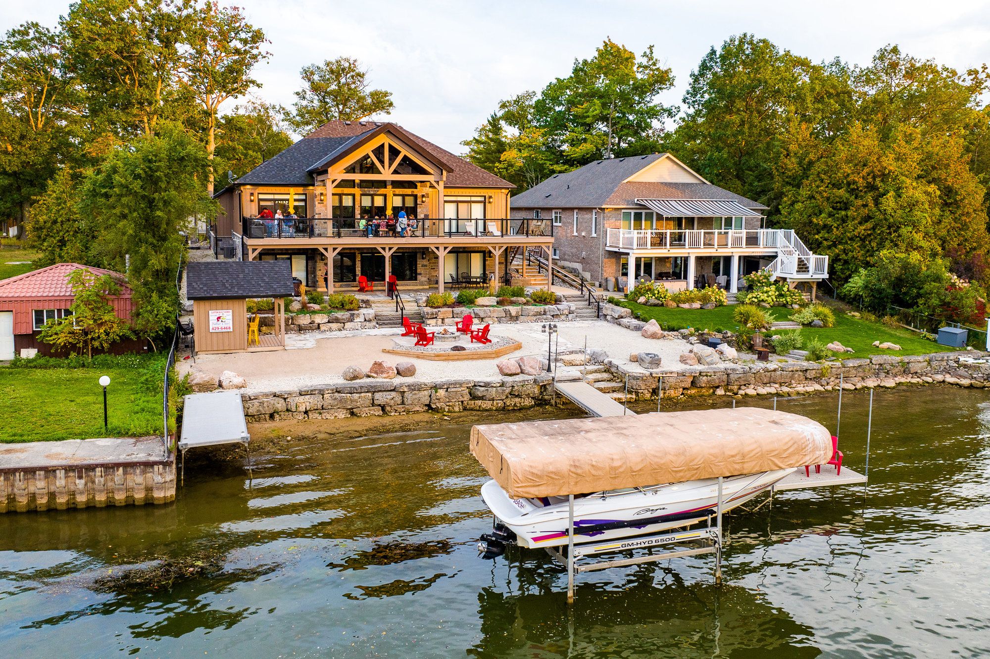 Sitting majestically on one of the most spectacular riverfront lots on the nottawasaga river in beautiful wasaga beach you will find this newly built 4180 sq. Ft. Custom home crafted by professional home builder father and son construction. At every turn of this property exudes quality both inside and out with the exceptional attention to detail and exterior features to make it the ultimate riverfront oasis located on one of the premiere streets lining the prime boating segment of the river and amongst many custom homes. The well thought out main floor design begins with a welcoming entrance with its expansive foyer that takes one to the grand open concept main floor with cathedral ceilings and panoramic windows with stunning views of the river. The gourmet kitchen would delight any chef with its large island with prep area, 6 burner plus grill gas stove and 5 ft fridge and freezer along with custom cabinetry and accent lighting. Adjacent dining area with stunning trey ceilings for all family meals with access to a large covered deck for outdoor entertaining. Grand primary bedroom with spa like ensuite and large walk in closet. Meanwhile additional large 2 guest bedrooms, perfect for guests in the bright fully finished lower level with its 9ft ceilings, in-floor heating and expansive windows offers exceptional river views with a walkout to a backyard entertaining paradise with all custom stone walkways and landscaping. Experience sunset cocktails at the custom built outdoor bar and fire pit area before experiencing all your favourite riverfront activities or a dip in the hot tub. Other features include radiant in floor heating in your triple car garage, security system and so much more. This exceptional one of a kind property sits on a rare 75 ft riverfront lot that provides privacy and a haven for the ultimate riverfront lifestyle.