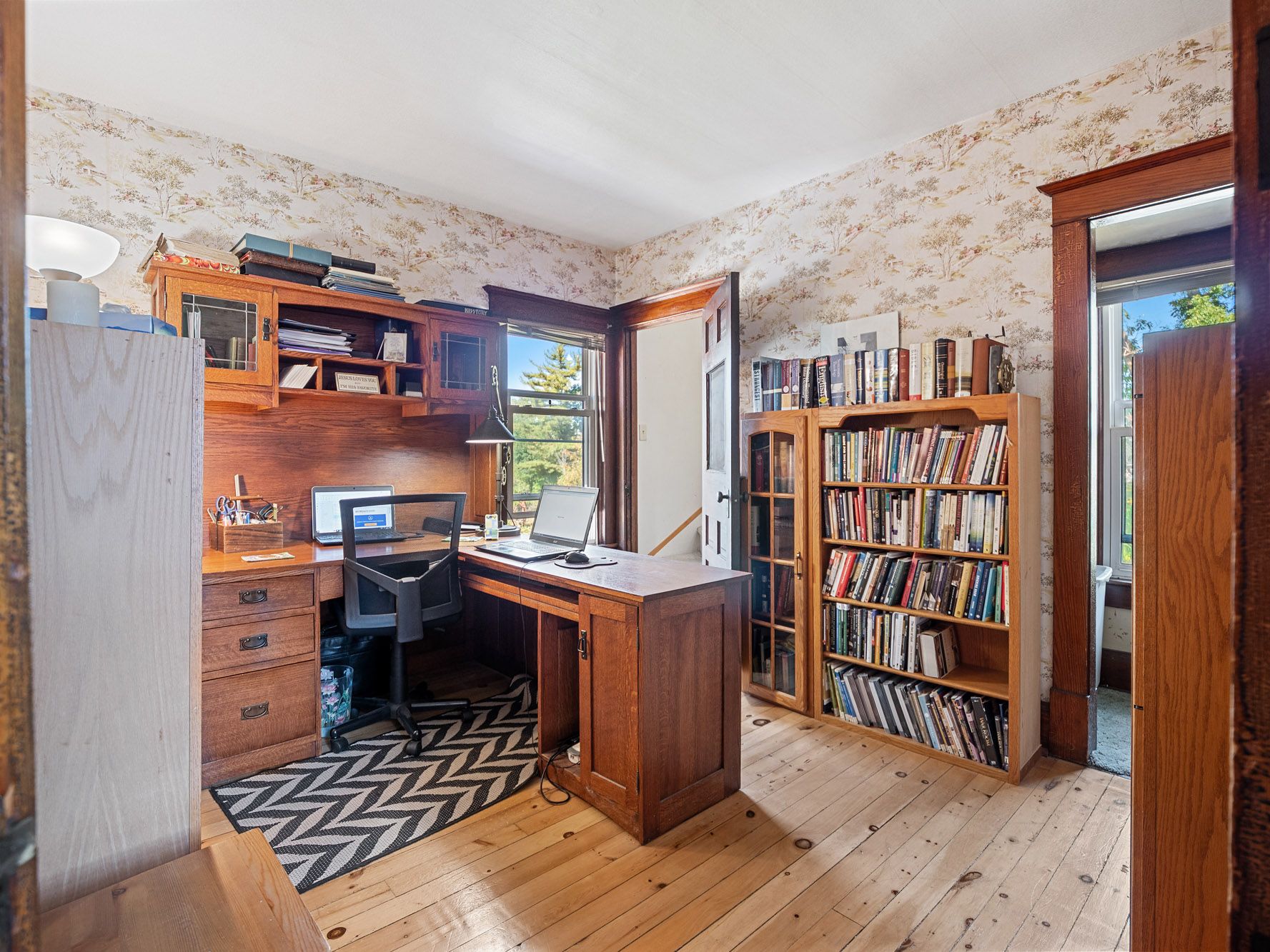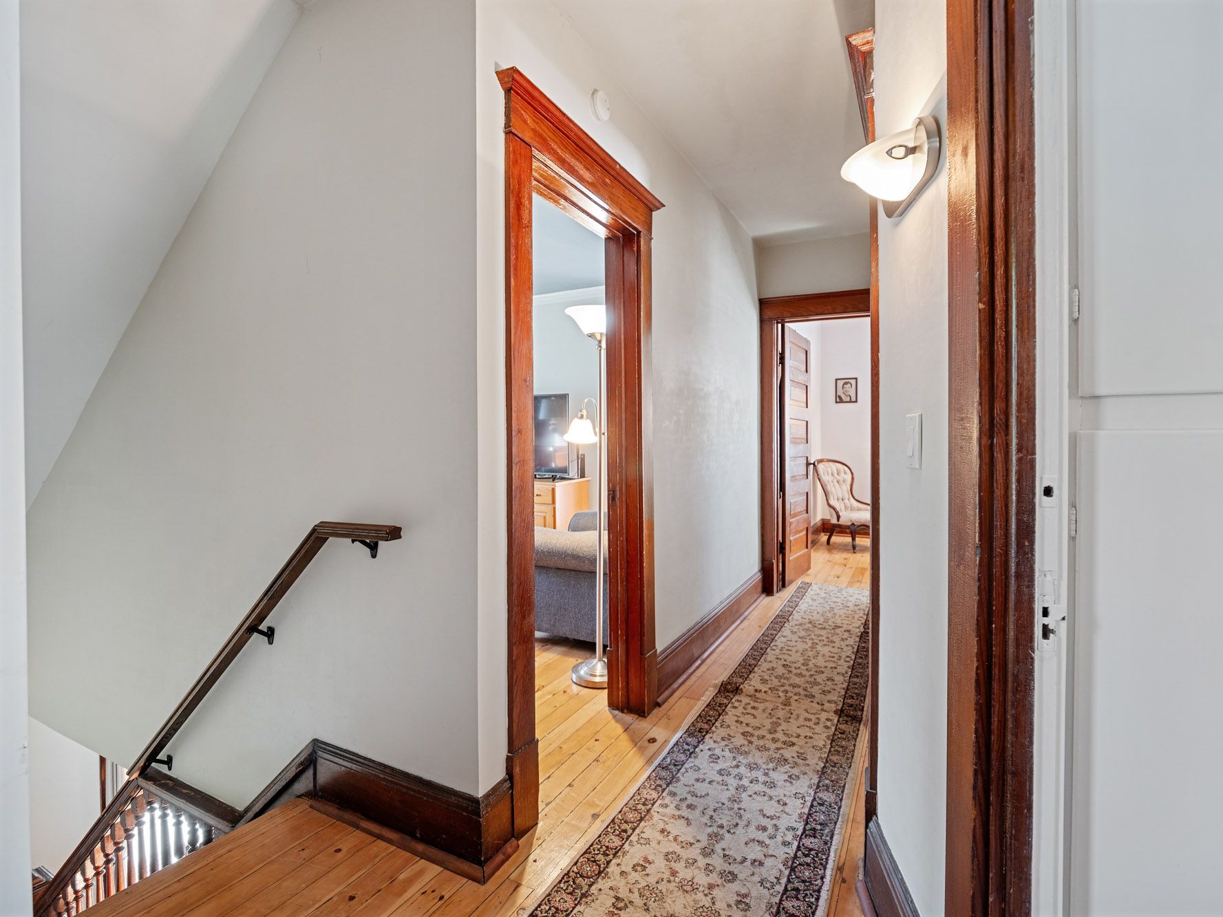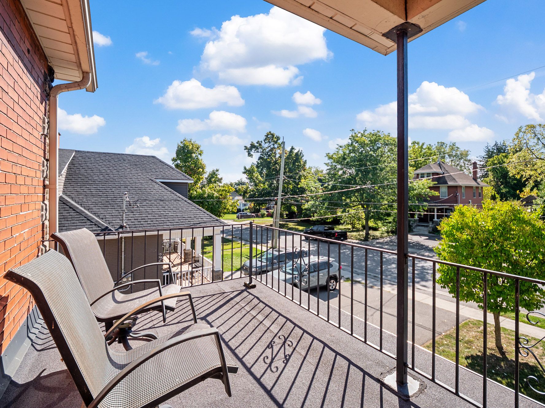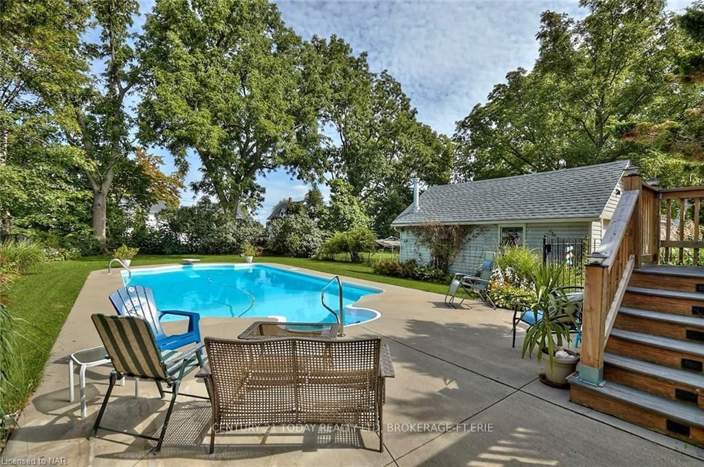Welcome to a timeless residence rich in tradition and character. This beautifully crafted 2. 5-storey stone and brick home sits on a generous lot just steps from the niagara river, offering a rare blend of elegance, history, and modern comfort. Step inside to discover soaring 9-foot ceilings, gleaming wood floors, and exquisite original wood trim and doors. The inviting living room features a corner gas fireplace with oak surround, while the formal dining room seamlessly connects to both the kitchen and living area. The thoughtfully updated kitchen (2012) boasts granite countertops, crisp white cabinetry, a centre breakfast island, and tiled flooring perfect for everyday living and entertaining. A unique secondary staircase leads to the upper level, where the primary bedroom offers its own private balcony (redone in 2016). The second-floor bathroom was fully remodeled in 2018, complementing three additional spacious bedrooms. The finished third level provides a versatile retreat with skylights, a carpeted recreation room, office area, and ample storage. Outdoors, beautifully landscaped grounds frame a stunning in-ground pool (18' x 38', up to 9. 5 ft deep) with a brand-new liner installed in 2023 along with a new heater (2023), creating a private oasis for relaxation and gatherings. A fenced backyard and single detached garage complete the exterior. This meticulously maintained home has seen numerous updates, including a new roof (2016), furnace (2018), re-done driveway (2016), flooring (2014), balcony, windows, and more ensuring peace of mind for years to come. Blending timeless craftsmanship with modern updates, this captivating home is the perfect opportunity to own a piece of fort eries charm.