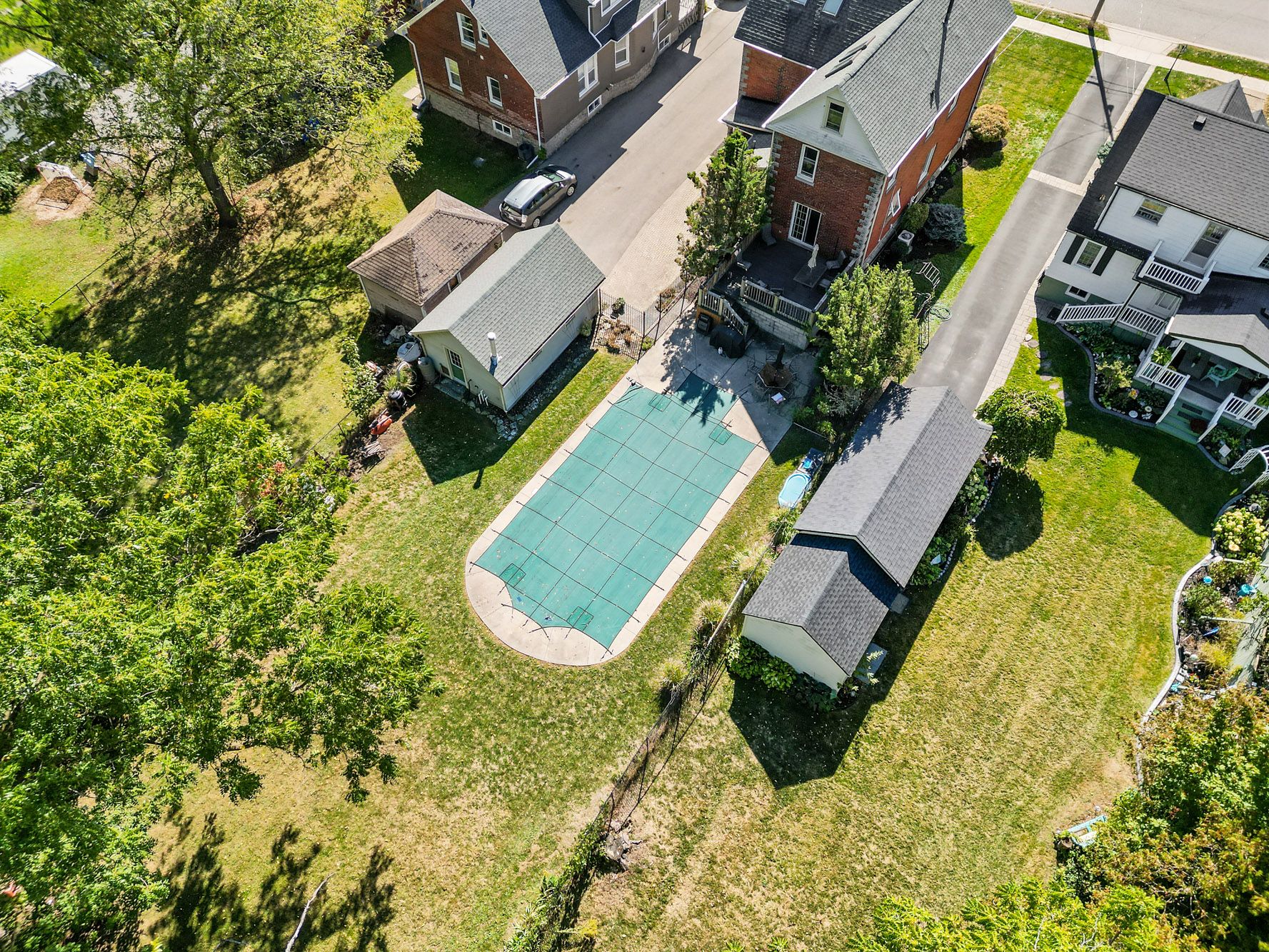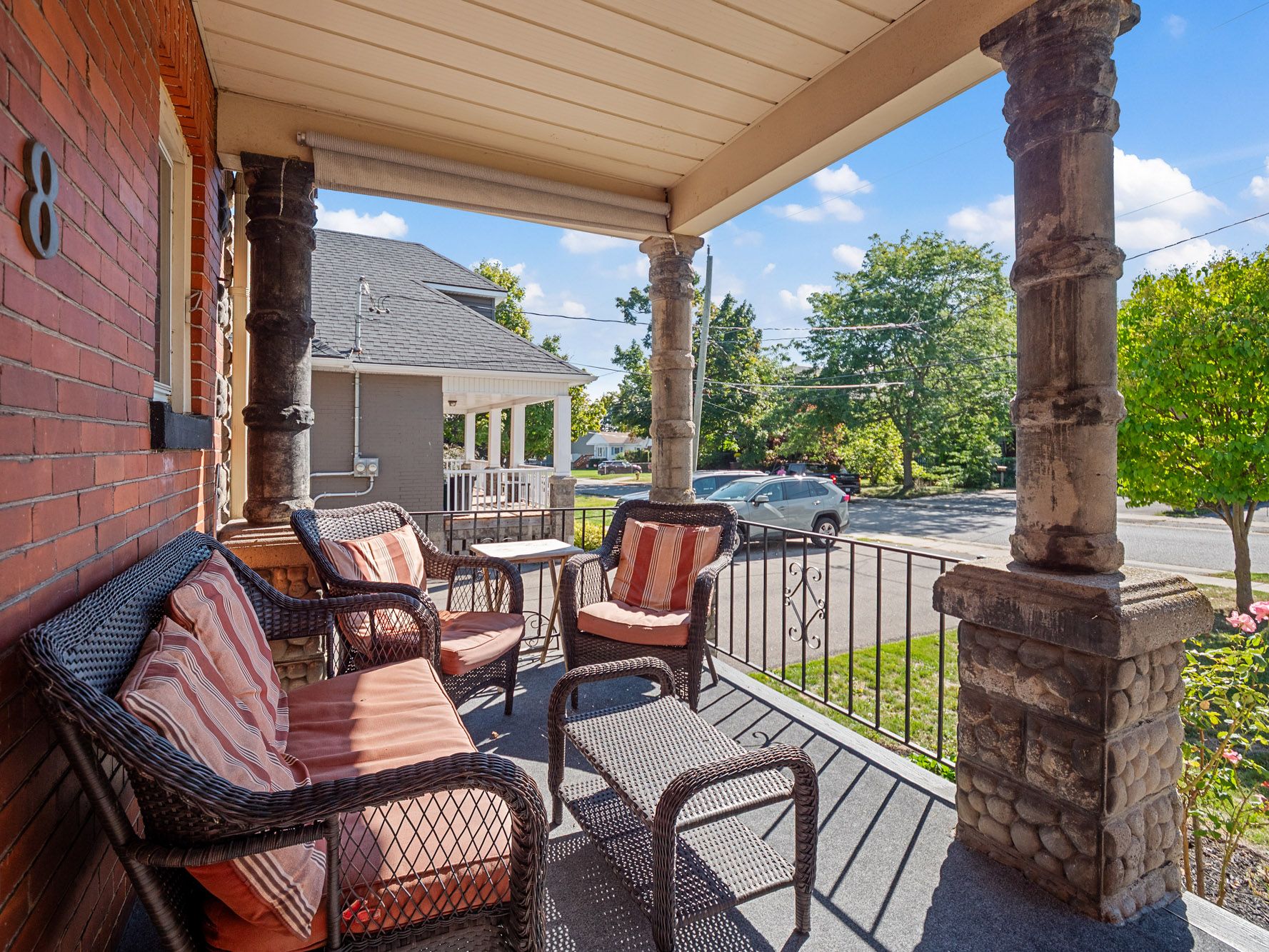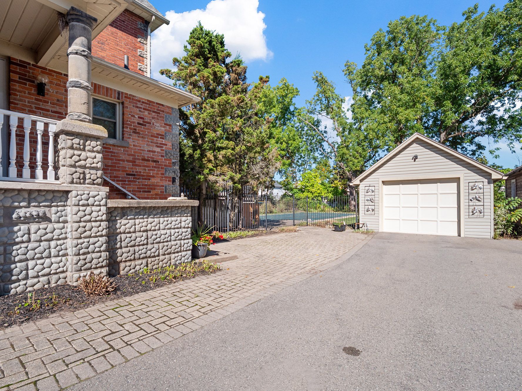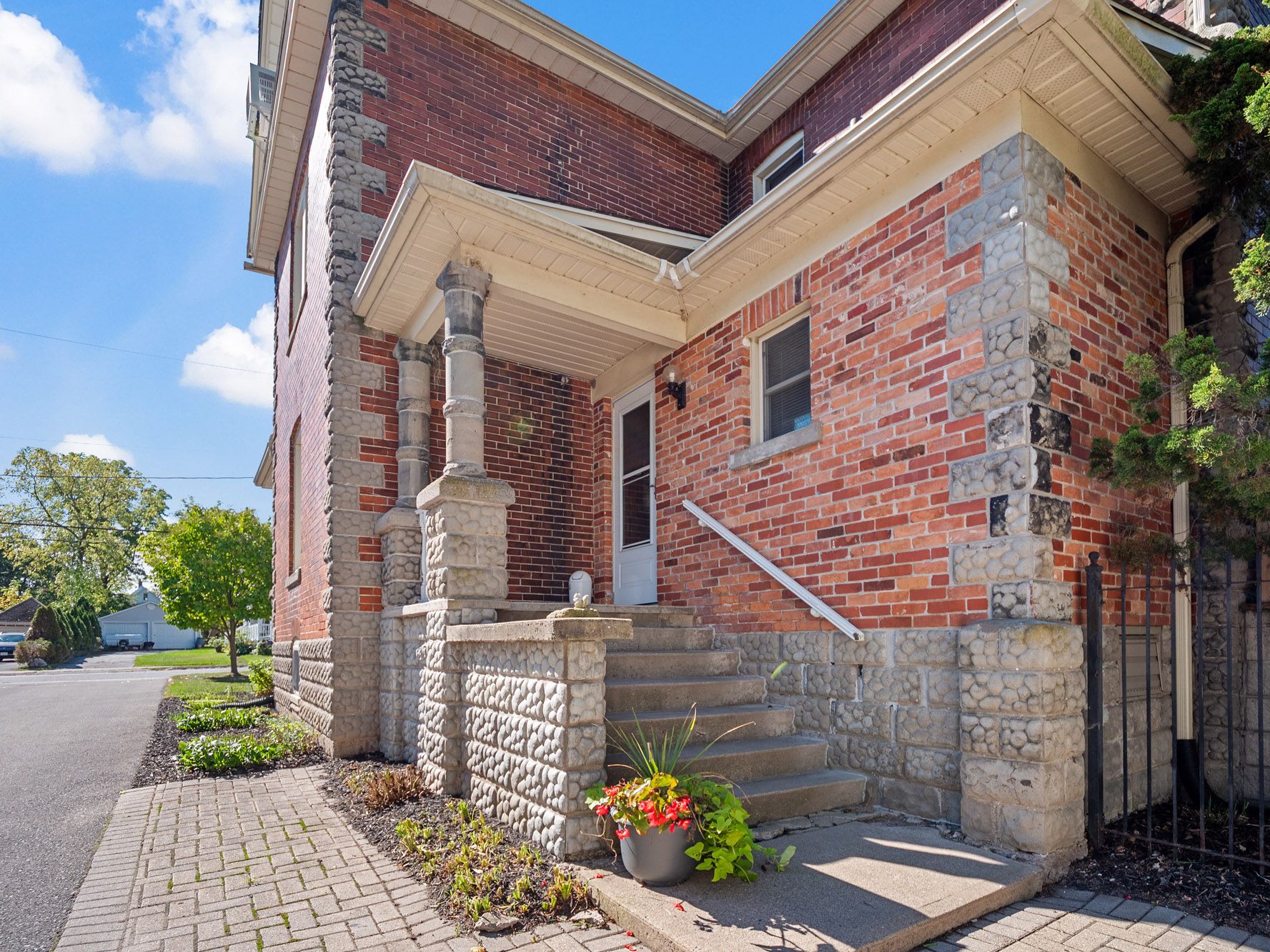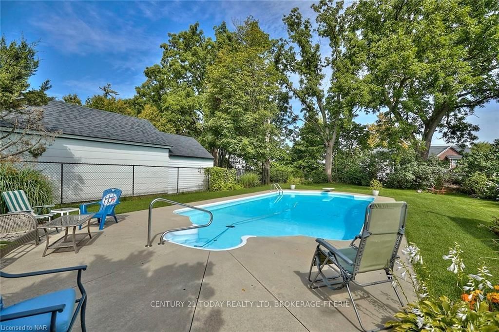 This beautifully crafted 2. 5-storey stone and brick home sits on a generous lot just steps from the niagara river, offering a rare blend of elegance, history, and modern comfort. Step inside to discover soaring 9-foot ceilings, gleaming wood floors, and exquisite original wood trim and doors. The inviting living room features a corner gas fireplace with oak surround, while the formal dining room seamlessly connects to both the kitchen and living area. The thoughtfully updated kitchen (2012) boasts granite countertops, crisp white cabinetry, a centre breakfast island, and tiled flooring perfect for everyday living and entertaining. A unique secondary staircase leads to the upper level, where the primary bedroom offers its own private balcony (redone in 2016). The second-floor bathroom was fully remodeled in 2018, complementing three additional spacious bedrooms. The finished third level provides a versatile retreat with skylights, a carpeted recreation room, office area, and ample storage. Outdoors, beautifully landscaped grounds frame a stunning in-ground pool (18' x 38', up to 9. 5 ft deep) with a brand-new liner installed in 2023 along with a new heater (2023), creating a private oasis for relaxation and gatherings. A fenced backyard and single detached garage complete the exterior. This meticulously maintained home has seen numerous updates, including a new roof (2016), furnace (2018), re-done driveway (2016), flooring (2014), balcony, windows, and more ensuring peace of mind for years to come.
