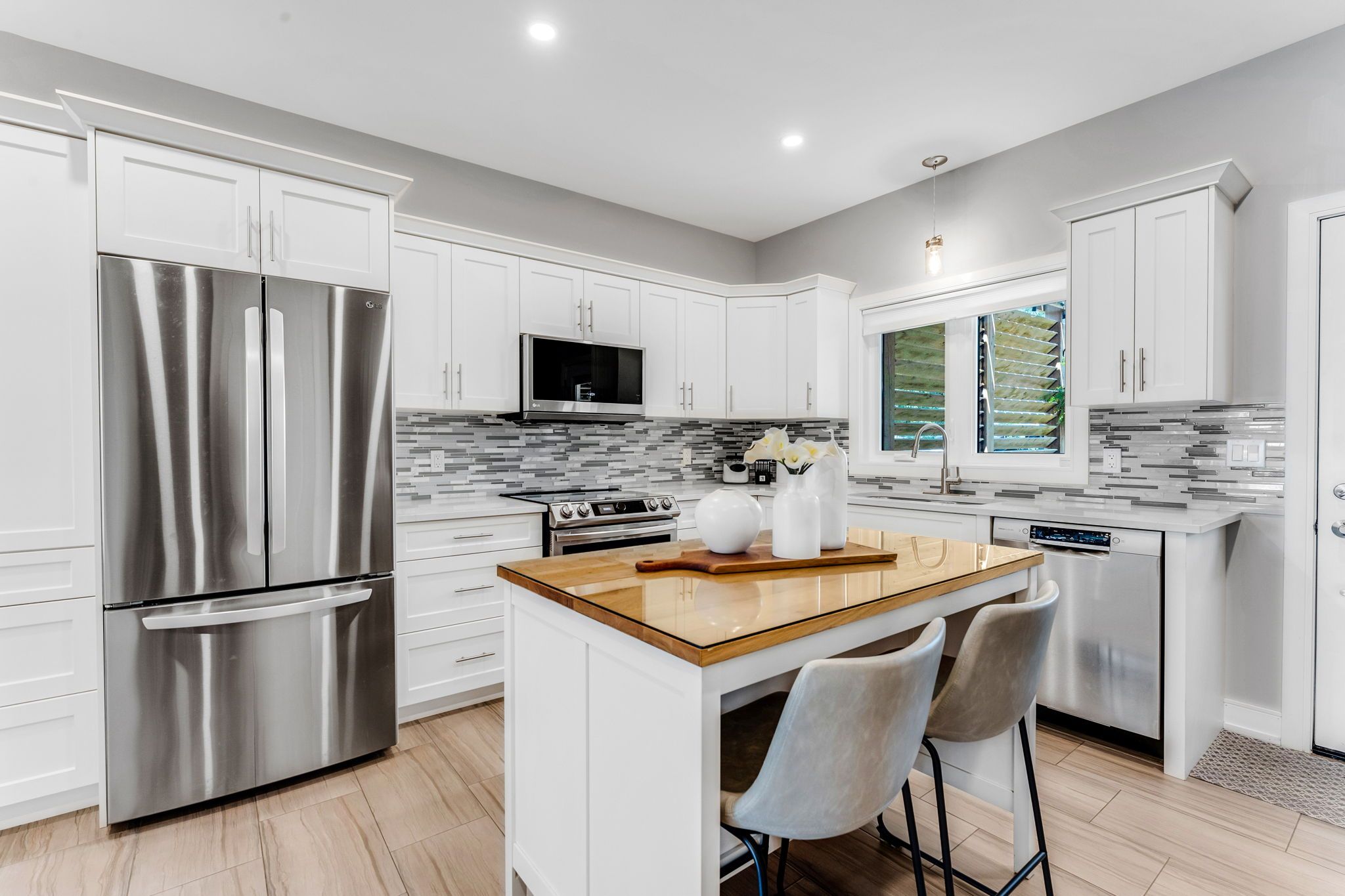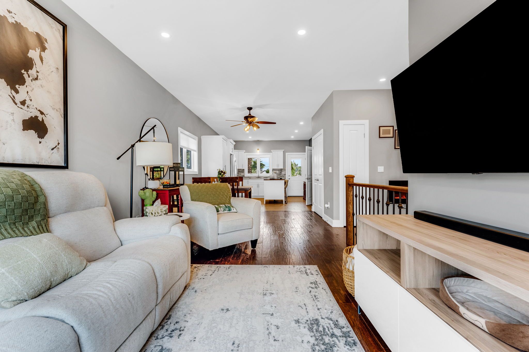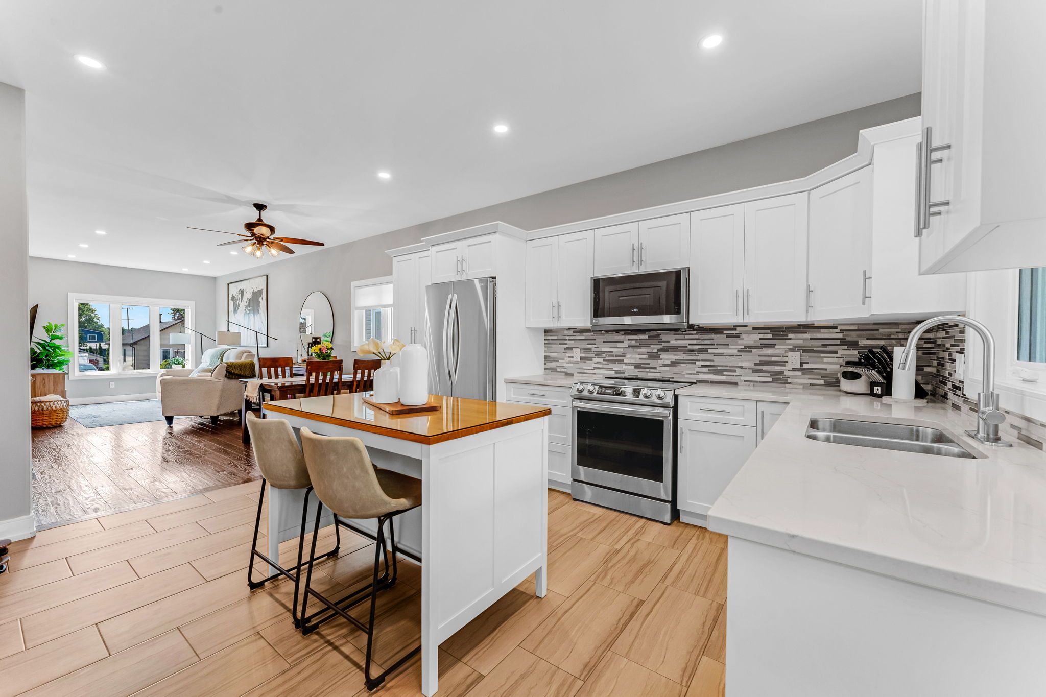• Bright open-concept main floor with quartz countertops and large pantry.