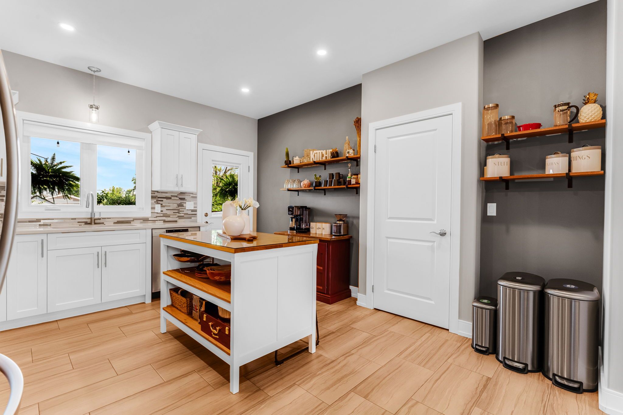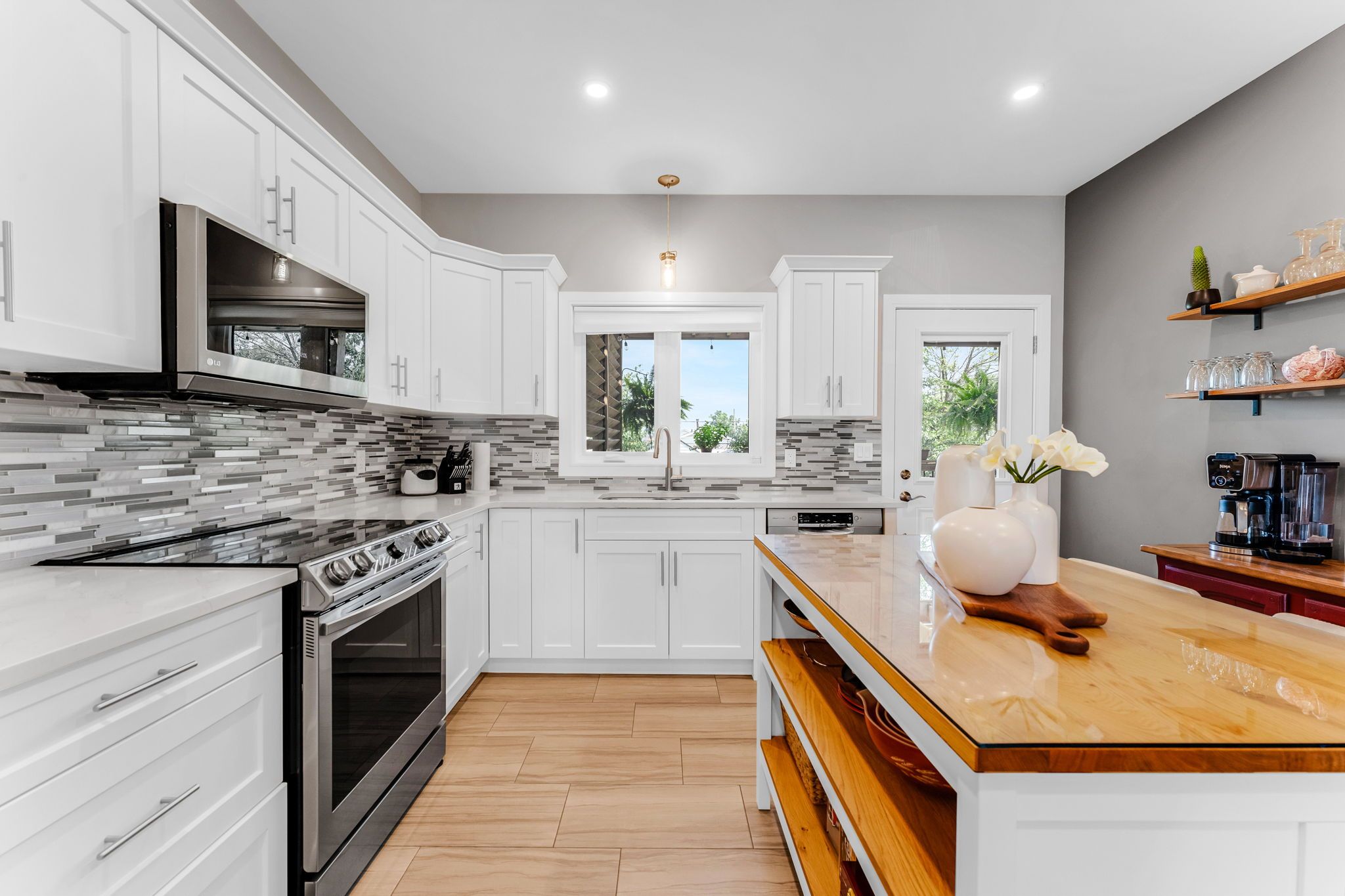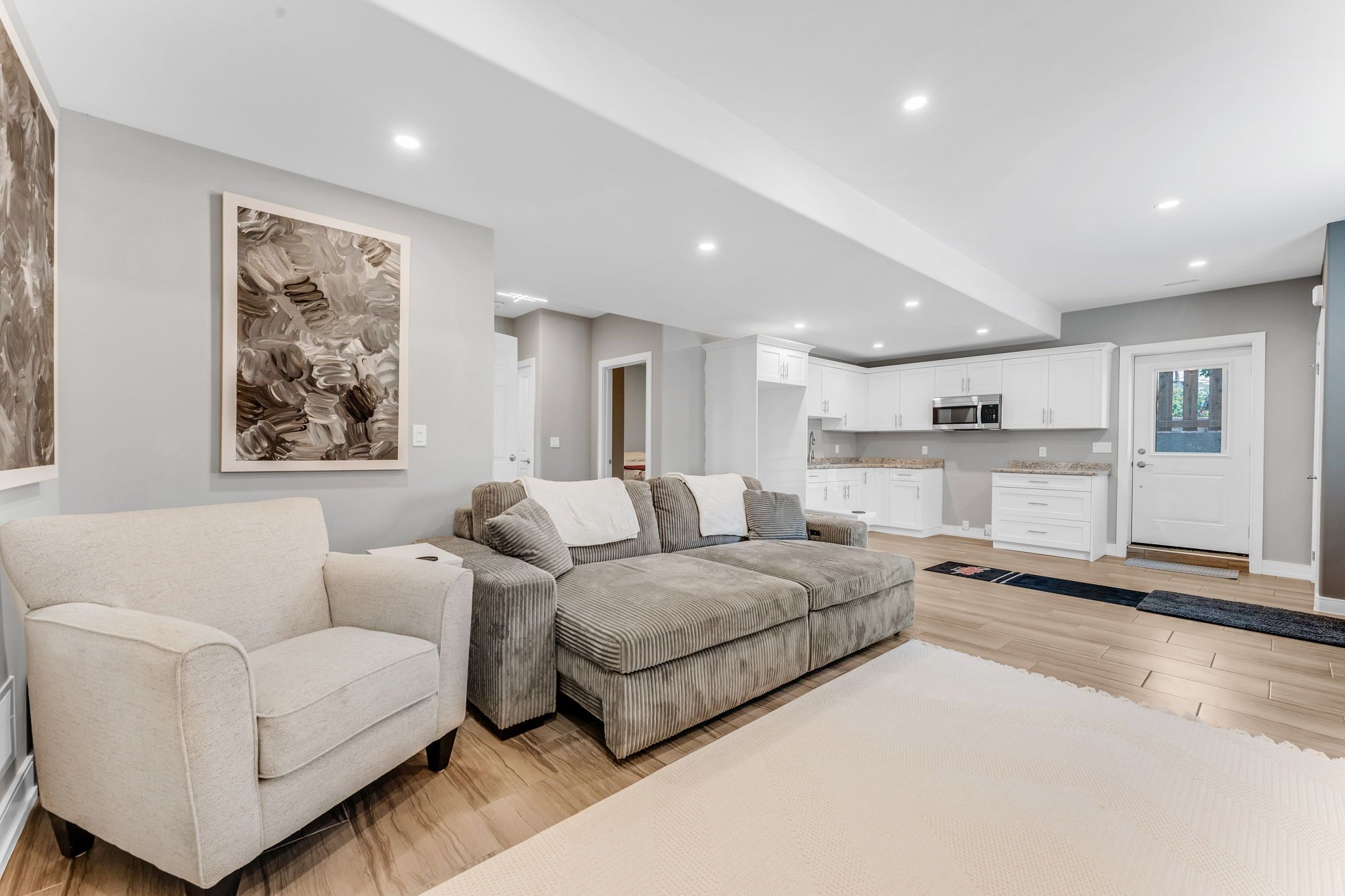 • Bright open-concept main floor with quartz countertops and large pantry.