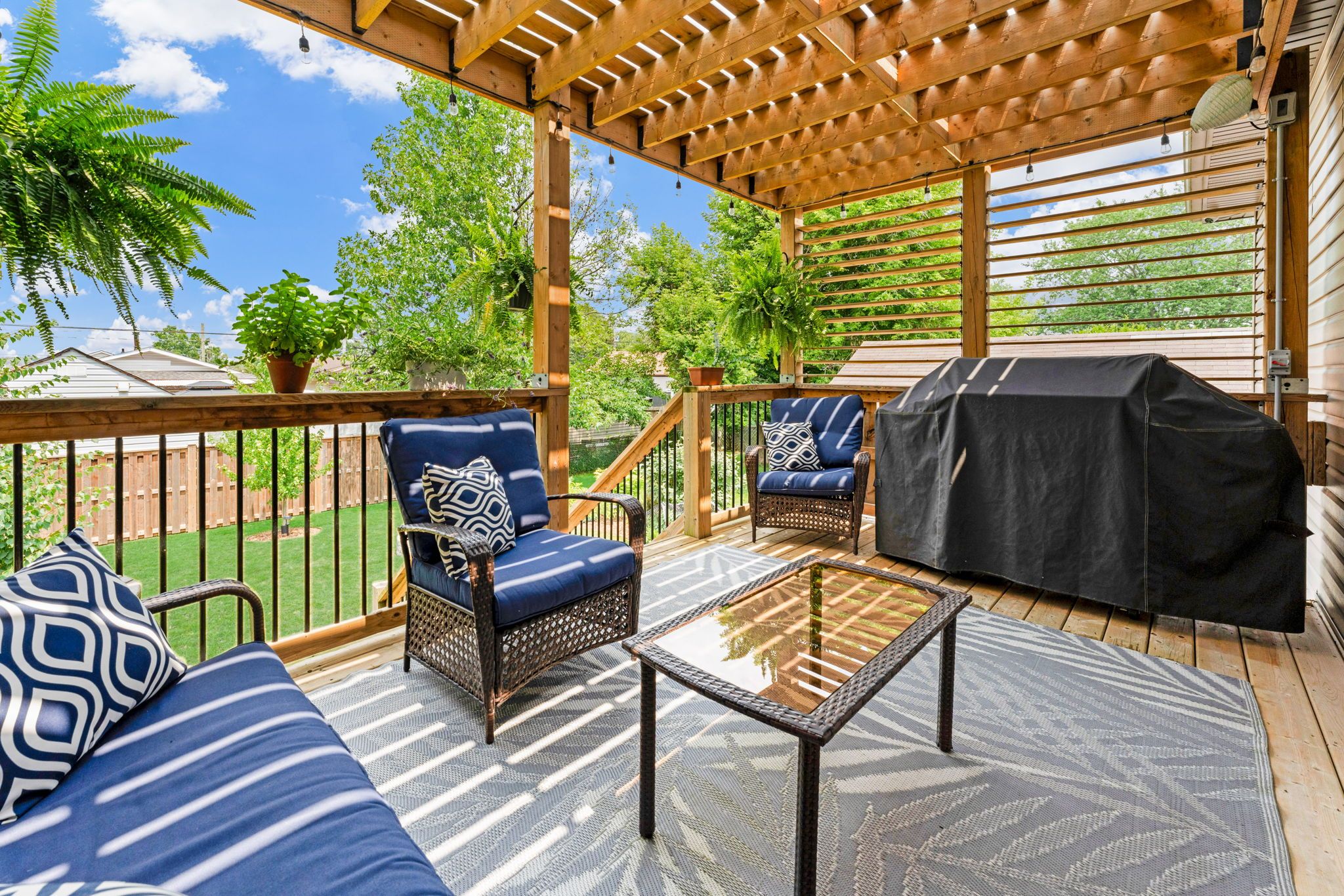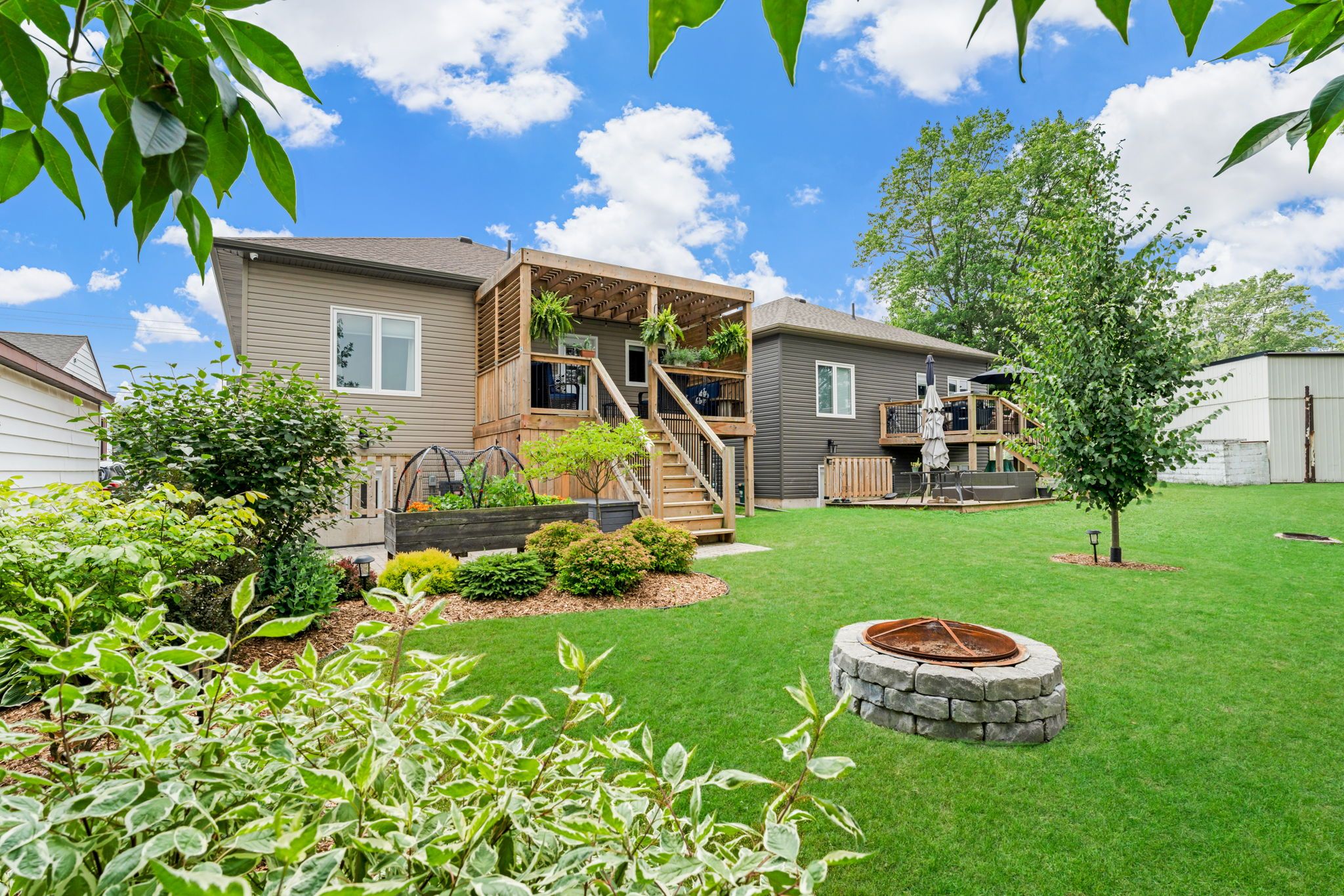 • Well-landscaped backyard with a fire pit and covered gazebo for relaxing.