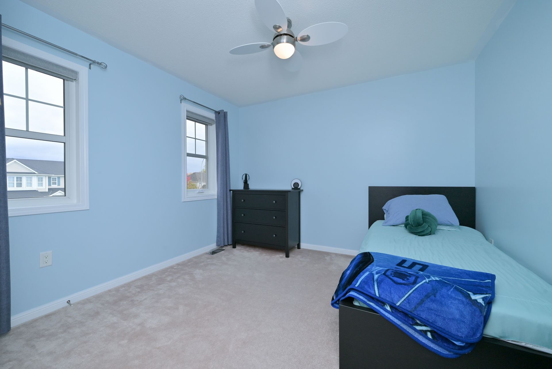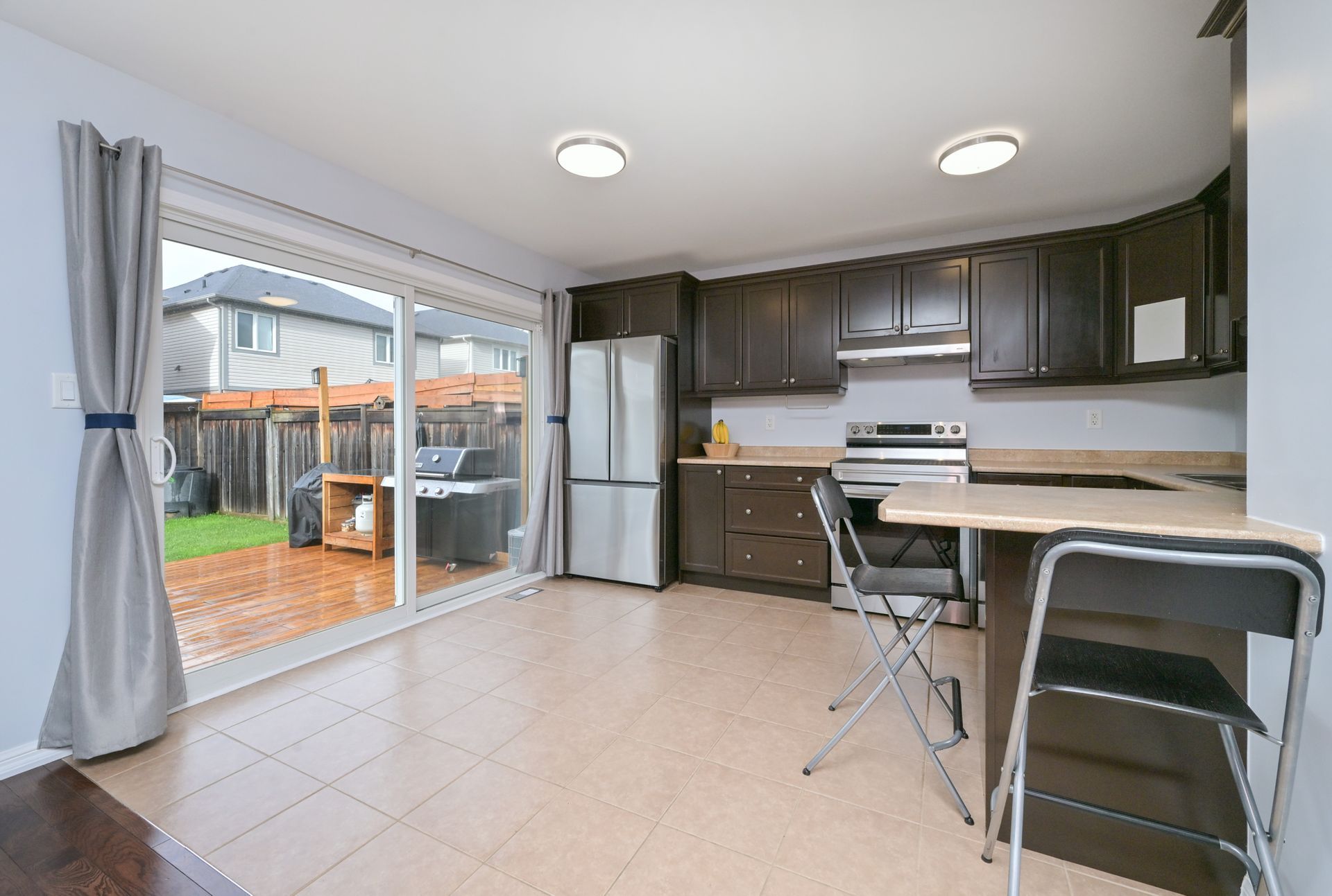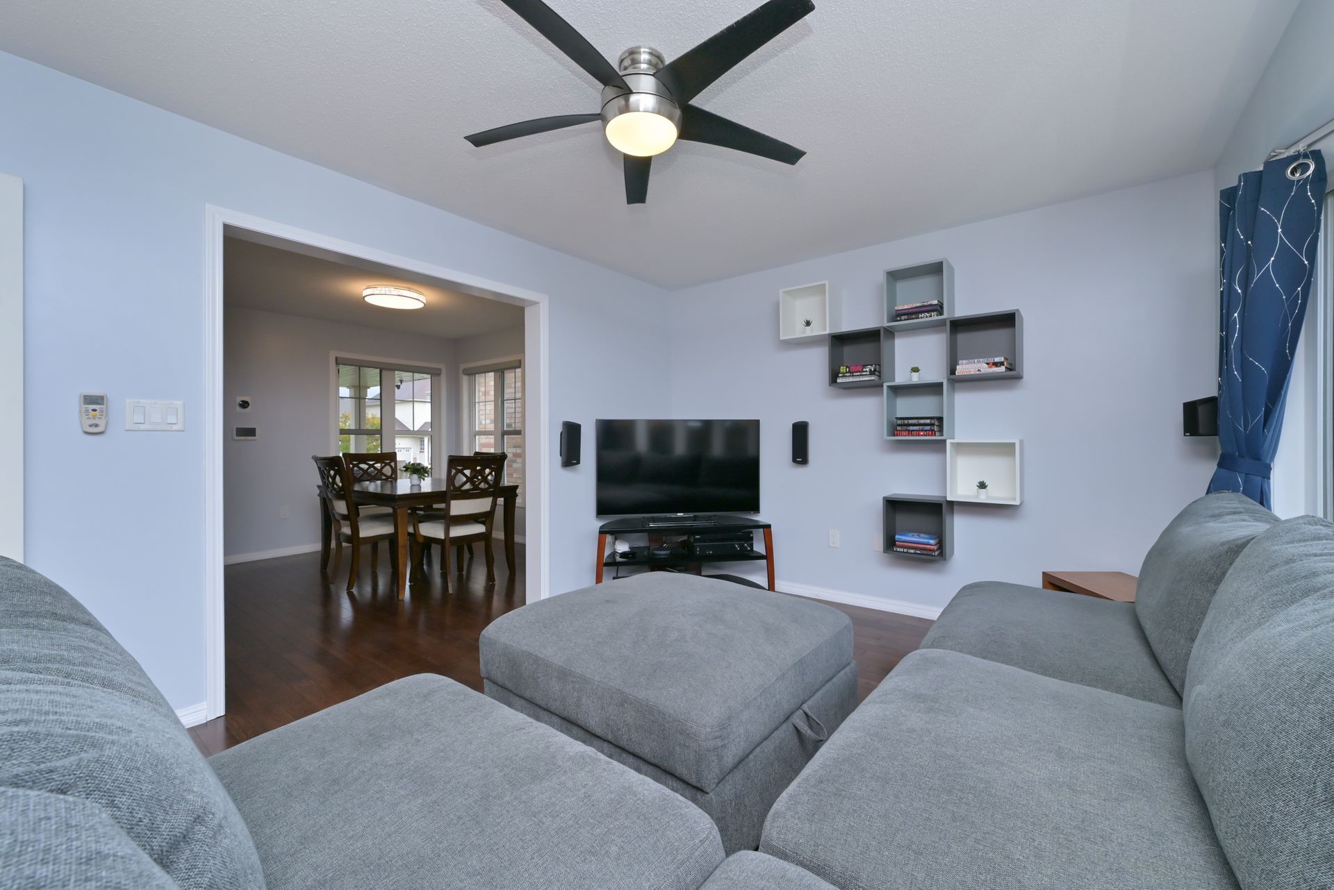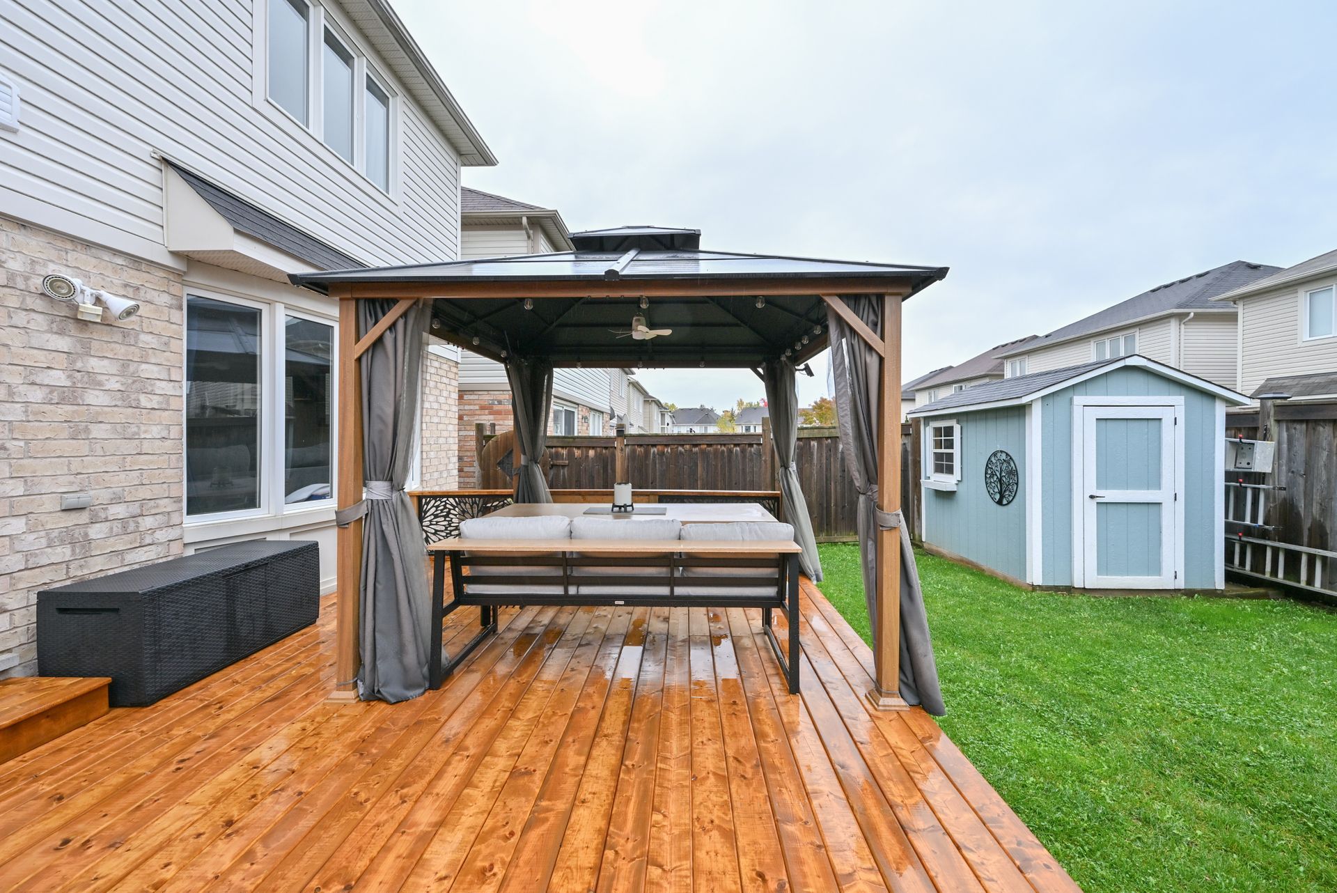 Welcome to this meticulously cared-for 3-bedroom, 3-bathroom, fully finished home, ideally located on a quiet, family-friendly street. This bright and functional layout features hardwood flooring, a spacious primary suite with walk-in closet and 4-piece ensuite, and the convenience of second-floor laundry. The main floor offers a separate formal dining room, an open-concept living area, and inside access from the garage for everyday ease. The finished basement provides versatile space for a family room, home office, or gym, along with ample storage and a cold cellar with built-in shelving-perfect for organizing seasonal items or extra pantry storage. Enjoy outdoor living in the fully fenced backyard, complete with a large entertainer's deck, garden shed, and a covered front porch ideal for relaxing or greeting guests. Additional features of this mattamy "borden" model | 1,387 sq ft + finished basement include stainless steel appliances, front-load washer and dryer, central air conditioning, central vacuum, and a garage door opener. Conveniently located within walking distance to schools, parks, shopping, and downtown amenities. This home is turnkey and move-in ready!