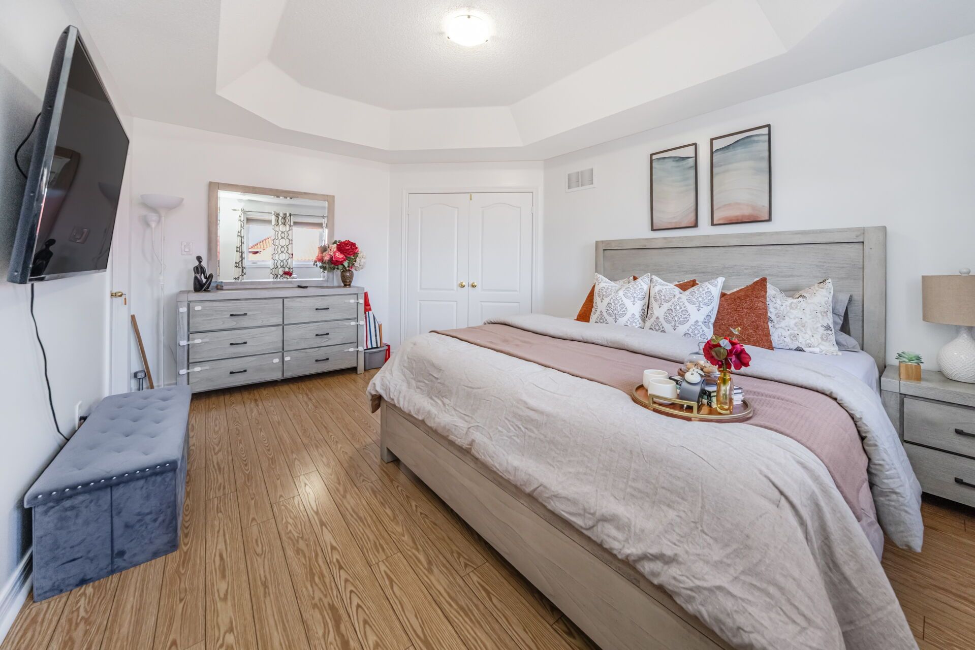 Wow! "rare opportunity! Stunning 4+2 bedroom home on premium pie-shaped lot with finished walk-up basement in highly sought-after bramalea community near sesquicentennial park." again! Welcome to this beautifully maintained residence offering the perfect blend of space, comfort, and functionality. Situated on a premium pie-shaped lot,( "pie-shaped lot; in indian tradition, a 'gaumukha' (cow-mouth shaped) plot is considered auspicious and a symbol of good fortune." ), with over 76 feet of width at the rear, this exceptional property provides privacy and abundant outdoor space for family living and entertaining. Offering approximately 3,200 sq. Ft. Of beautifully finished living space including finished basement. Enjoy 9-foot ceilings, with plain ceiling with pot lights, a cozy gas fireplace, and a thoughtfully designed layout that offers warmth and versatility for any lifestyle on ground floor. Designed with both everyday living and entertaining in mind, the main floor boasts separate living, dining, and family rooms. Featuring no carpet throughout. The upper level features four generously sized bedrooms and two full bathrooms, including a spacious primary suite complete with a 4-piece ensuite, walk-in closet, elegant coffered ceiling, and grand double-door entry. Also ideal for "potential rental income / in-law suite". The finished basement with a separate entrance and walk-up access provides outstanding additional living space, featuring two bedrooms with full sized windows, a separate living room, and a full kitchen with window. Next gen fiberglass acoustic insulation installed in the basement ceiling to sound transfer from the upper level enhancing privacy and comfort.