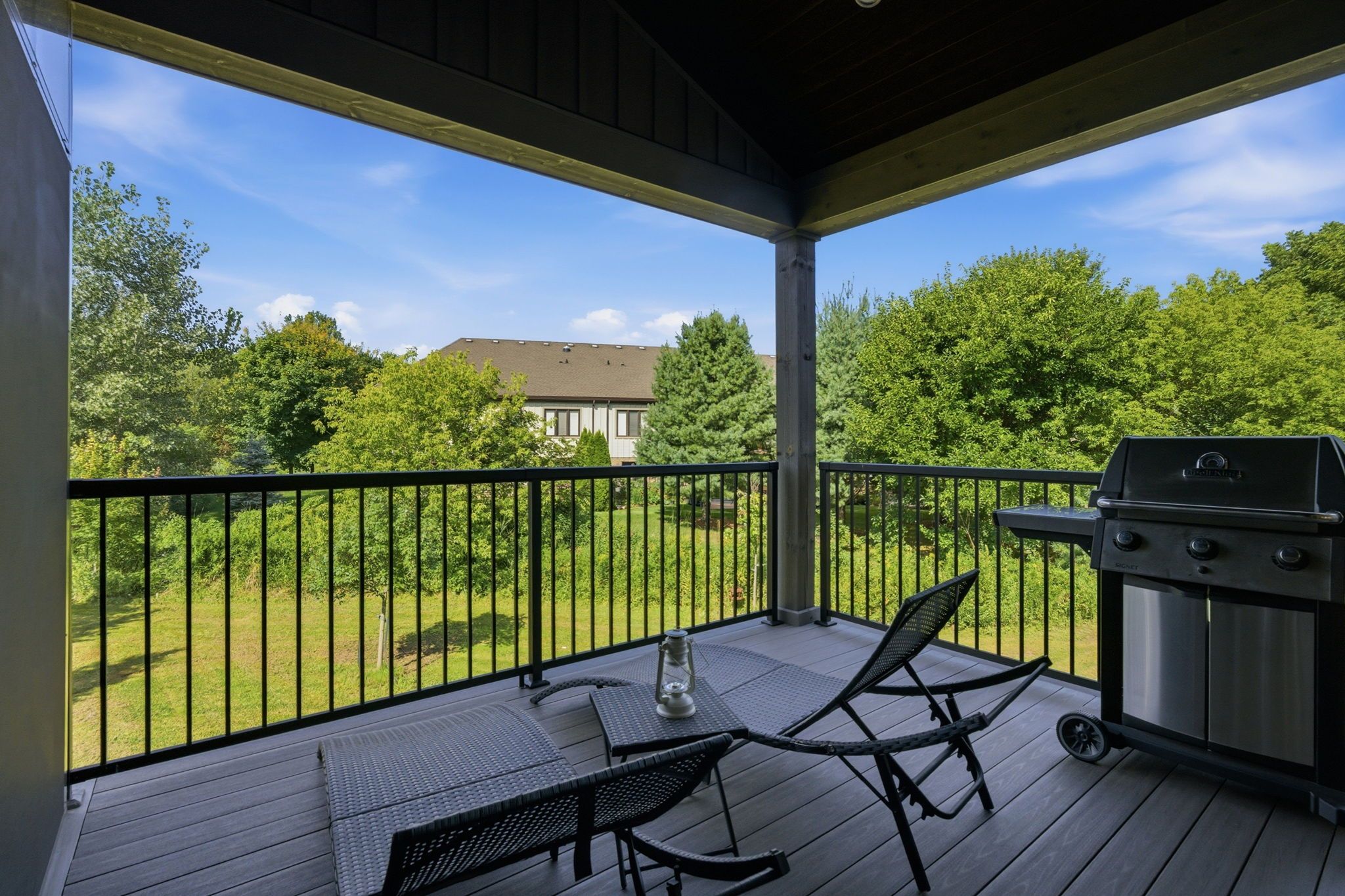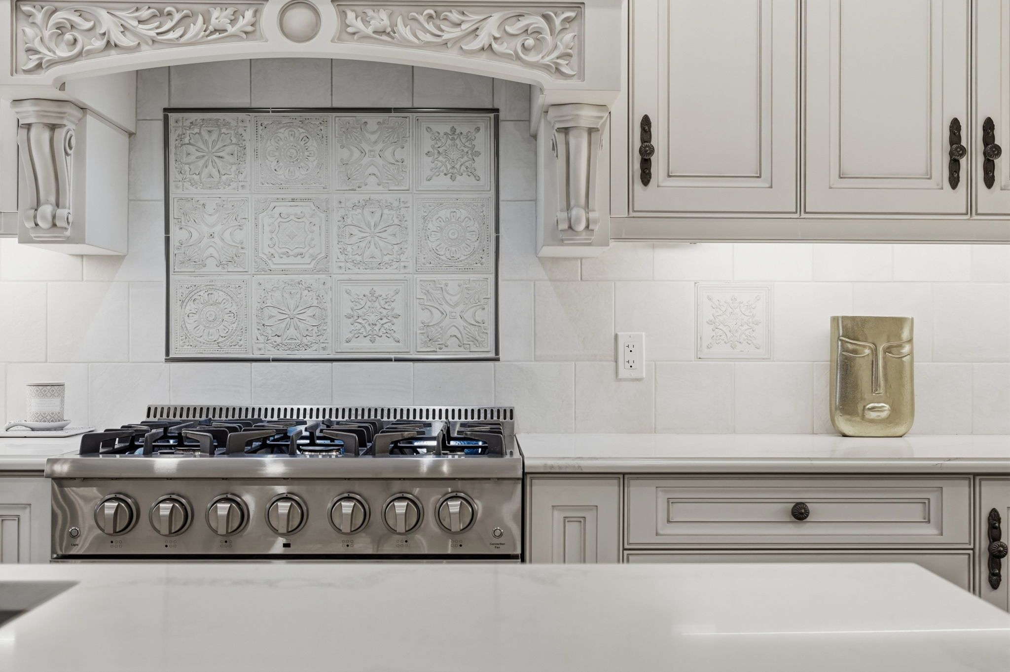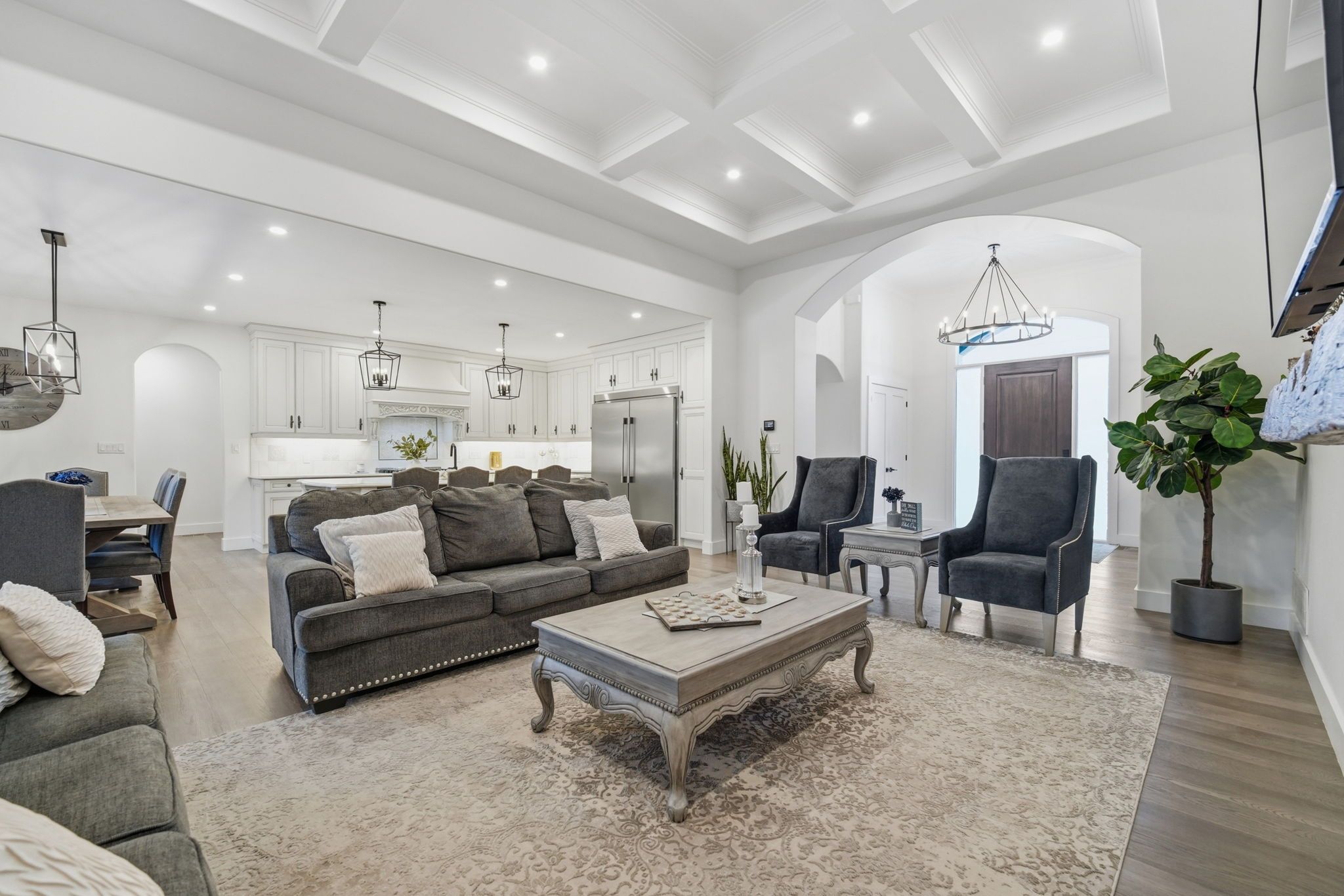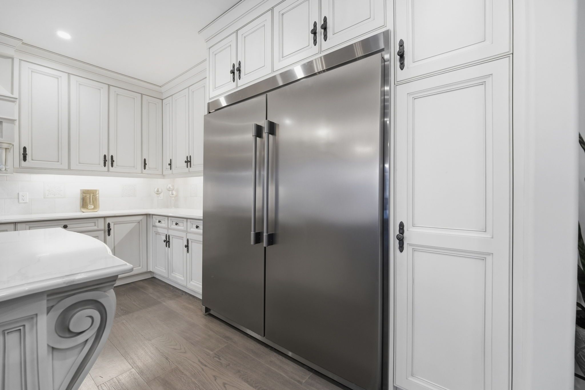 • Chef-inspired kitchen featuring quartz countertops, large island, and built-in appliances.