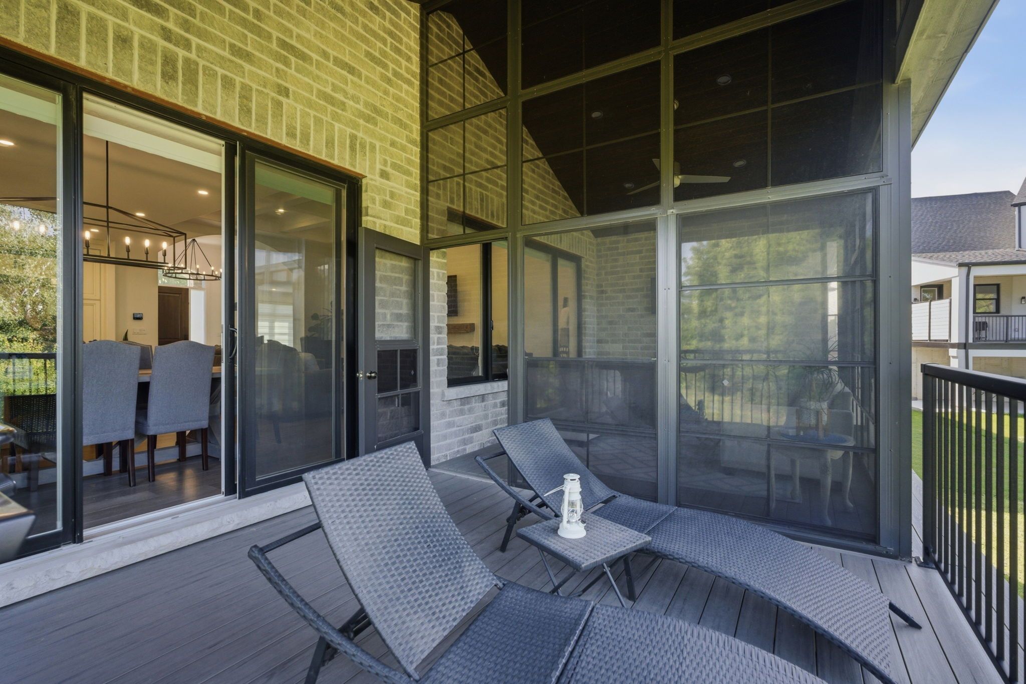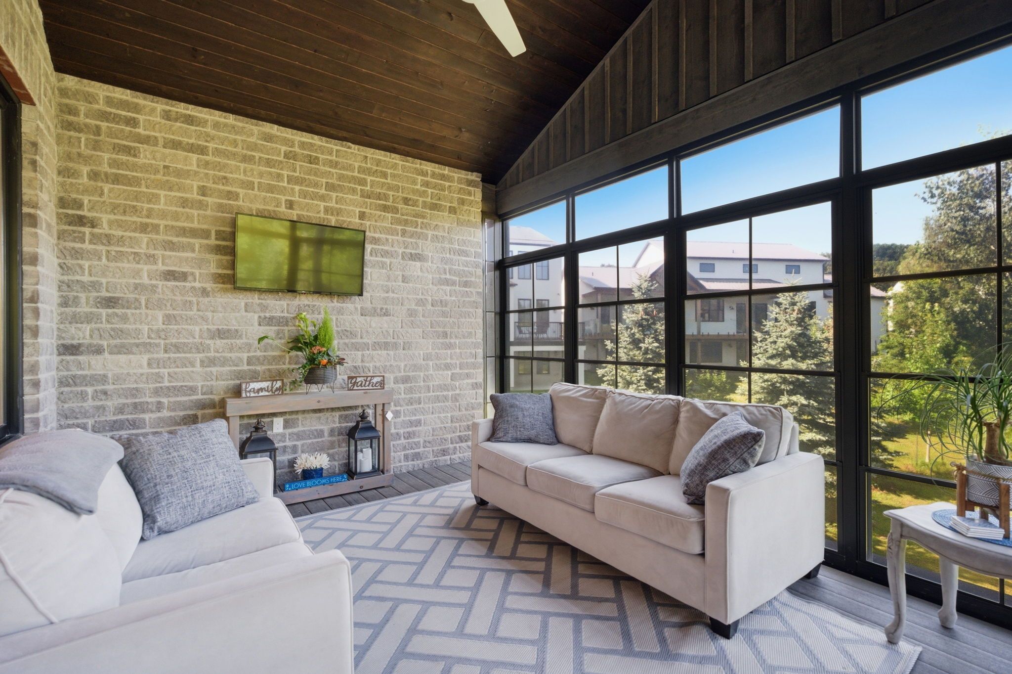 • Outdoor space includes a covered porch, sunroom, and landscaped grounds.