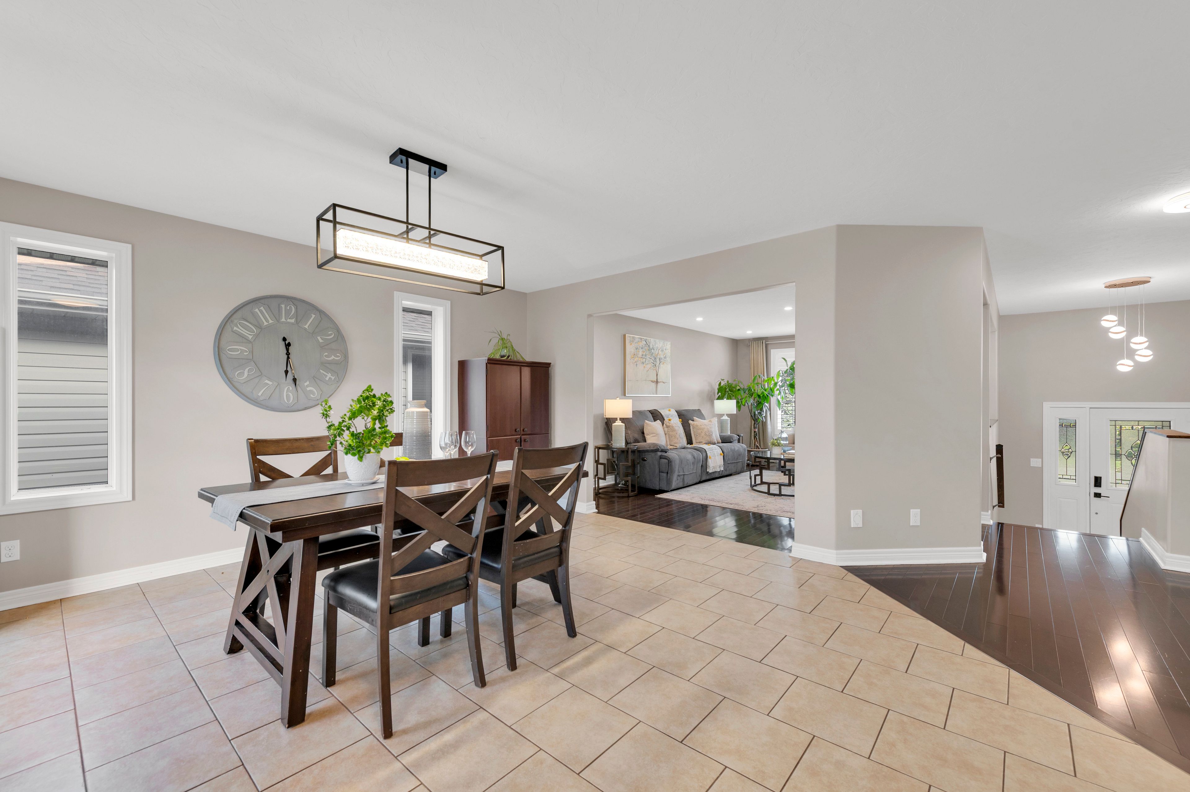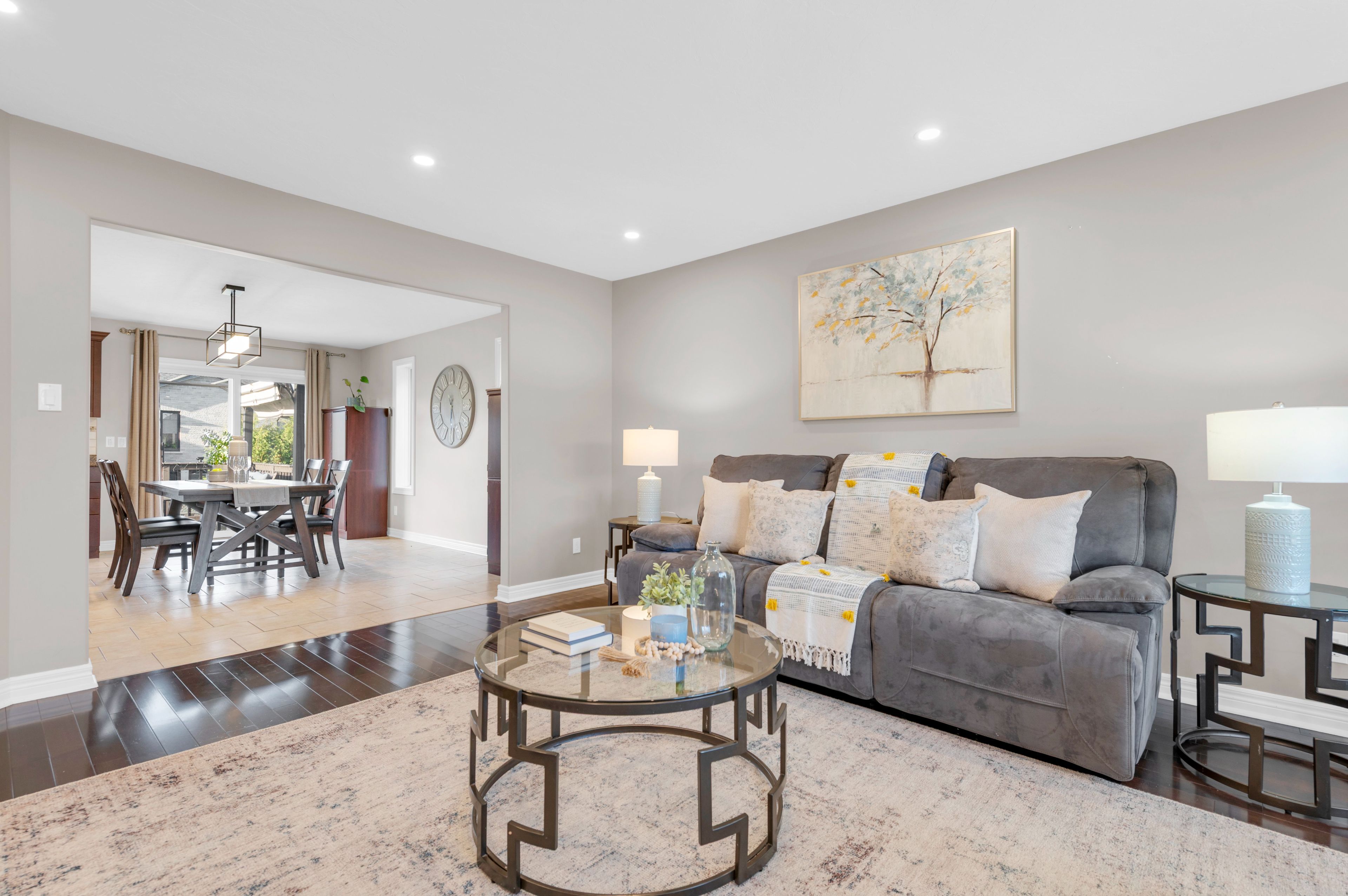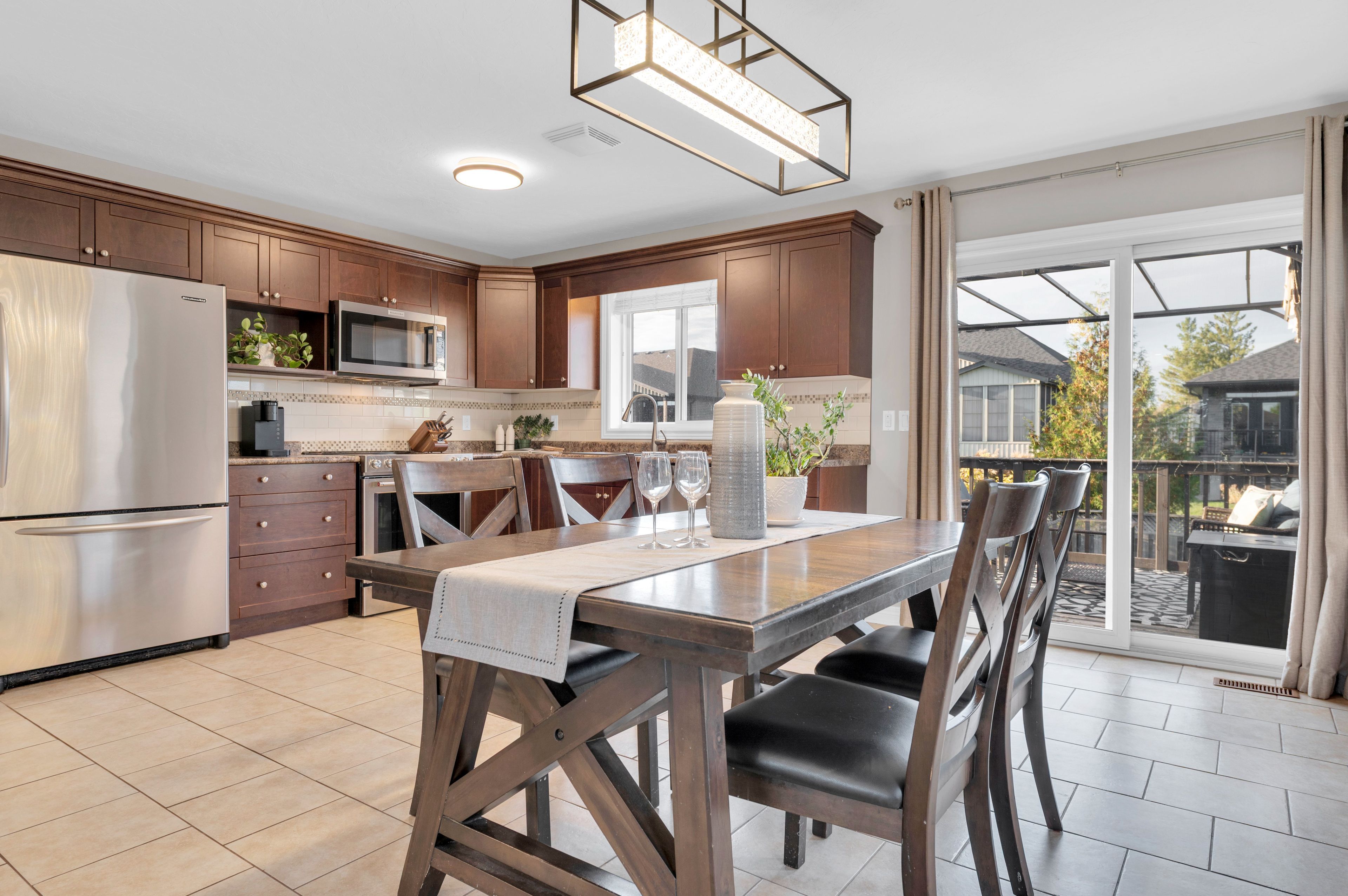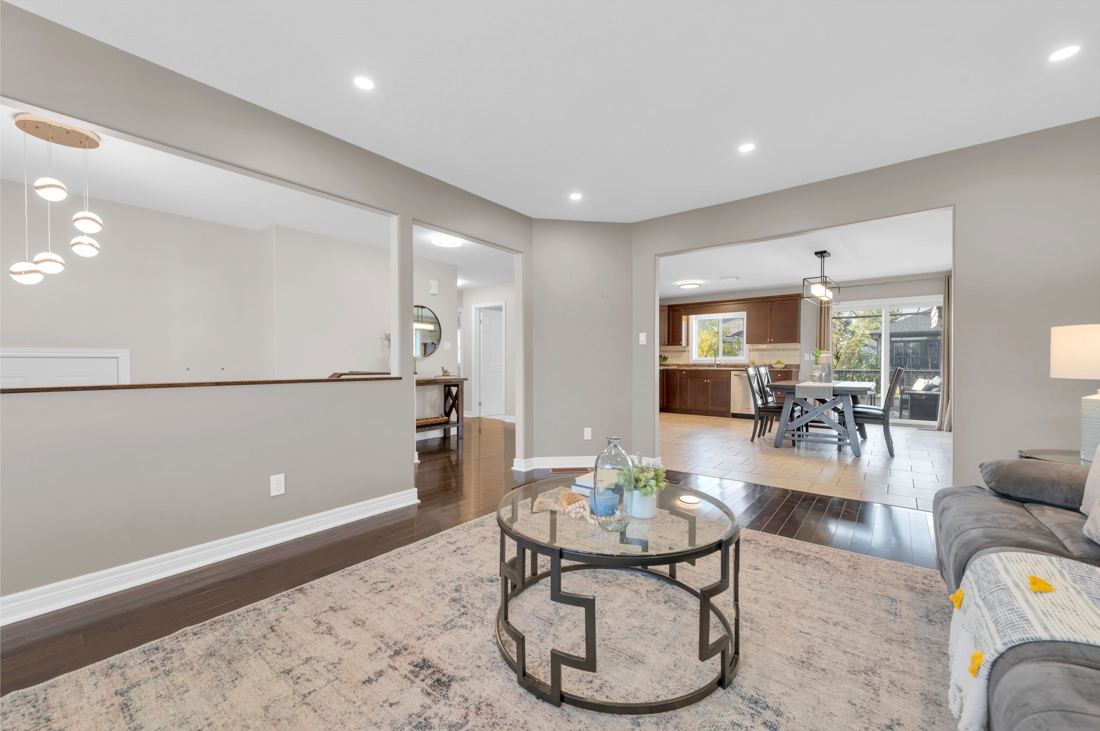 • Open-concept living area with patio doors leading to the backyard.