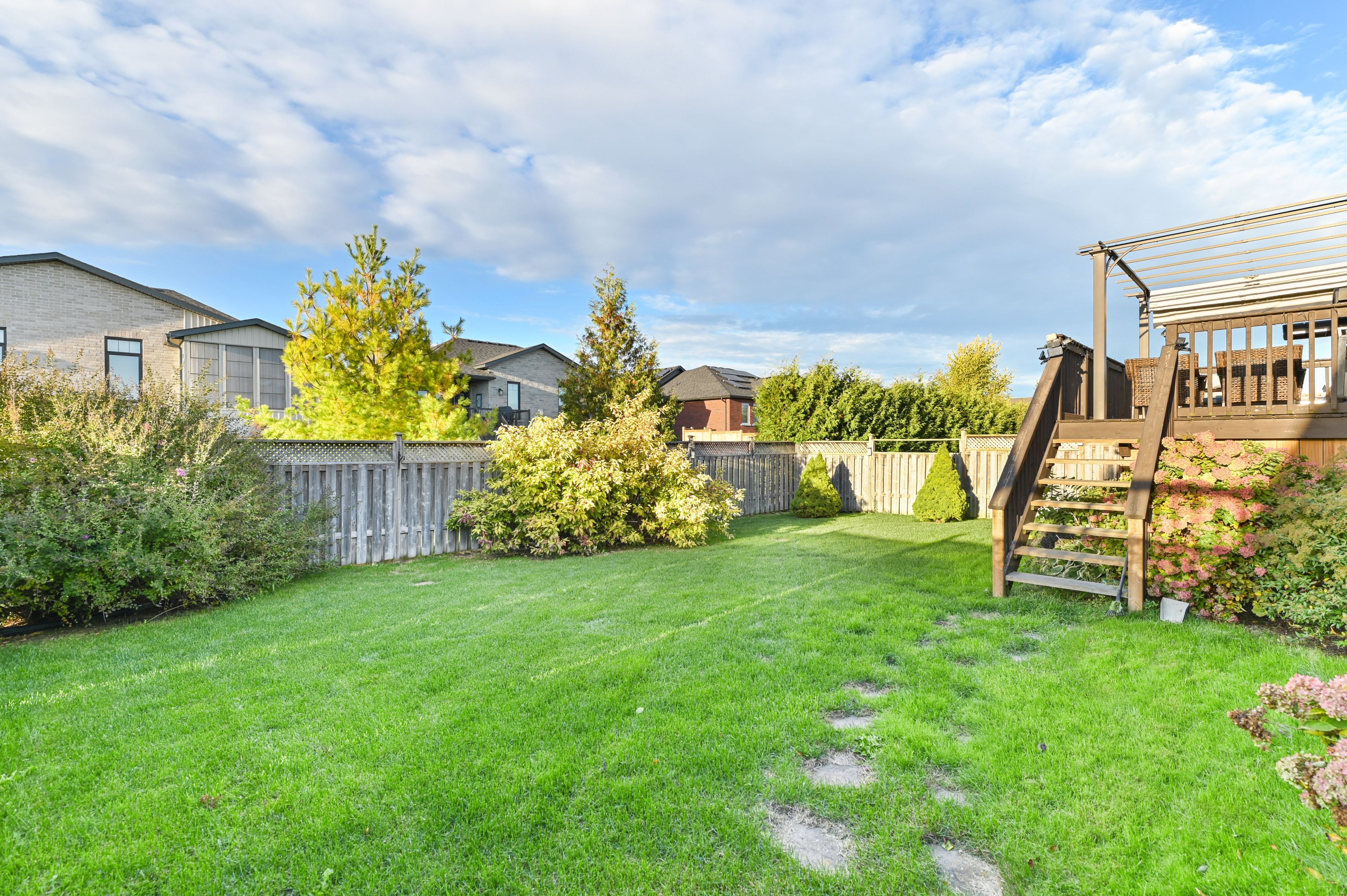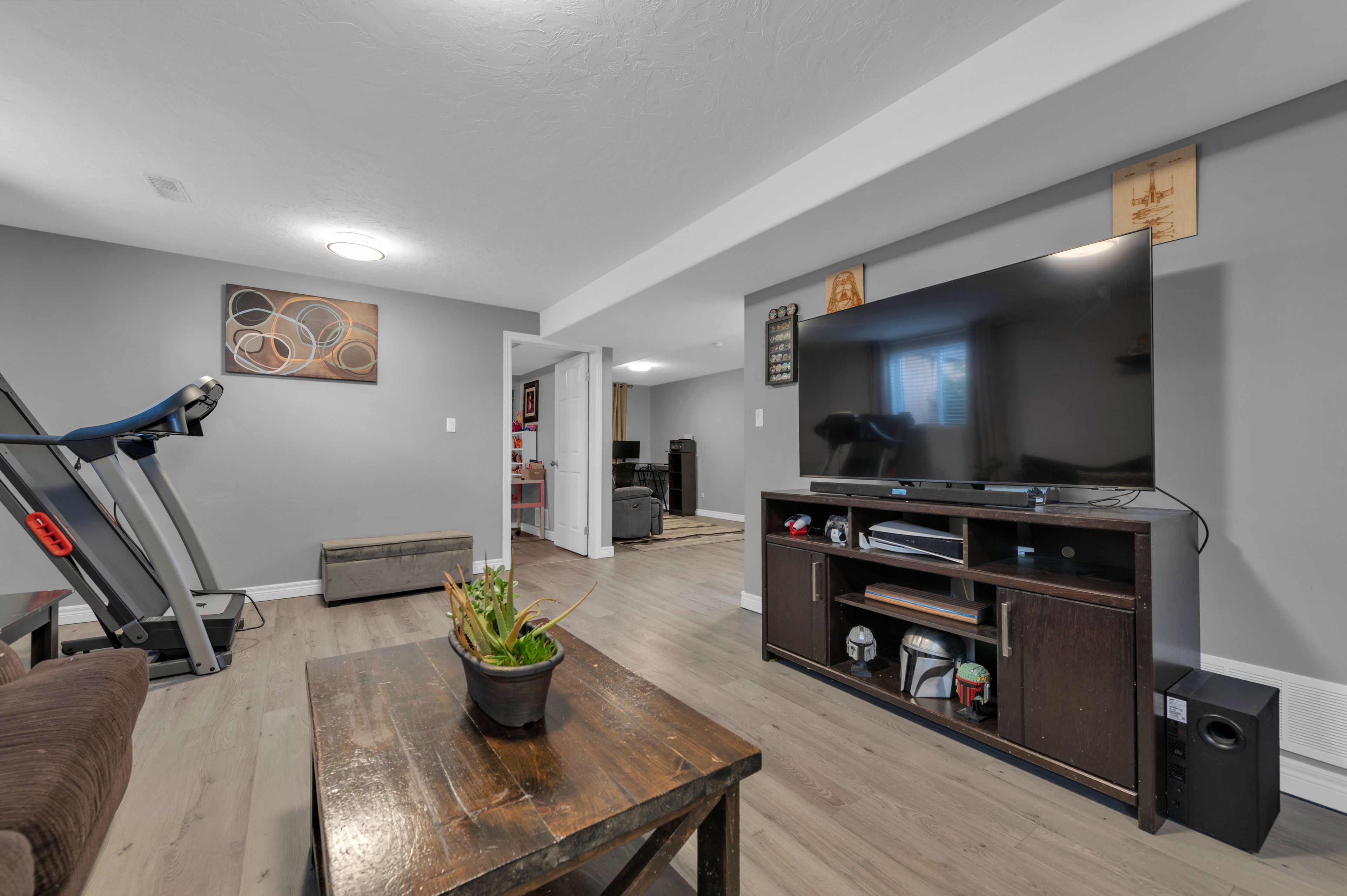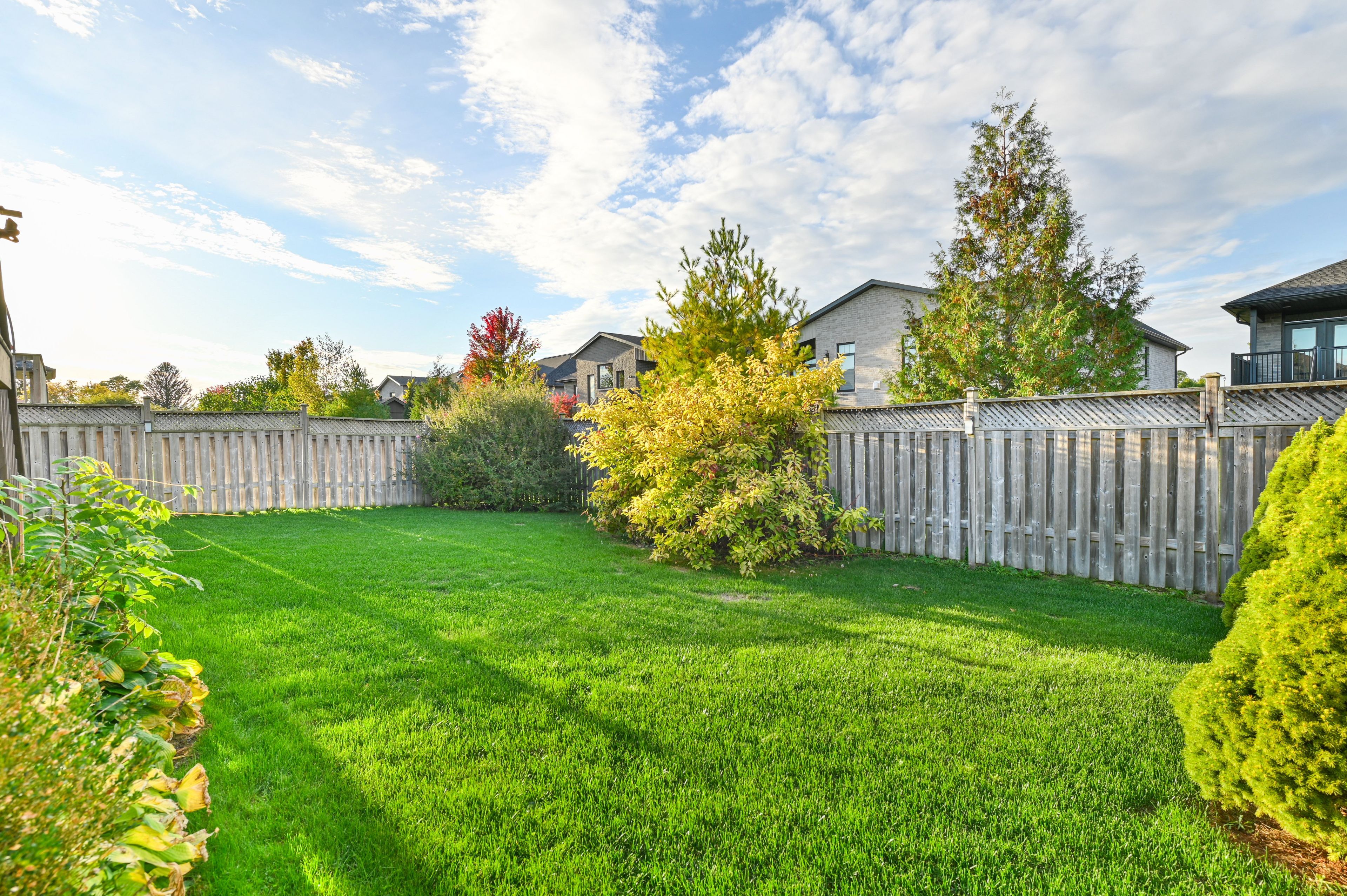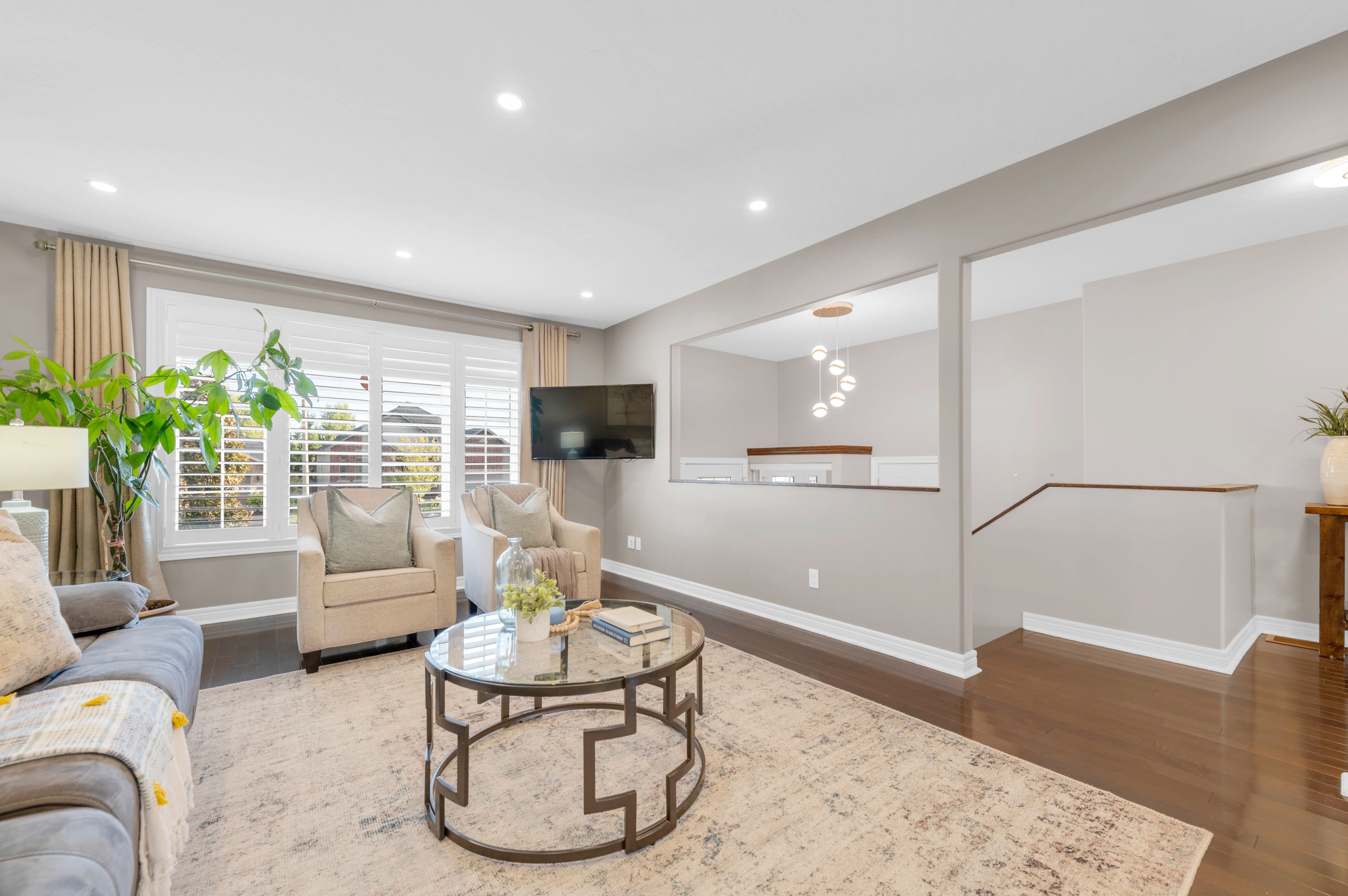 • Open-concept living area with patio doors leading to the backyard.