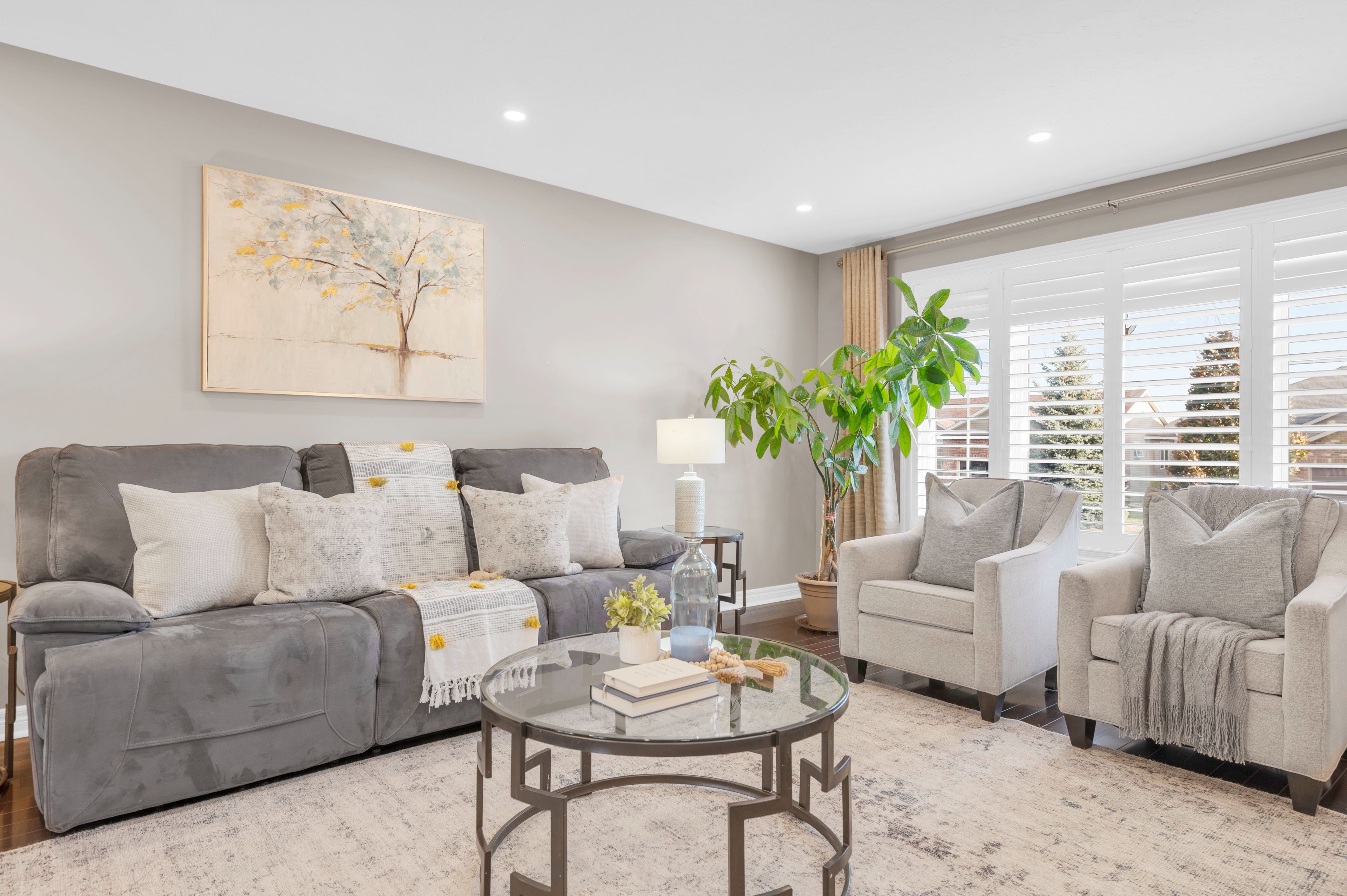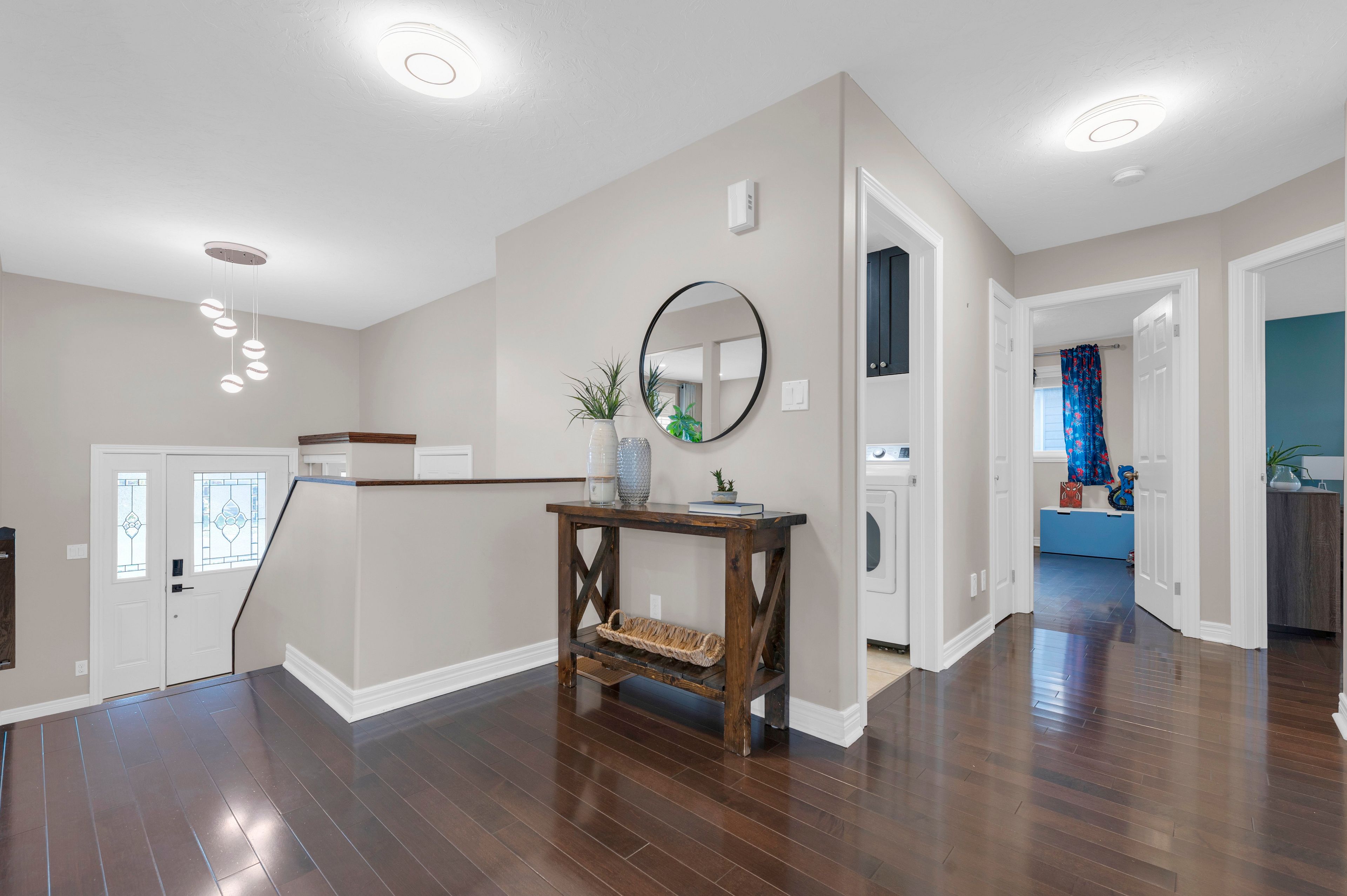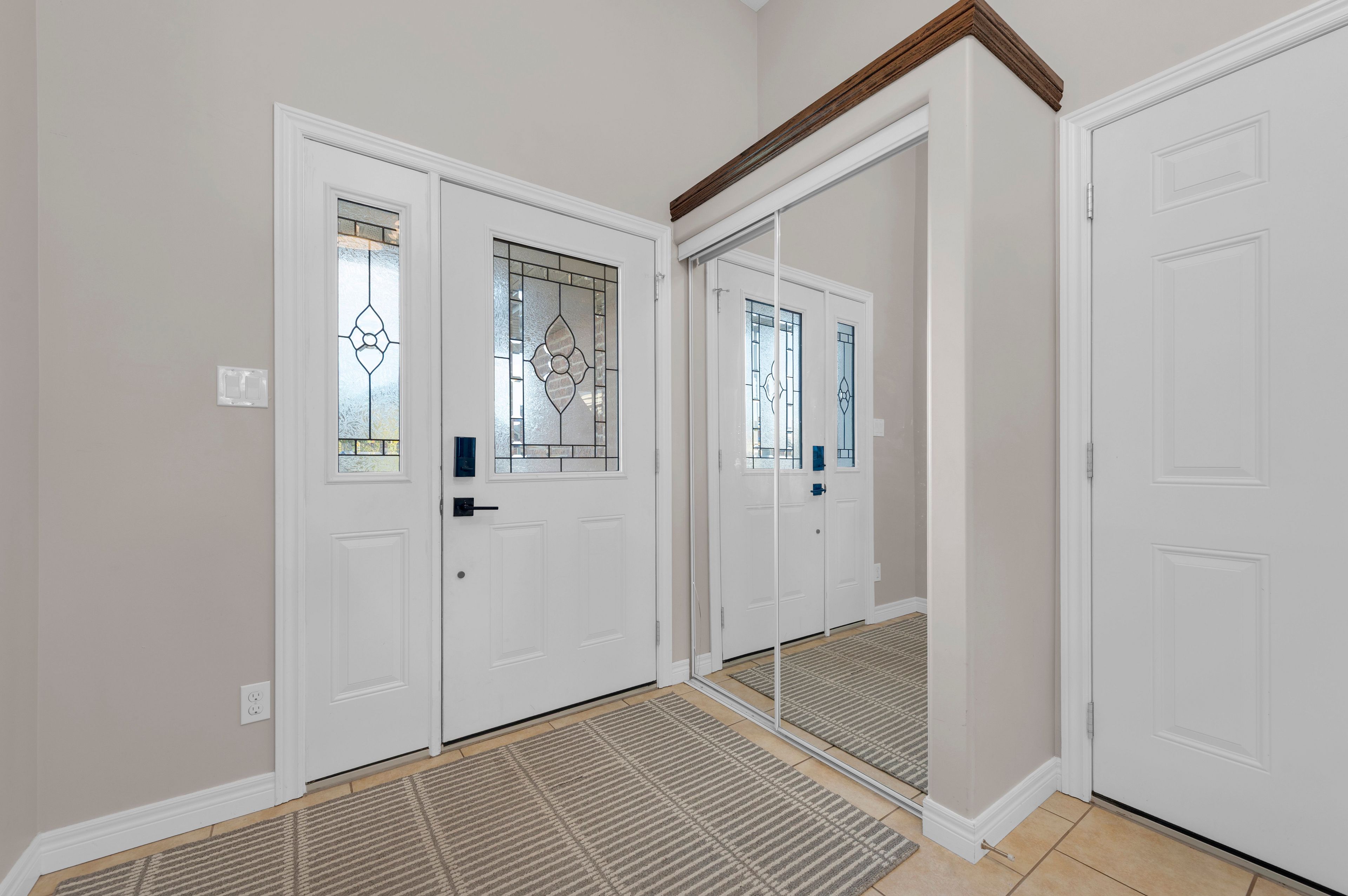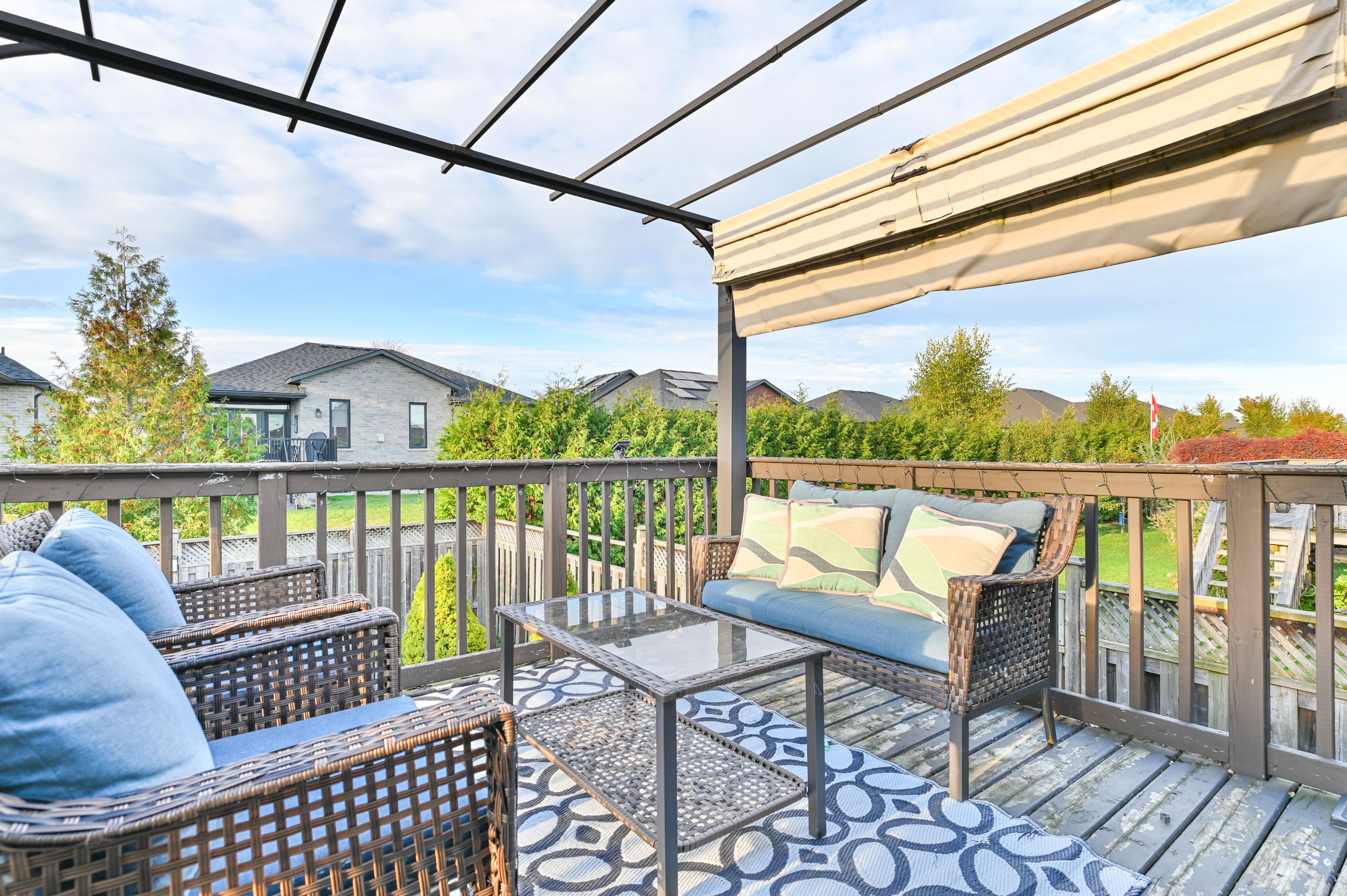 • Open-concept living area with patio doors leading to the backyard.