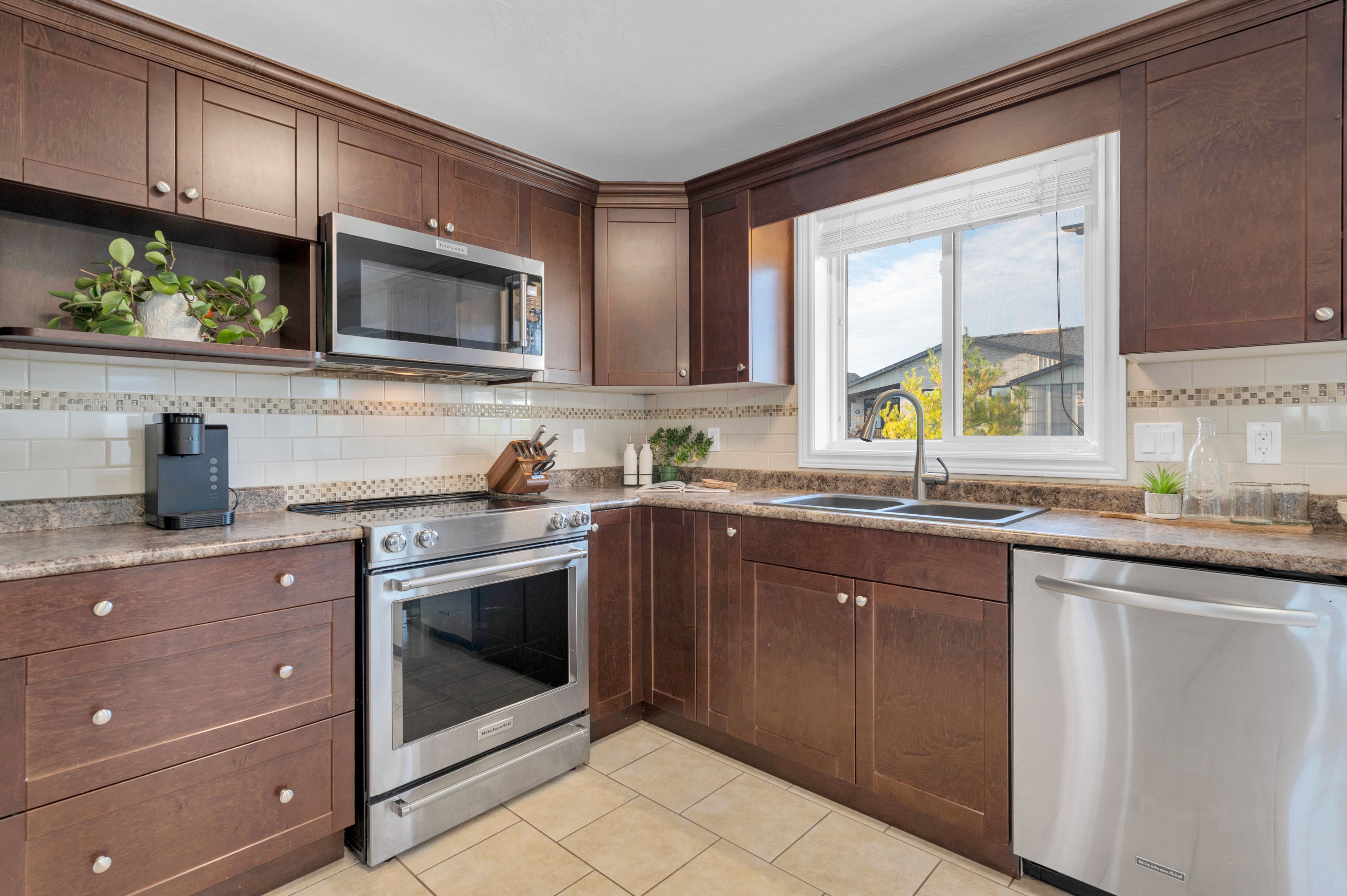 • Lower level offers extra bedrooms, a rec room, and versatile space.