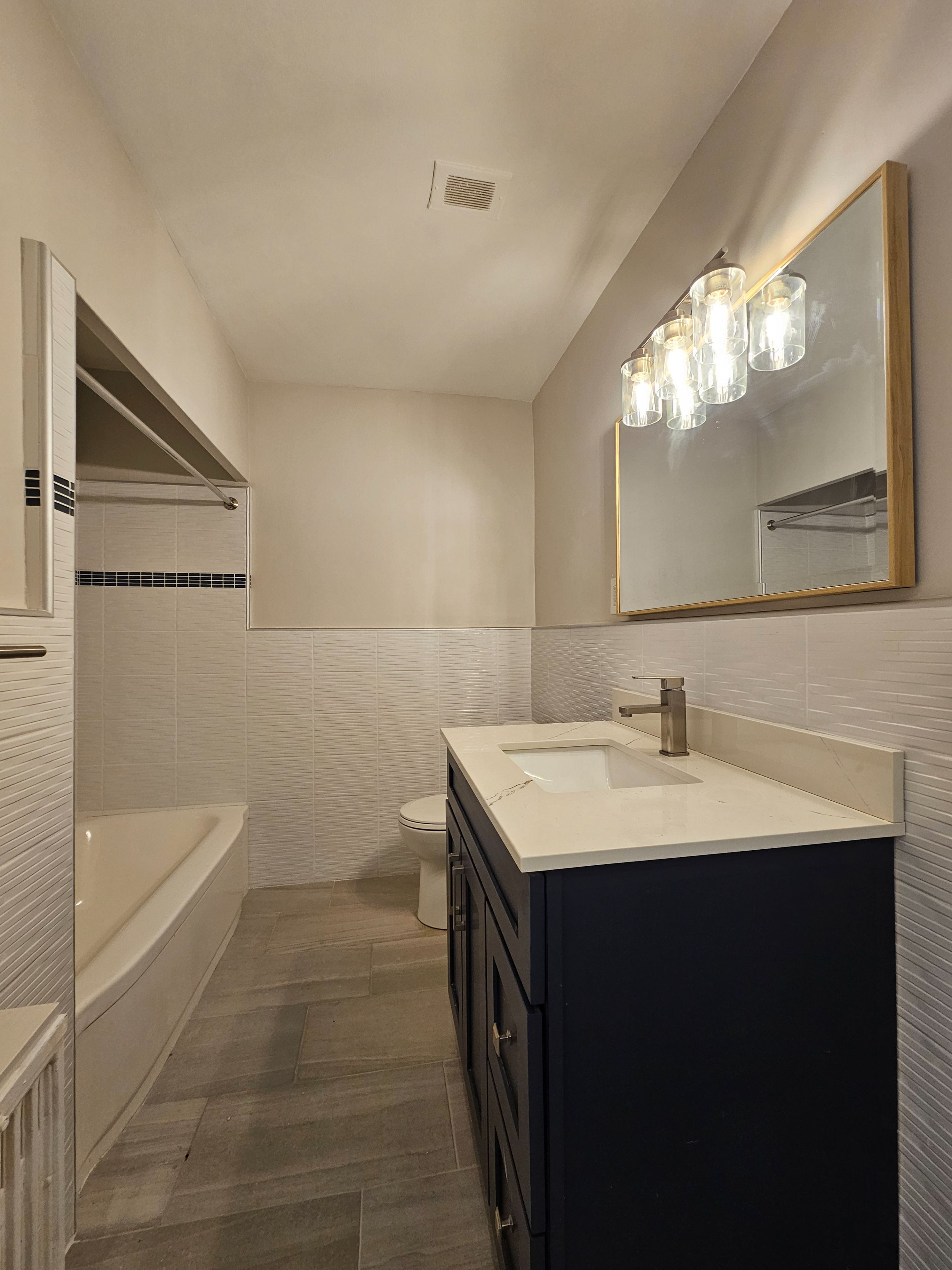 • Updated kitchen with new tile, countertops, and refinished cabinetry.