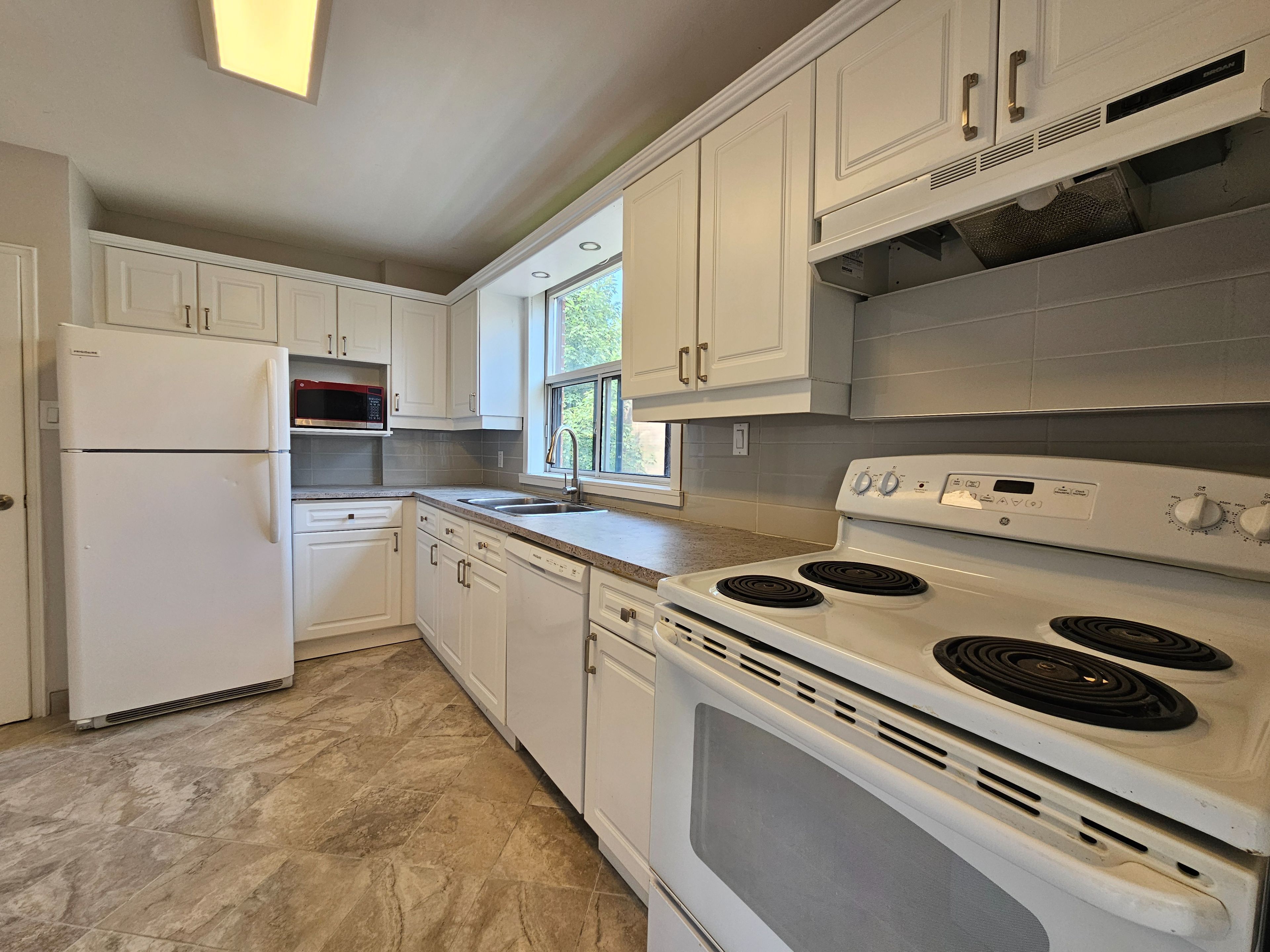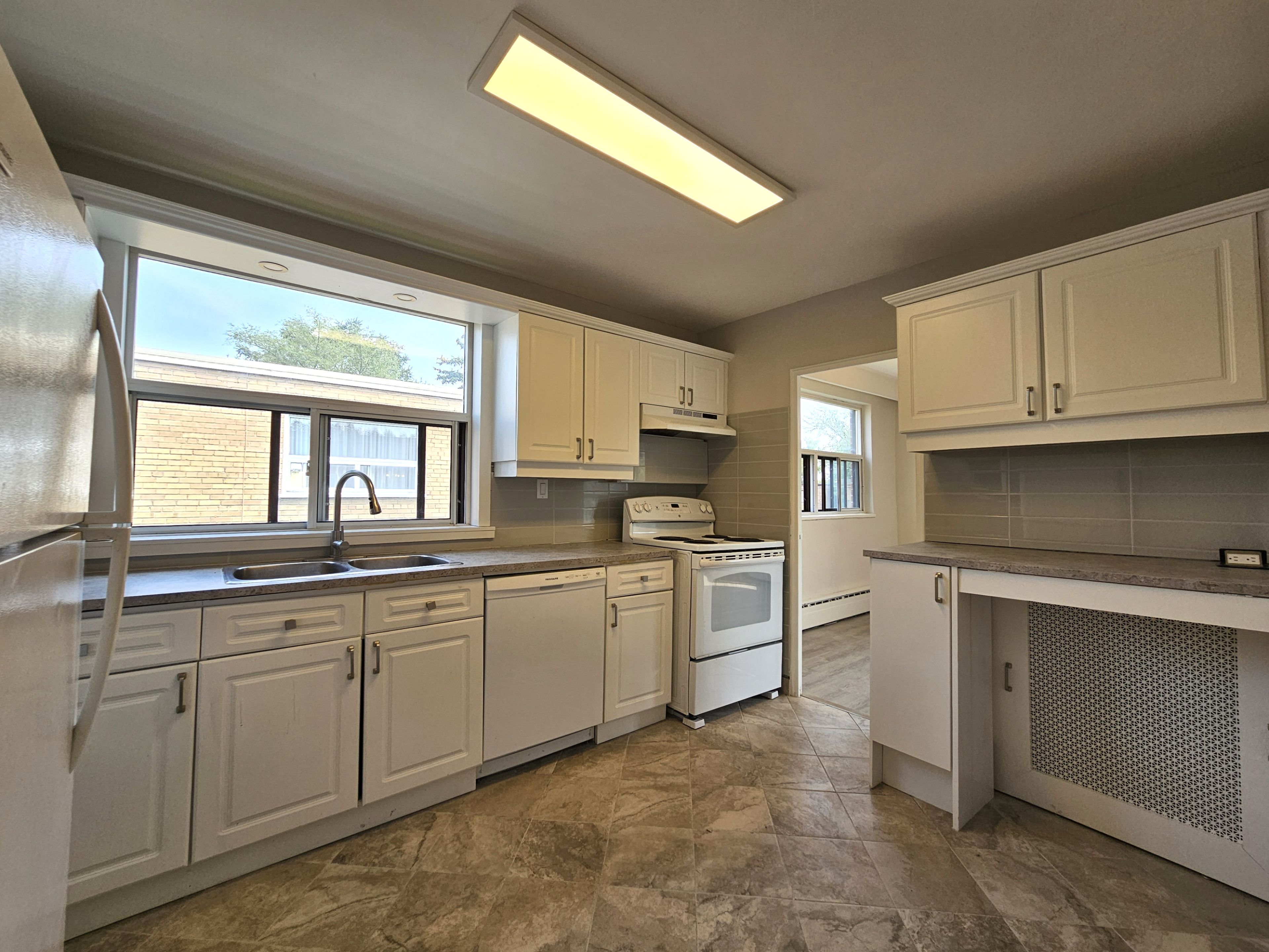 Newly renovated extra-large 3-bedroom apartment. This spacious, fully remodelled apartment offers three generously sized bedrooms and two bathrooms - including a private ensuite with brand-new tile, vanities, and fixtures. The oversized living and dining area easily accommodates a full dining set and living room suite, with extra space for a home office or secondary seating nook. The full-sized kitchen has been refreshed with new floor tile, countertops, lighting, and refinished cabinetry. Just a 10-minute walk to the subway and close to major shopping and amenities. On-site laundry. Water is included. One parking space is included.