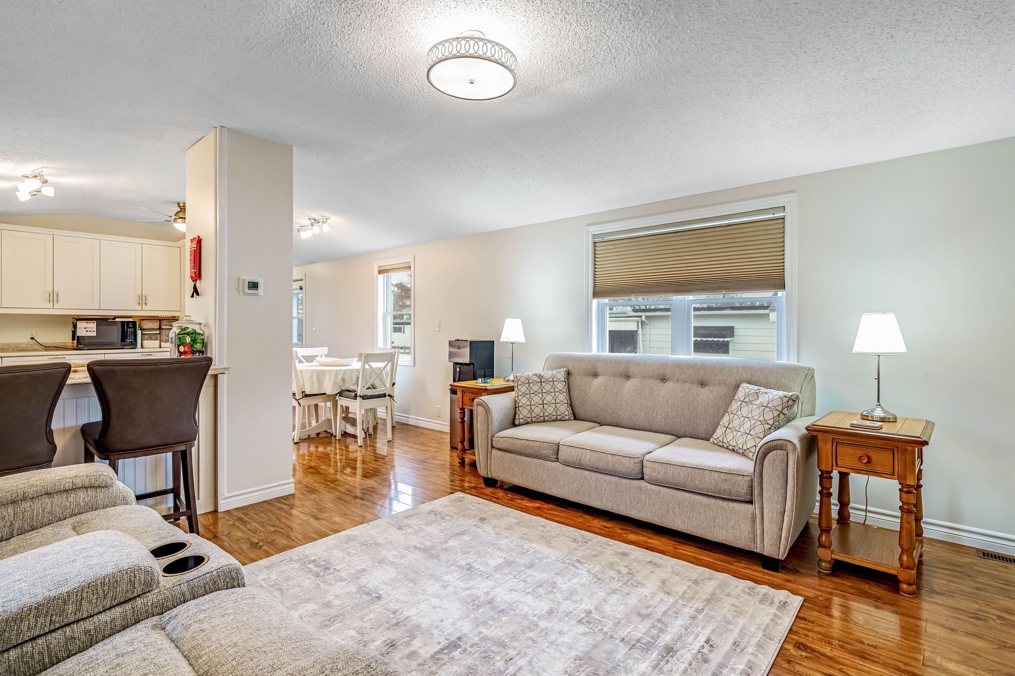 • Spacious living area with hardwood flooring and plenty of natural light.