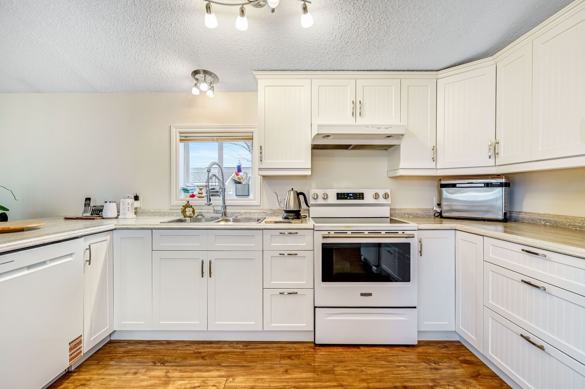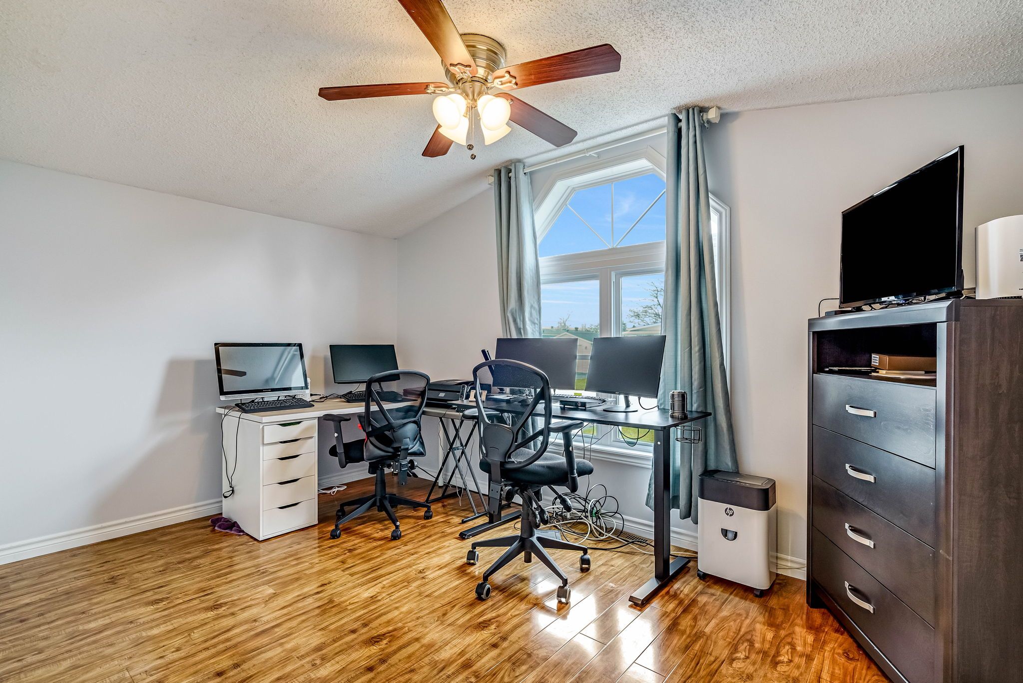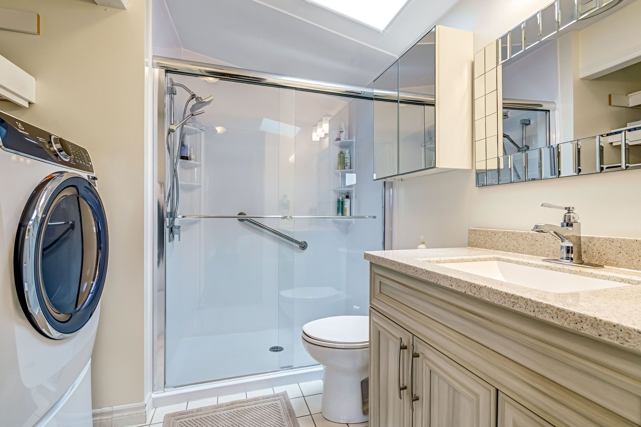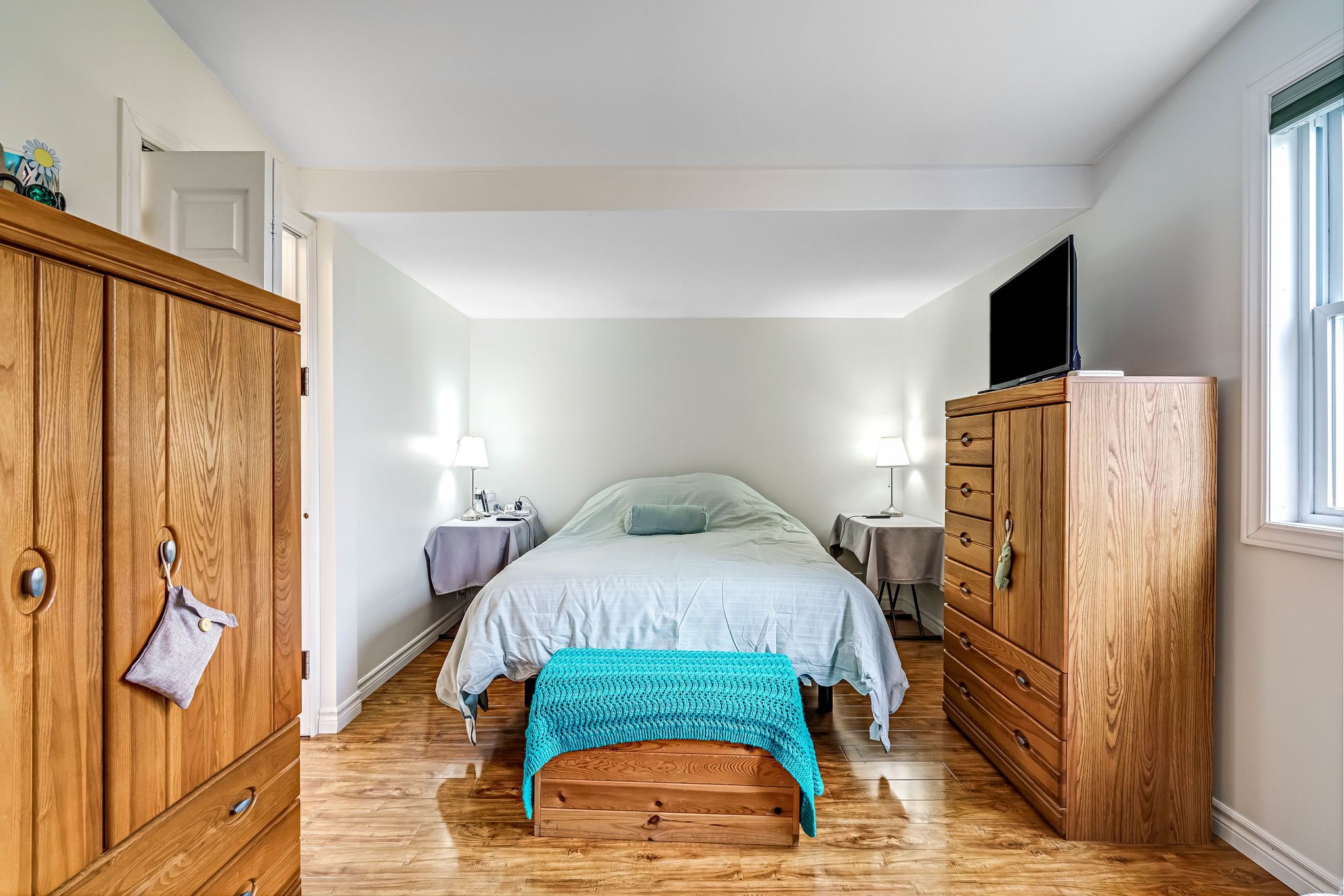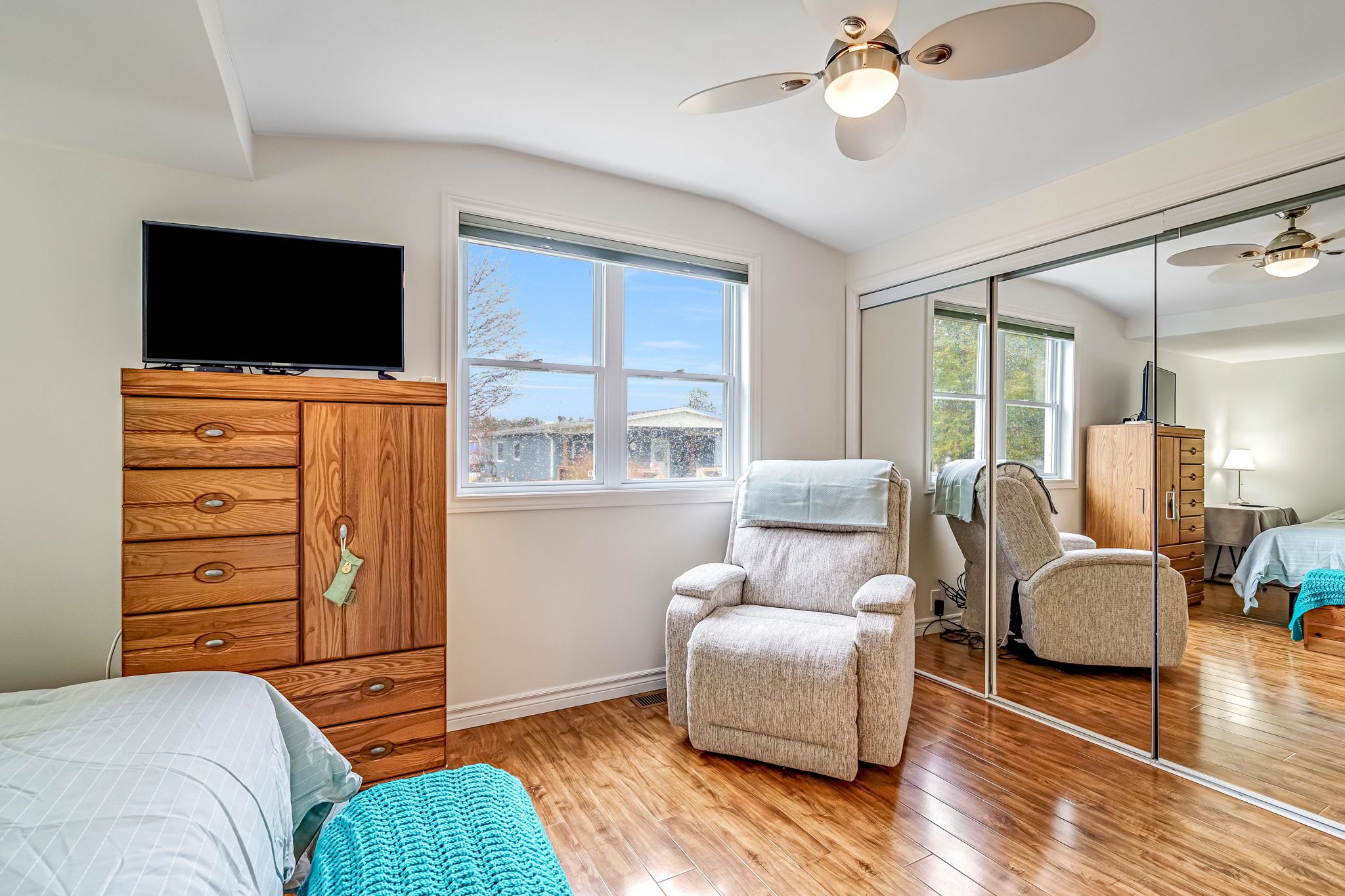 • Generous primary bedroom with ensuite and large mirrored closet.