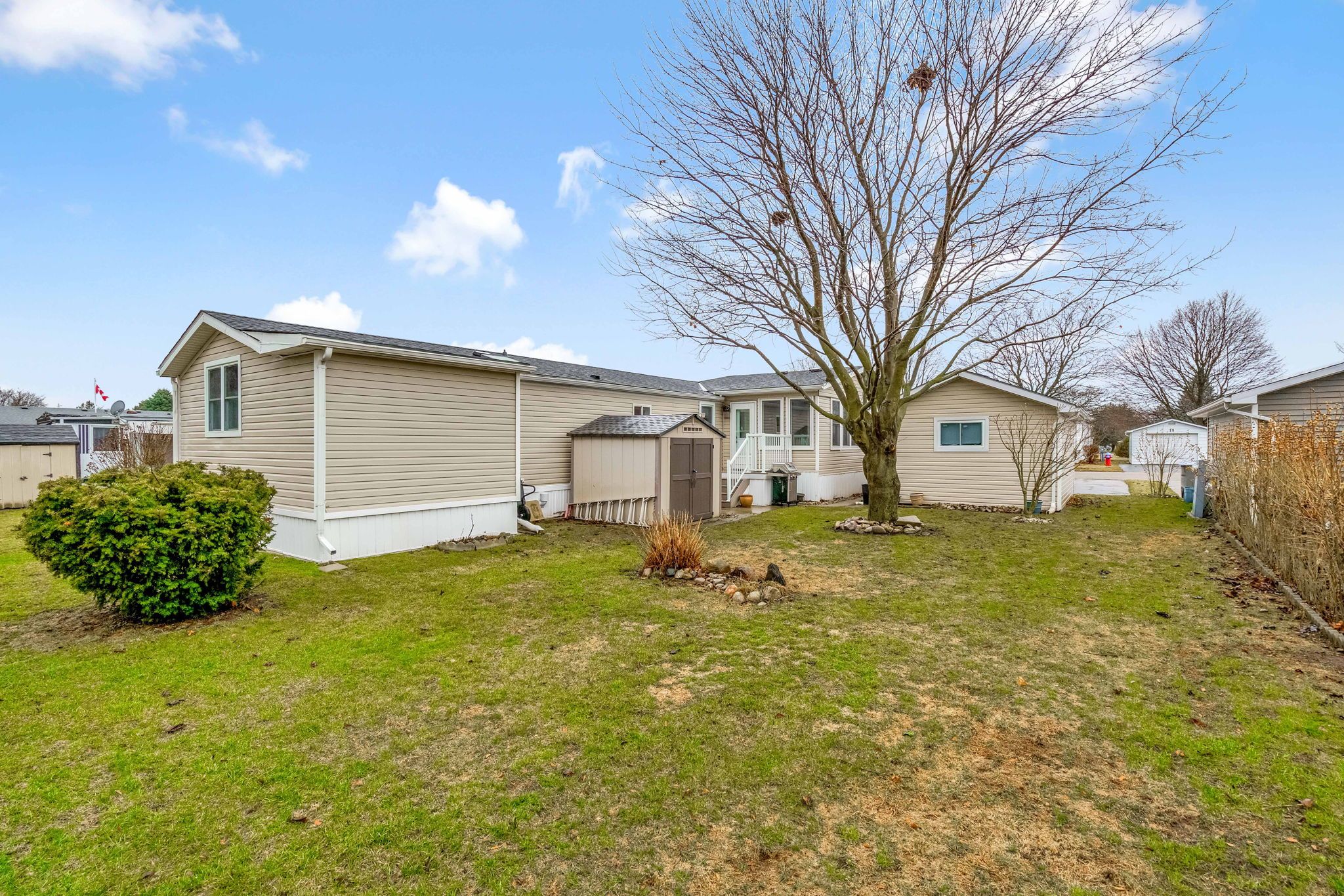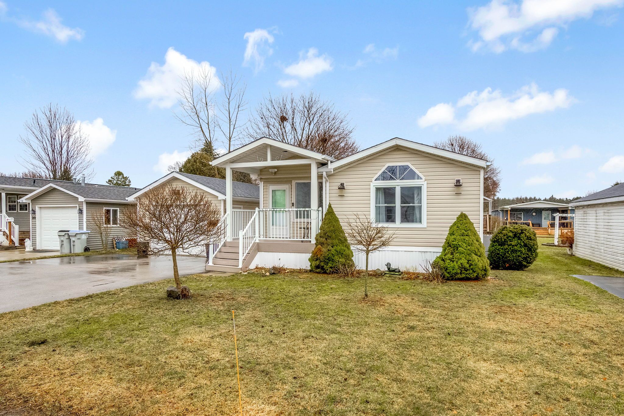 Welcome to 18 george street in twin elm estates, a peaceful adult lifestyle community in strathroy, ideally located close to major amenities including shopping, restaurants, and the hospital. This well-maintained home offers comfortable living in a quiet setting while still being conveniently close to everything you need. The home was completely redone approximately 11 years ago in neutral colours, creating a bright and welcoming feel. The spacious living area features beautiful hardwood flooring, functional built-in wall units with ample storage, and large windows that open from the top or bottom and tilt inward for easy cleaning, filling the space with natural light. A thoughtfully designed addition includes a generous primary bedroom with ensuite, convenient main floor laundry, and a large mirrored closet providing excellent storage and functionality. The home also offers an enclosed sunroom with large windows that open to allow a refreshing summer breeze, making it a perfect space to relax and enjoy the outdoors in every season and a single-car garage, providing convenient parking and additional storage space.. Additional features include forced air gas heating, central air conditioning, an owned tankless water heater, and newer appliances. Located in the friendly and well-kept twin elm estates community, this home offers affordable, low-maintenance living in a desirable location. Twin elm estates also offers a community centre with regular activities and social functions for residents, creating a welcoming environment and great opportunities to connect with neighbours. Monthly fees: land lease: $800. 00 estimated monthly lot taxes: $46. 05 estimated monthly structure taxes: $16. 65 garbage collection: $28. 92 total monthly payment: $891. 62 (due on the 1st of each month)water and sewer: municipal - billed quarterly.