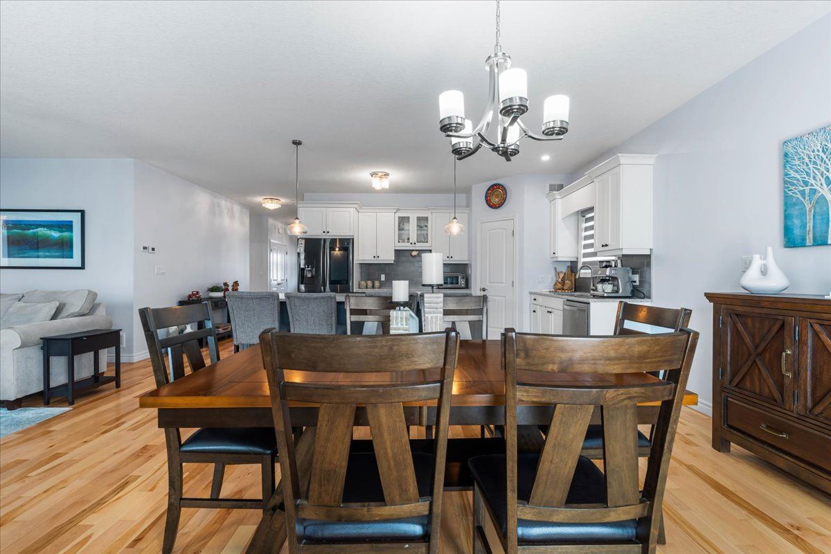Motivated sellers!! Experience exceptional adult-lifestyle living in the highly desirable community of wellington-on-the-lake. This stunning, extensively upgraded 2+2+den residence features a 2-car garage and a rare triple-wide driveway, perfectly situated along the shores of lake ontario. Blending modern elegance with resort-style amenities, the main level welcomes you with an open-concept design, soaring 9-foot ceilings, and an abundance of natural light. The chef-inspired kitchen is a true culinary showpiece, boasting an oversized central island, sleek quartz countertops, a professional-grade 36-inch 6-burner gas stove, a high-end smart refrigerator, a walk-in pantry, and elegant pendant lighting. This space flows seamlessly into the dining and living areas, creating an ideal environment for entertaining. Outdoor living is effortless with double french doors leading to a full-width rear deck, complete with a pergola and a dedicated bbq gas line. The main floor offers a thoughtful layout including a luxurious primary suite with a walk-in closet and a spa-like 4-piece ensuite featuring dual sinks and an oversized glass shower. Two additional well-sized bedrooms, a second 4-piece bathroom, and a convenient main-floor laundry room with garage access complete this level. The fully finished lower level significantly expands your living space, offering two more bedrooms, a third 3-piece bath, and a massive commercial-grade second kitchen equipped with three sinks-perfect for catering or large-scale hosting. A cozy recreational room with a custom live-edge wet bar adds to the home's impressive versatility. Life in wellington-on-the-lake provides access to unparalleled amenities, including a heated pool, tennis/pickleball courts, a fully equipped gym, and vibrant social clubs. Surrounded by the renowned wineries, fine dining, and scenic millennium trail of prince edward county, this home delivers an exceptional lifestyle in an unbeatable location.