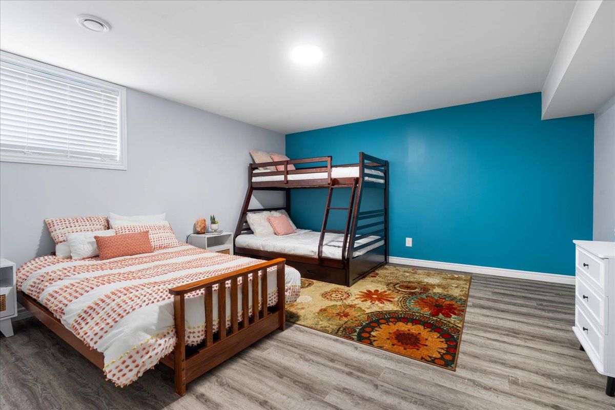 • Finished lower level adds extra bedrooms, bath, and a second kitchen.