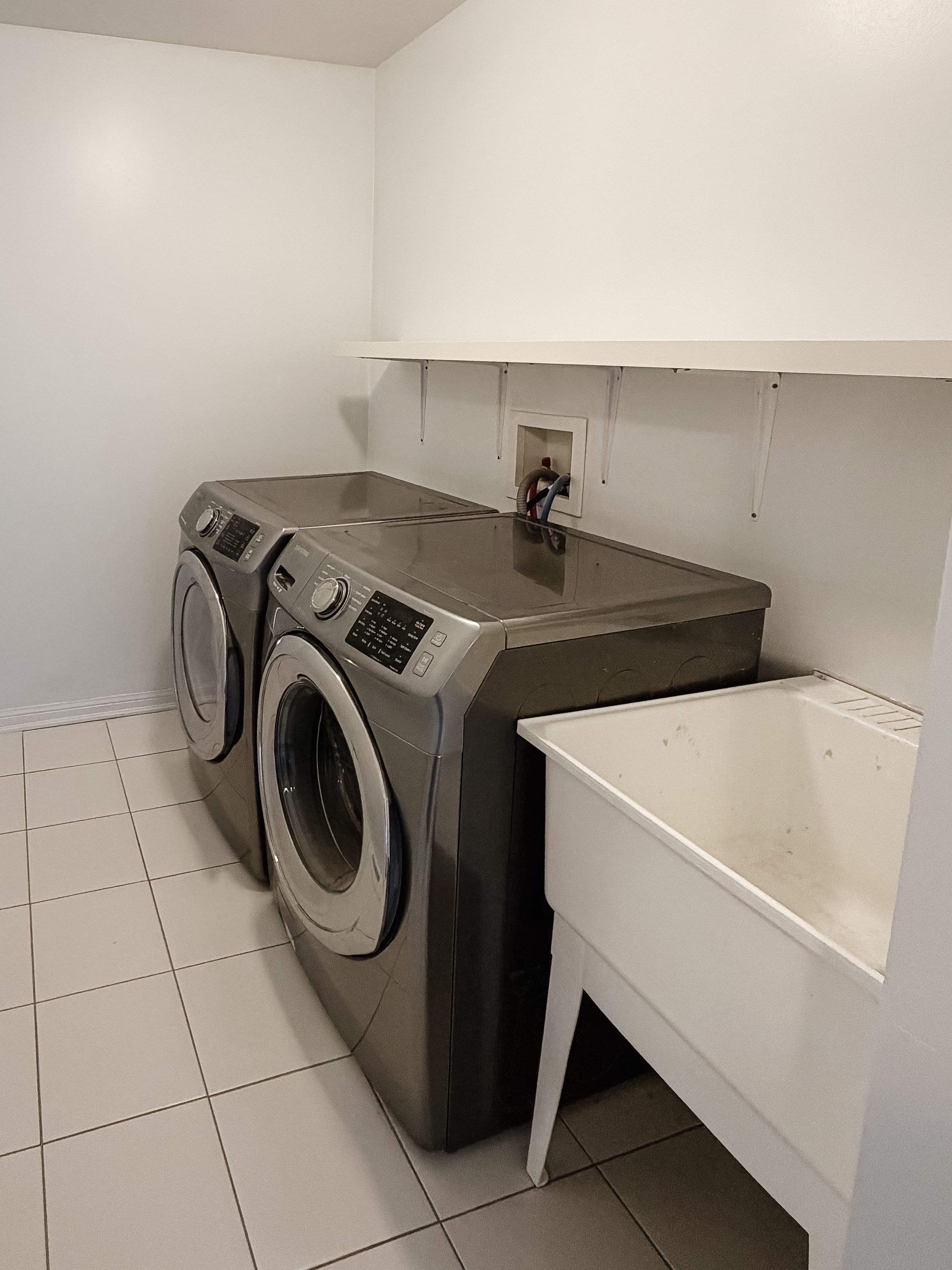 • Nearly complete basement with rough-in kitchen and bathroom for added living space.