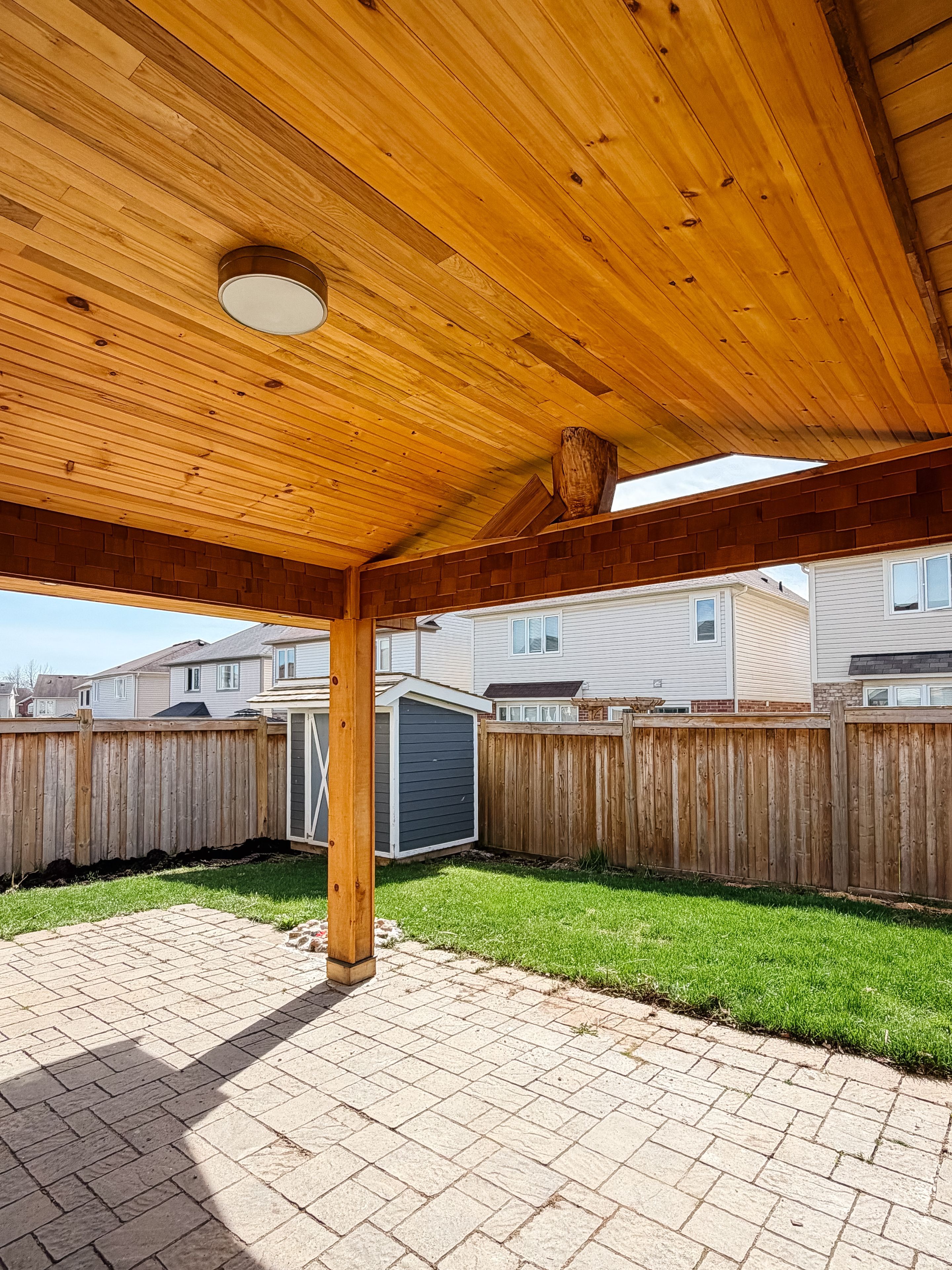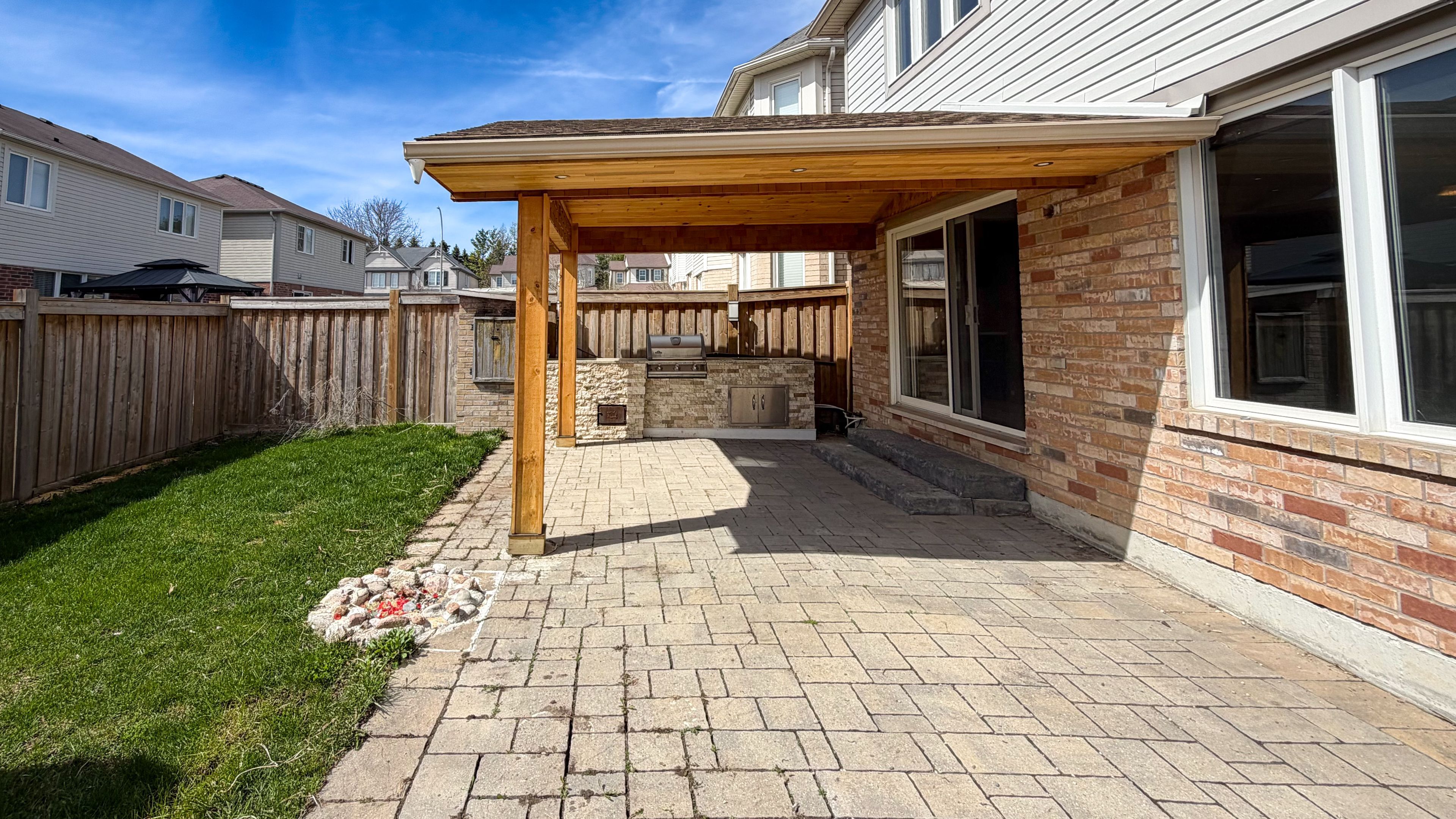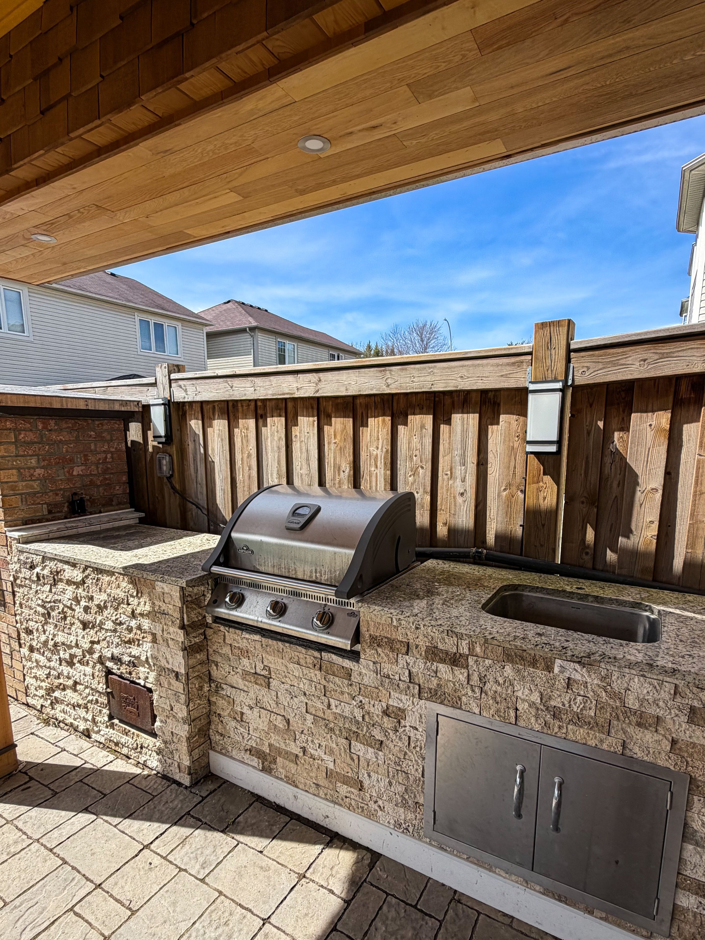 • Fenced yard with a custom gazebo and outdoor kitchen, perfect for entertaining.
