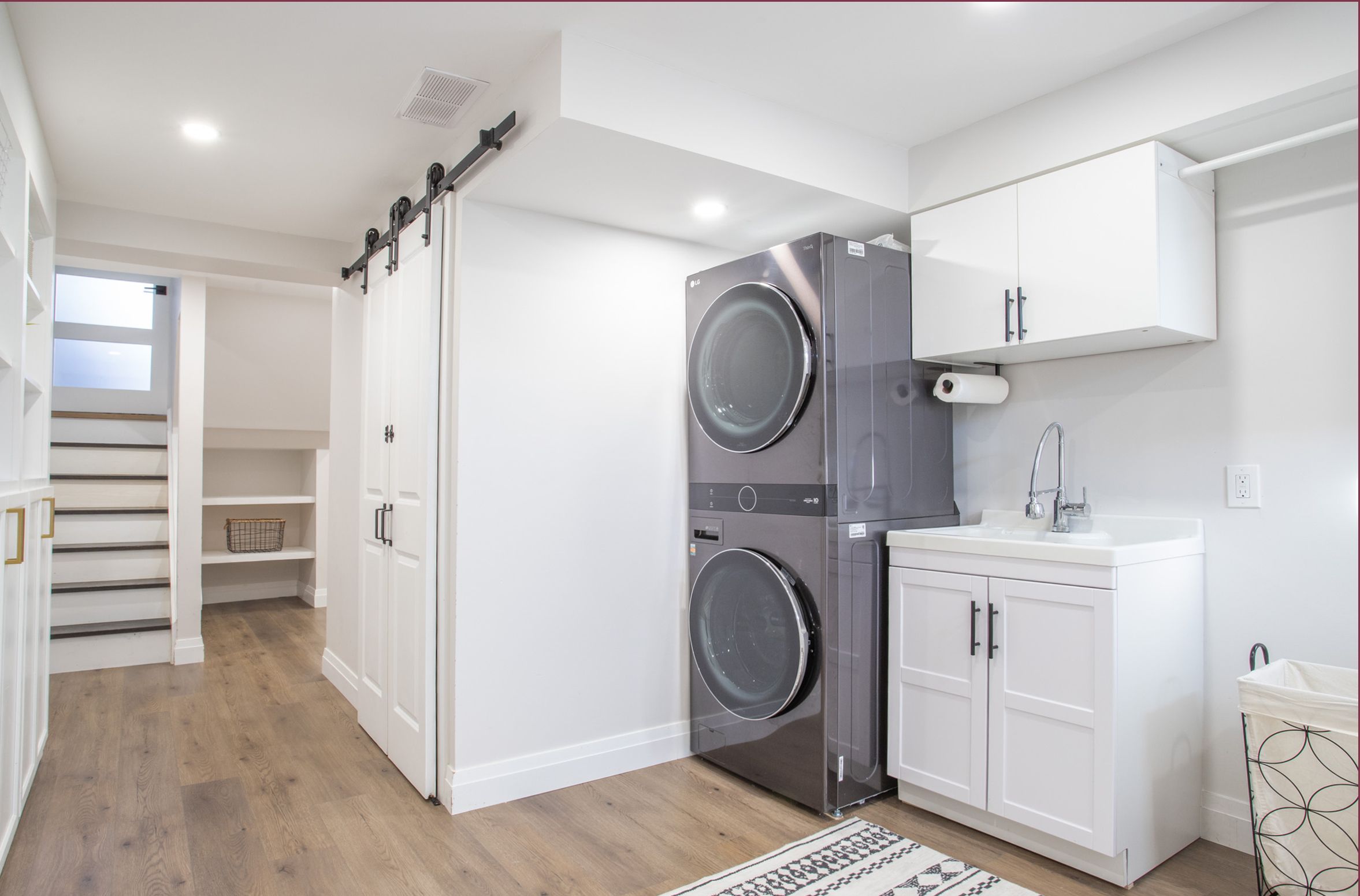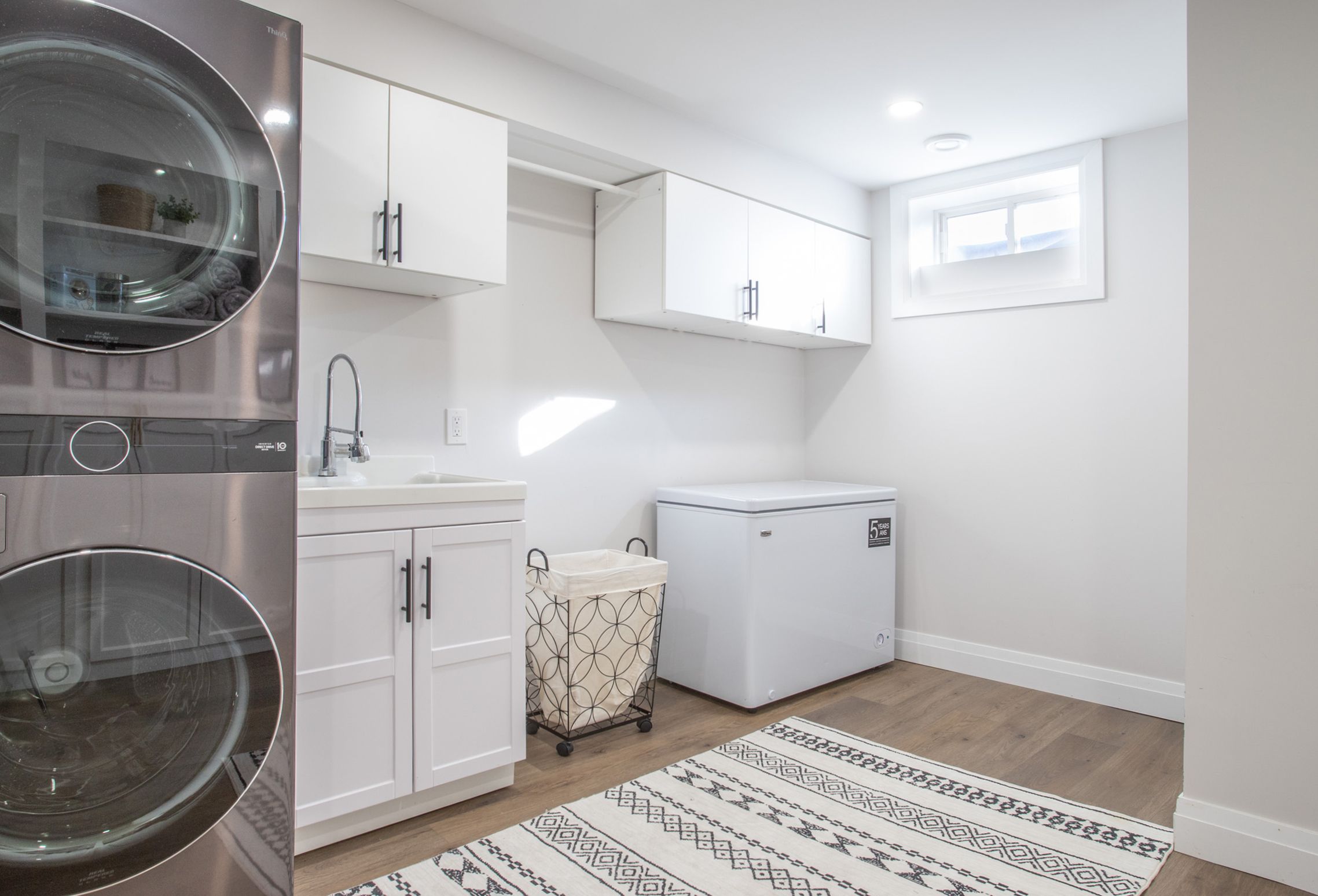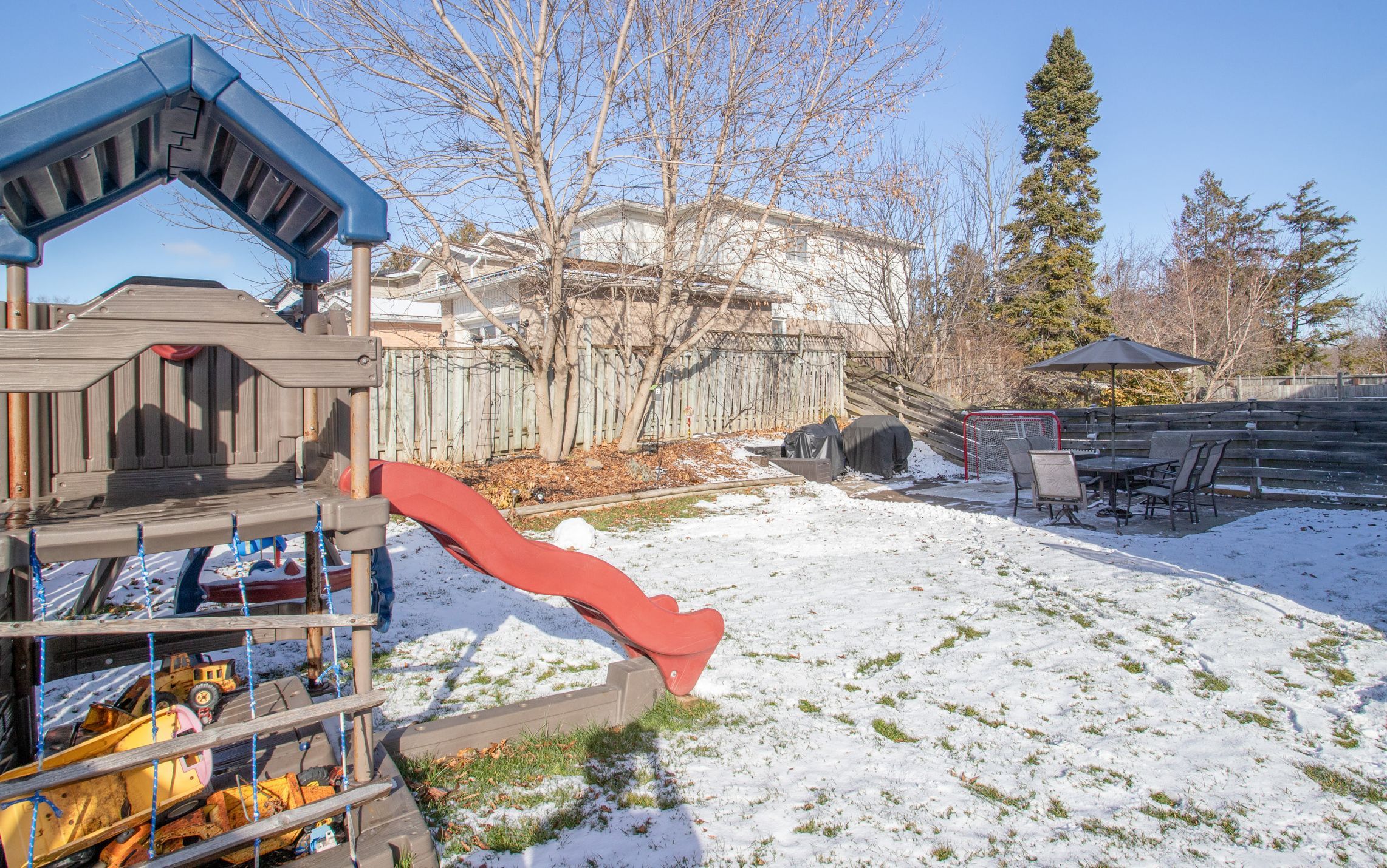 Welcome to your next family home on a quiet, family-friendly court! This beautifully maintained 3-bedroom, 2-bath link home (connected only at the garage for extra privacy) sits proudly on a spacious corner lot and offers an inviting blend of comfort, style, and convenience. The heart of the home is the modern, beautifully upgraded kitchen, complete with a large center island-ideal for cooking, gathering, and entertaining. The kitchen flows seamlessly into the dining room, which overlooks the living room, creating an open, connected feel the whole family will love. The bright living room has soaring ceilings, pot lights, and large windows that fill the space with natural light. A cozy gas fireplace makes it the perfect spot for family movie nights or relaxing evenings at home. Upstairs, you'll find three comfortable bedrooms and a well-appointed bathroom, offering plenty of room for a growing family or guests. The finished basement offers a second bathroom with a large walk in glass shower. The stackable washer and dryer are tucked nicely beside a large laundry tub and ample cabinets. The large crawl space is ideal for lots of storage. The one car garage has a rear door accessing the fenced in backyard and adjacent to the separate entrance to the home. Outside, enjoy the benefits of a prime corner lot with extra yard space and the peaceful charm of living on a court. You're just steps to shopping, parks, and a nearby soper creek, making everyday errands-and weekend adventures-wonderfully convenient. Come see why this is the perfect place for your family to call home!