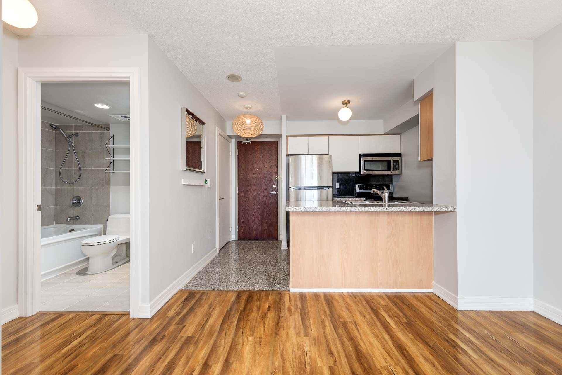 Welcome to your new home in the heart of north york! This spacious and functional 1-bedroomcondo offers a perfect blend of style, comfort, and convenience. Perched on the 26th floor, this unit features a bright open-concept living space, parking, locker, and a private balcony with stunning east-facing views of the city. Beautifully upgraded throughout, the primary bedroom comfortably fits a king-sized bed and boasts a walk-in closet. Updated lighting and a refreshed bathroom complete this move-in-ready gem. Located steps from whole foods, longos, shops, and top-rated restaurants, this condo offers unbeatable convenience. With ttc subway access just steps away and quick connections to hwy 401, commuting is effortless. Don't miss this opportunity to live in a beautifully appointed unit in one of toronto's most vibrant neighborhoods! **extras** one of north york's best buildings, you'll appreciate reasonable maintenance fees that include heat, hydro, and water! The building also offers exceptional amenities, including a 24-hour concierge/security, an indoor pool, a gym, and more!