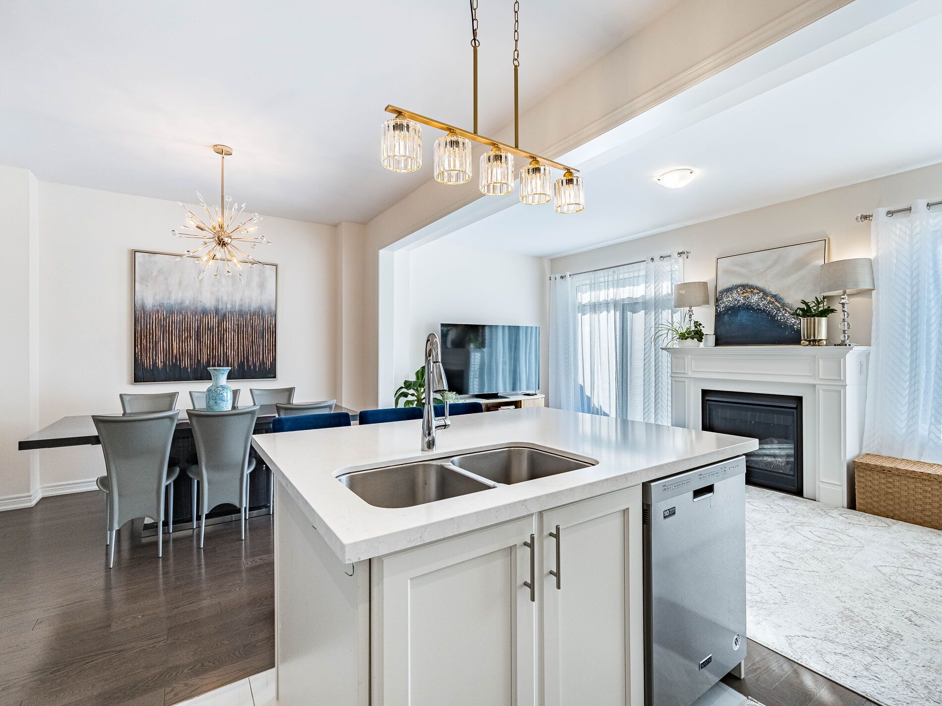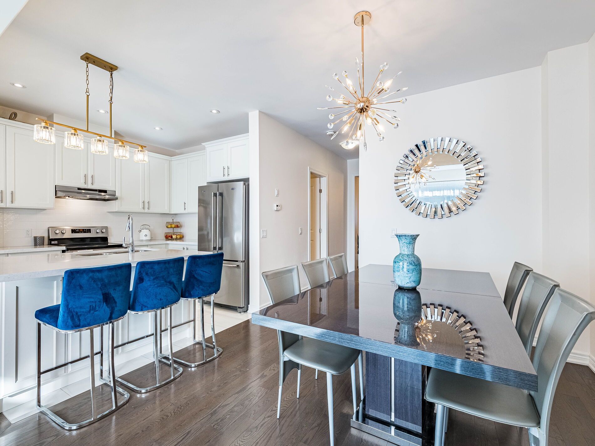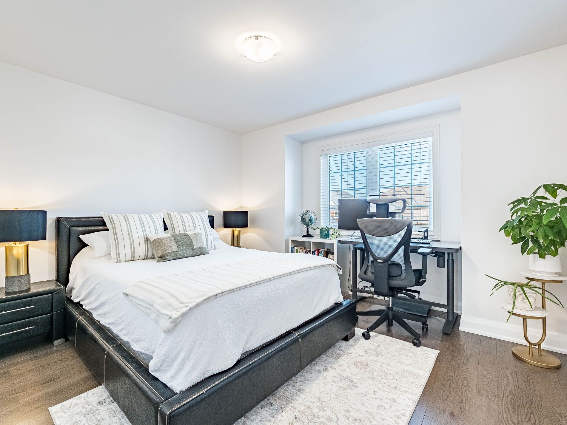 This stunning & spacious 1,987 sq. Ft. Bright townhouse offers modern living at its finest and is even larger than many semi-detached homes in the neighborhood. It features 3 generously sized bedrooms and 2. 5 baths, with hardwood floors throughout, including brand-new hardwood flooring and fresh paint in all bedrooms (2025). The kitchen features a quartz countertop, elegant backsplash (2025), pot lights, stainless steel appliances, and large windows that bring in natural light. Master bedroom offers a spacious walk-in closet, upgraded blinds, and a luxurious ensuite with double sinks, a glass shower, and a modern tub. The bright backyard, with a newer fence (2023), is perfect for entertaining or relaxing. A bright, carpet free, move-in-ready home with contemporary charm, thoughtful upgrades, and plenty of space for comfortable living!