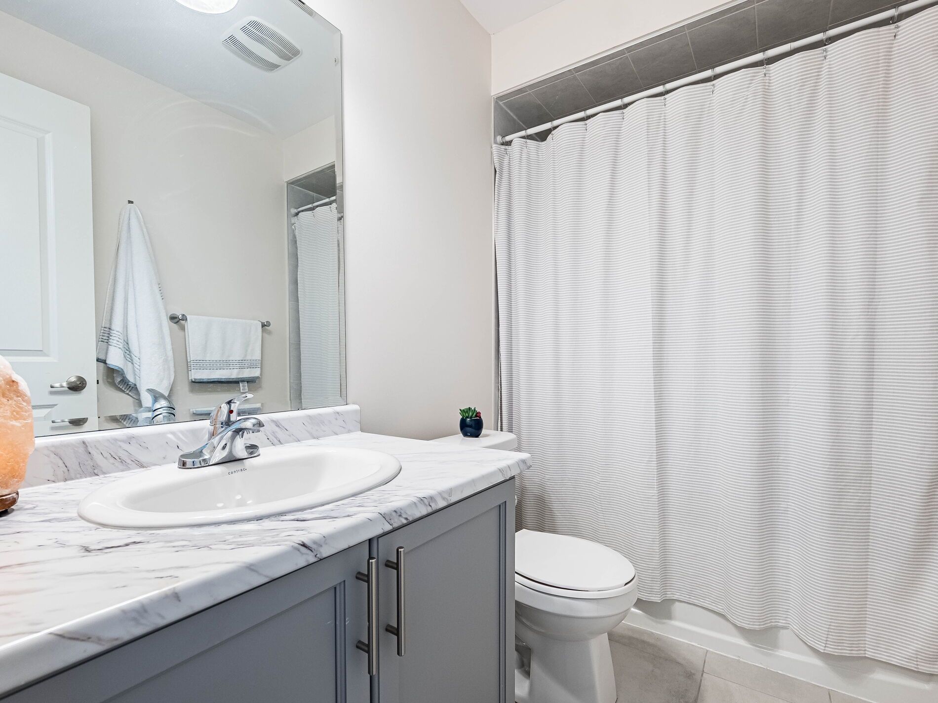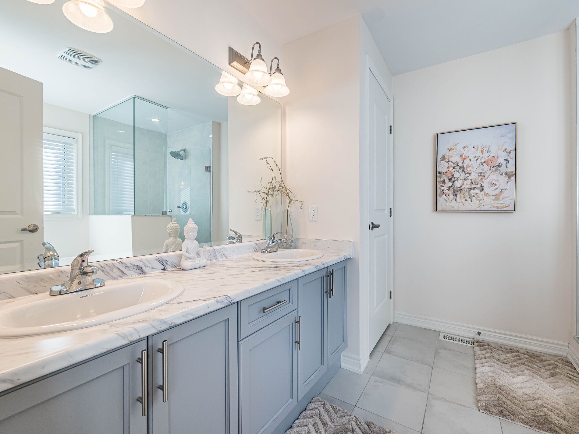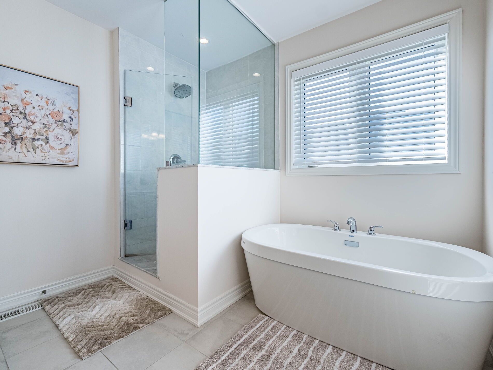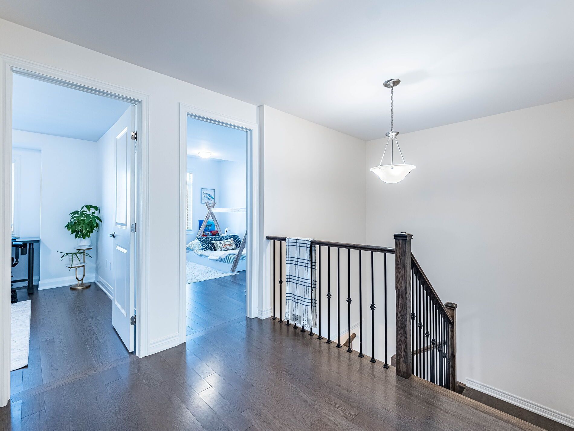 This stunning & spacious 1,987 sq. Ft. Bright townhouse offers modern living at its finest and is even larger than many semi-detached homes in the neighborhood. It features 3 generously sized bedrooms and 2. 5 baths, with hardwood floors throughout, including brand-new hardwood flooring and fresh paint in all bedrooms (2025). The kitchen features a quartz countertop, elegant backsplash (2025), pot lights, stainless steel appliances, and large windows that bring in natural light. Master bedroom offers a spacious walk-in closet, upgraded blinds, and a luxurious ensuite with double sinks, a glass shower, and a modern tub. The bright backyard, with a newer fence (2023), is perfect for entertaining or relaxing. A bright, carpet free, move-in-ready home with contemporary charm, thoughtful upgrades, and plenty of space for comfortable living!