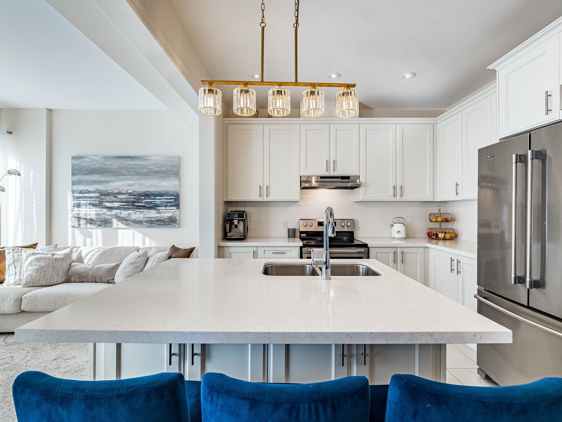 • Modern kitchen with quartz countertops and stainless steel appliances.