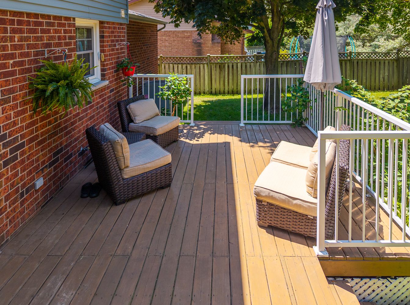 • Spacious, fully fenced yard with a large deck for gatherings.