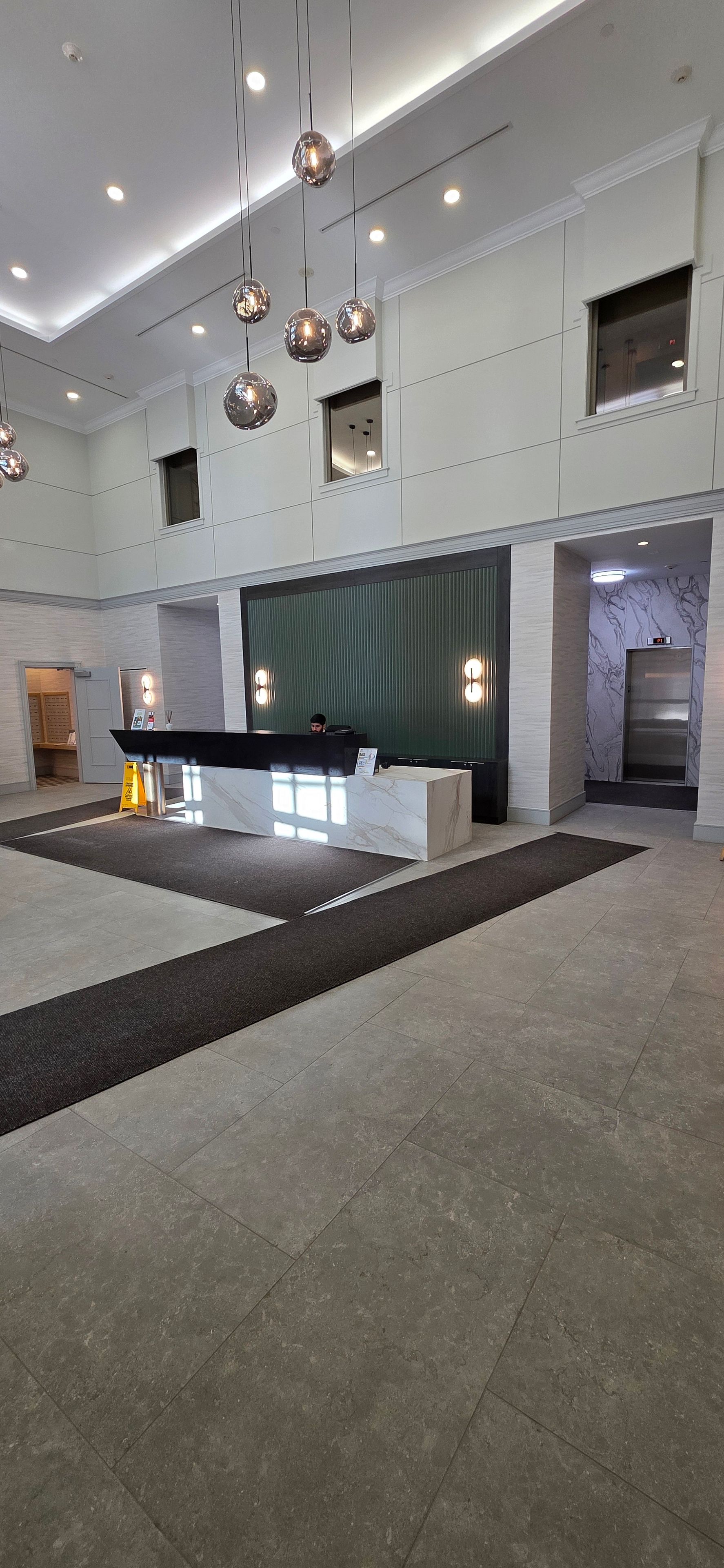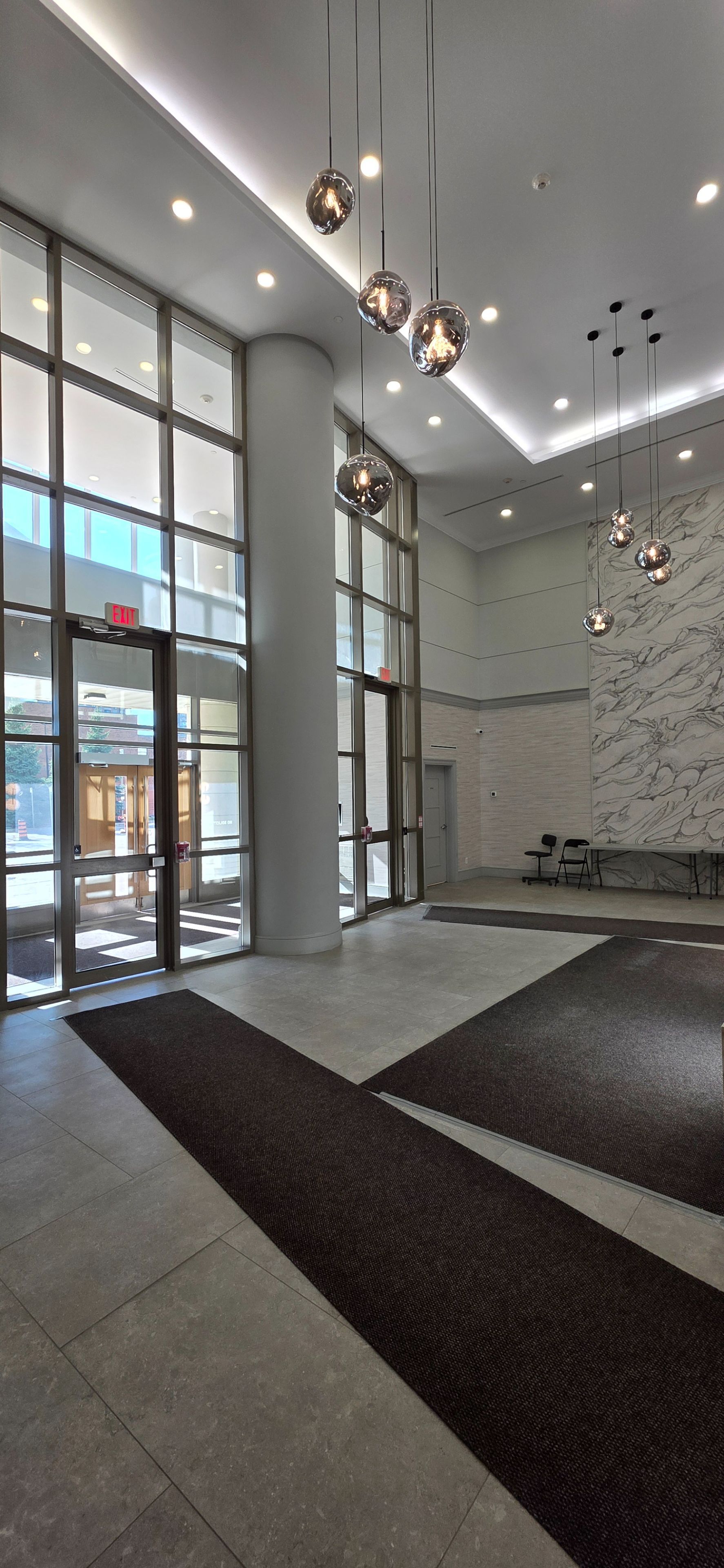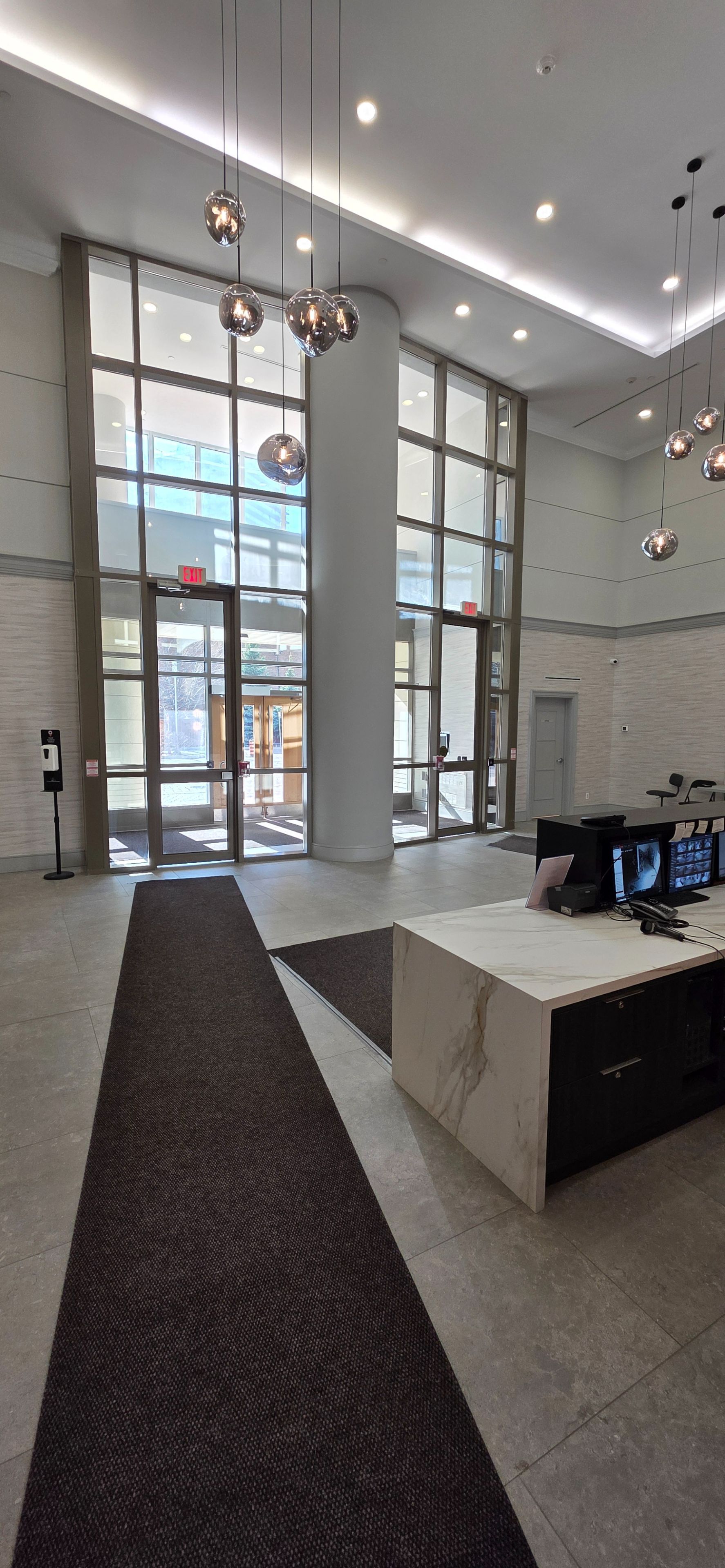 • Floor-to-ceiling windows fill the space with natural light.