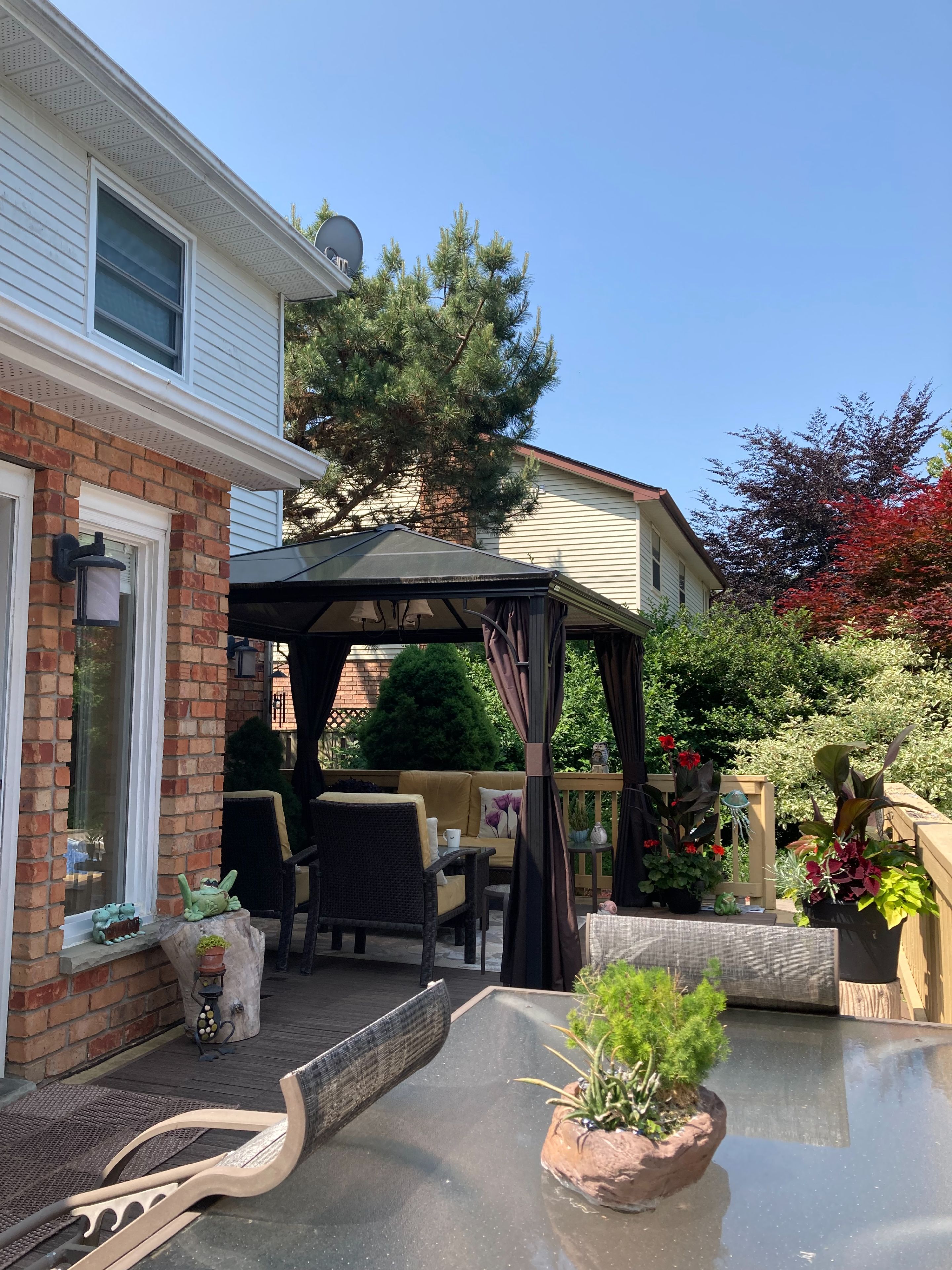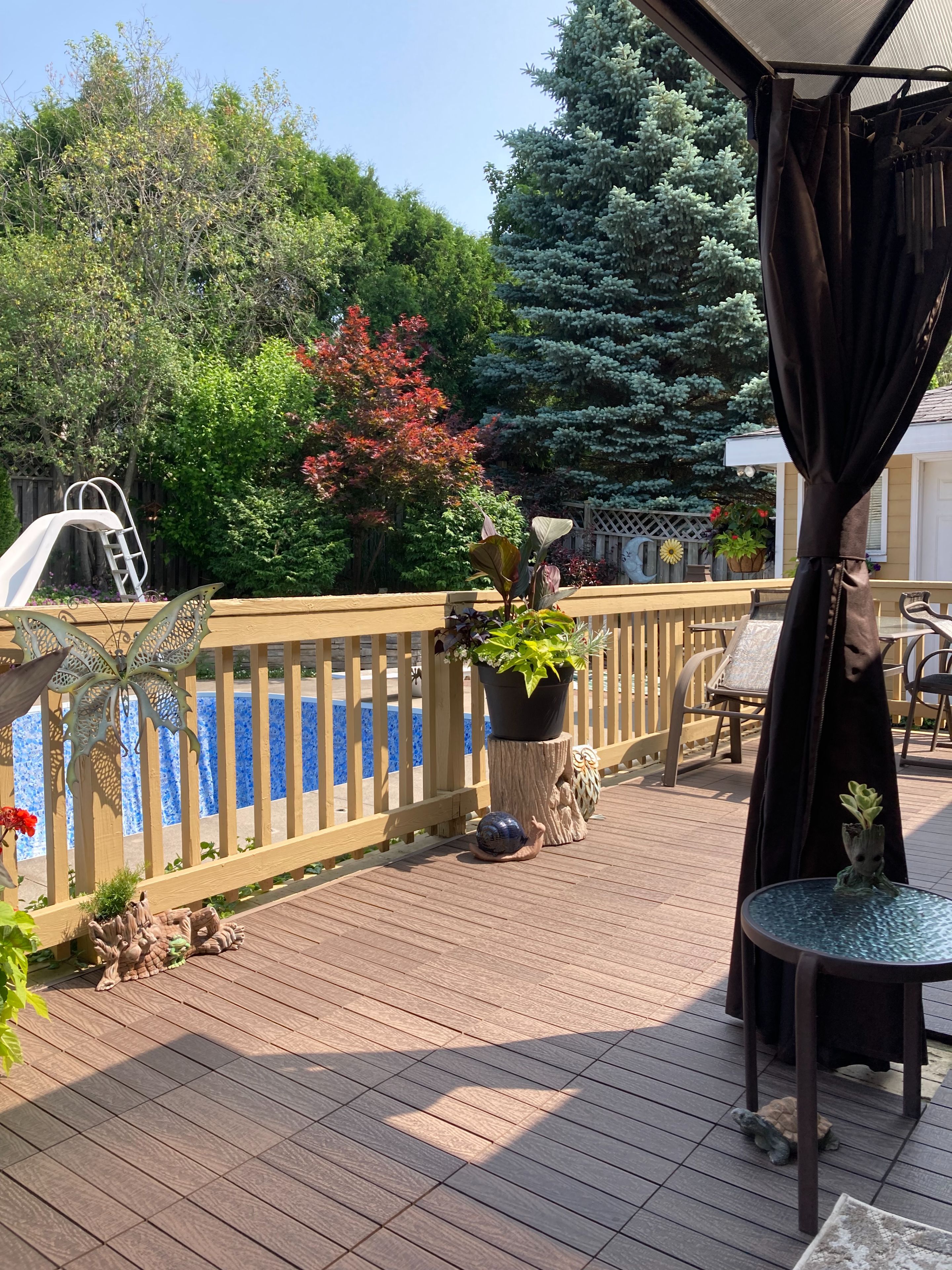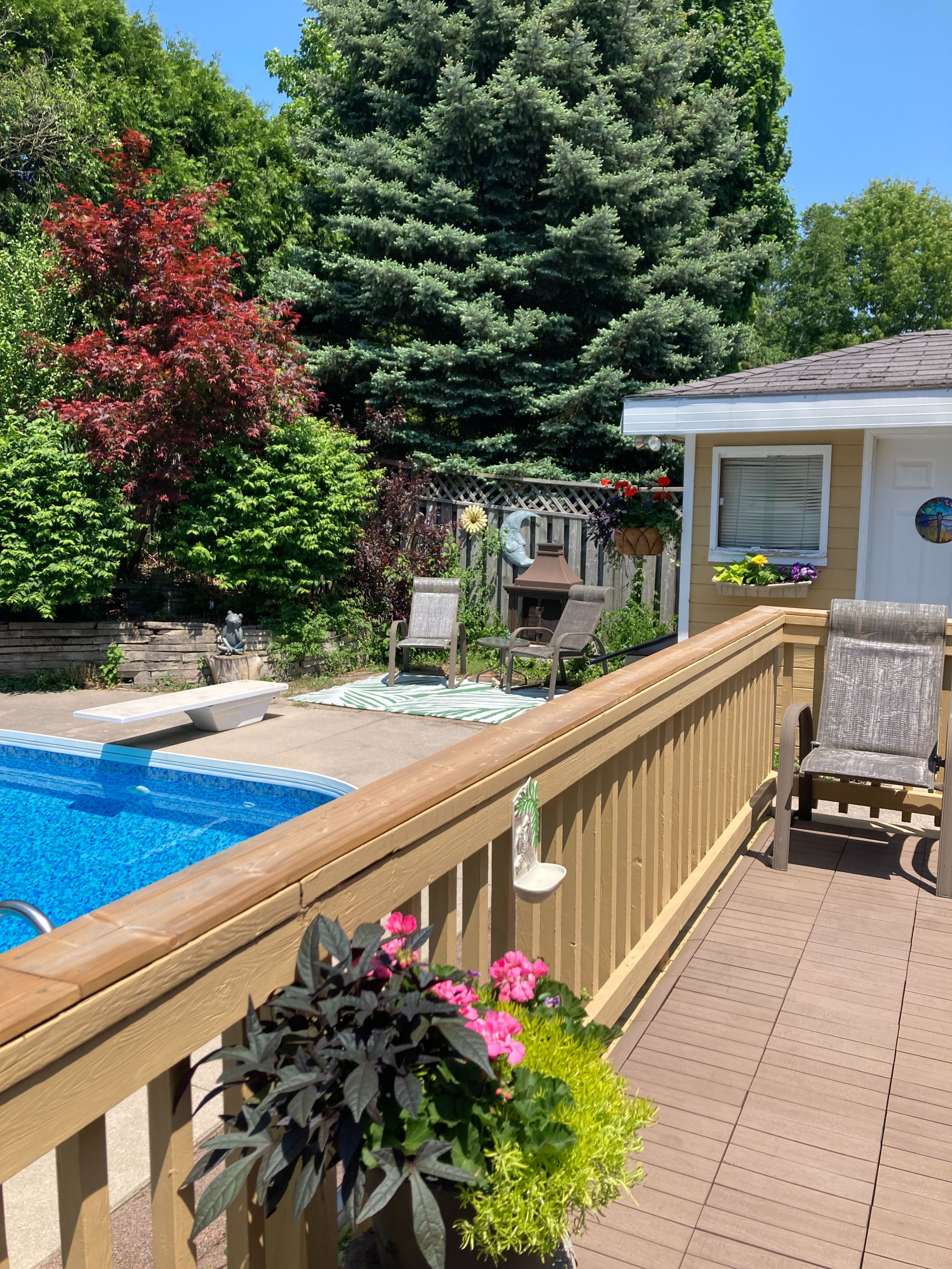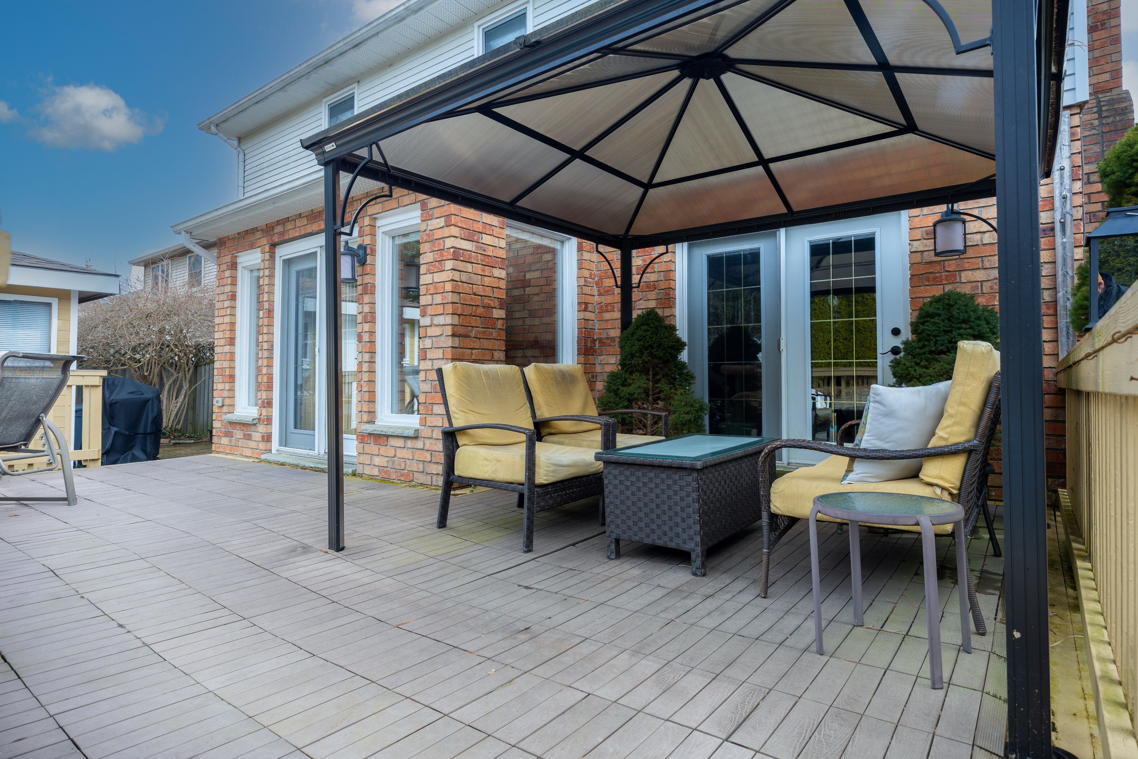 • Large deck overlooking the backyard and pool area.