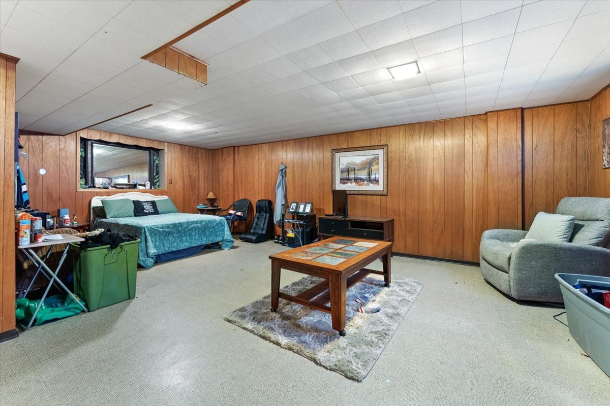 • Spacious backyard with mature trees, perfect for family activities and entertaining.