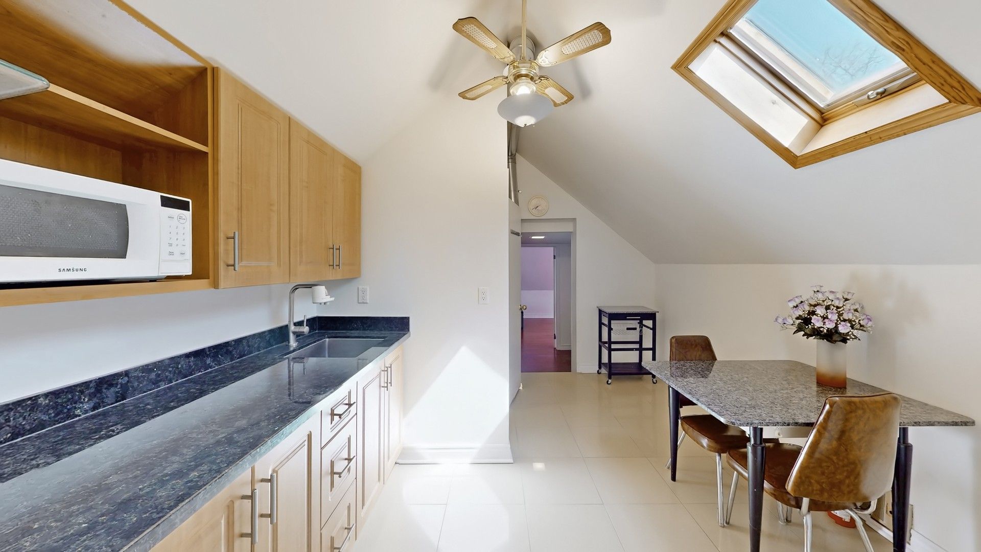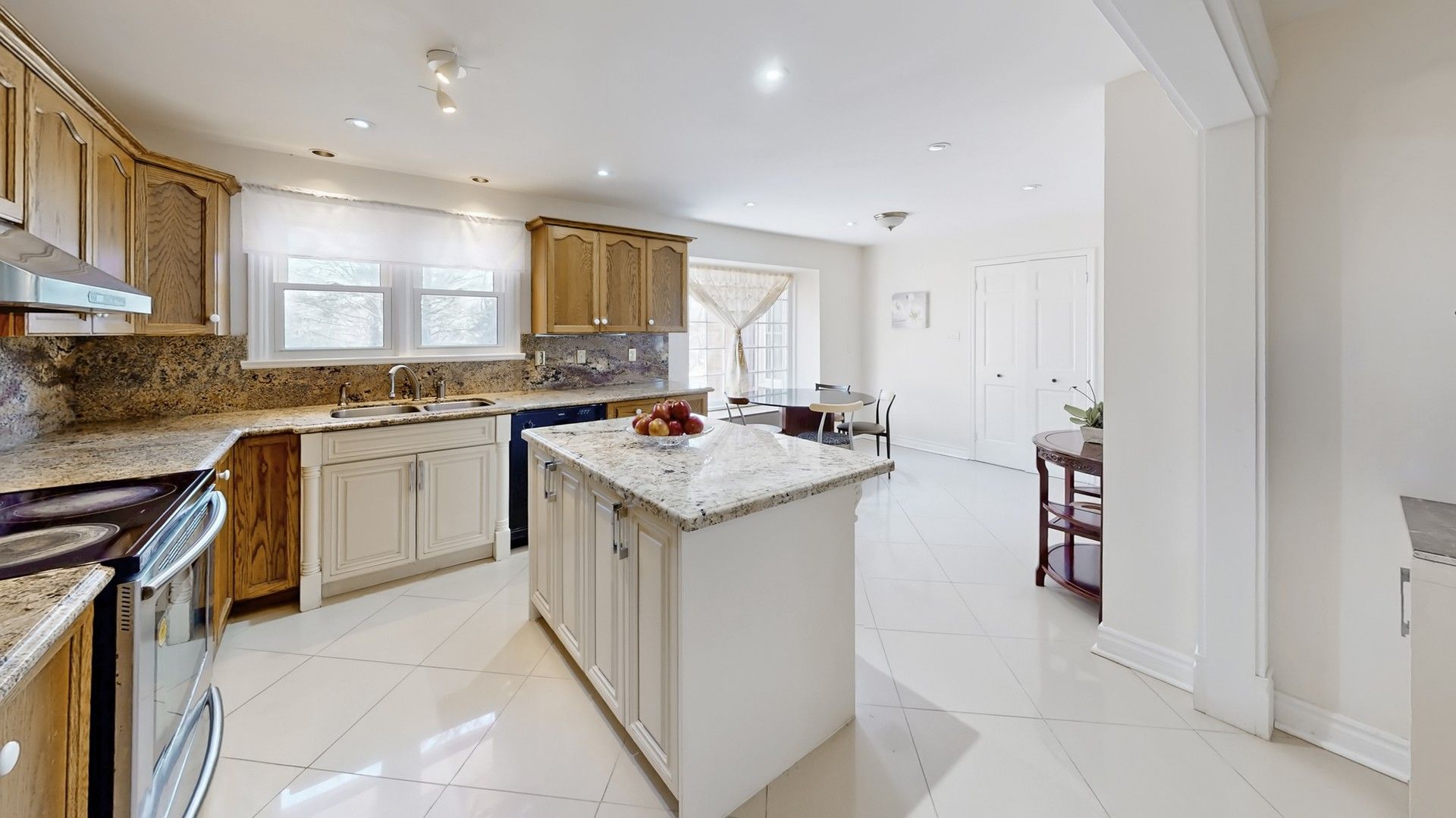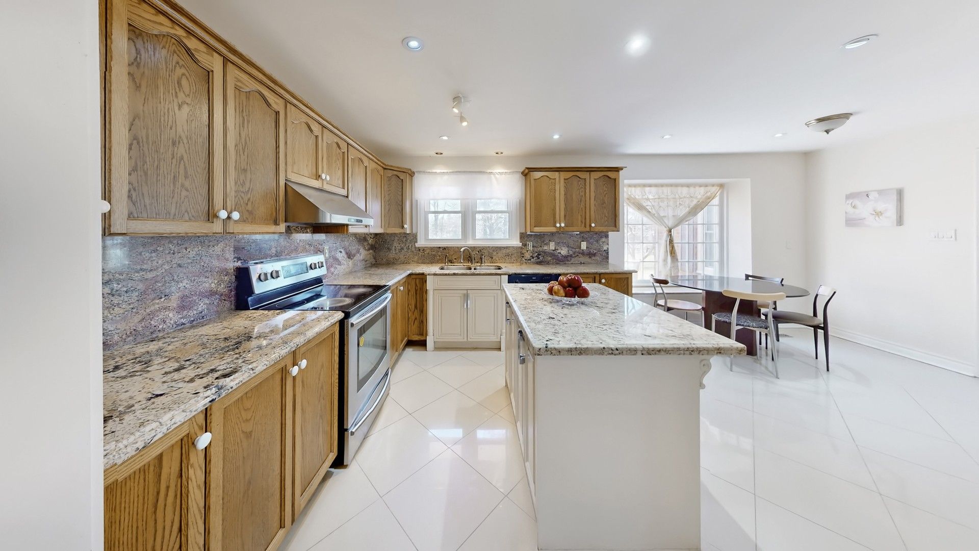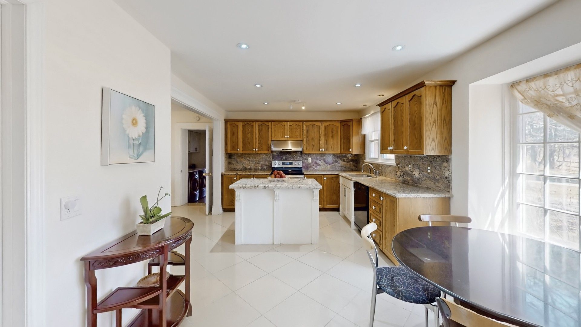 • Country-style kitchen with picture windows for great natural light.