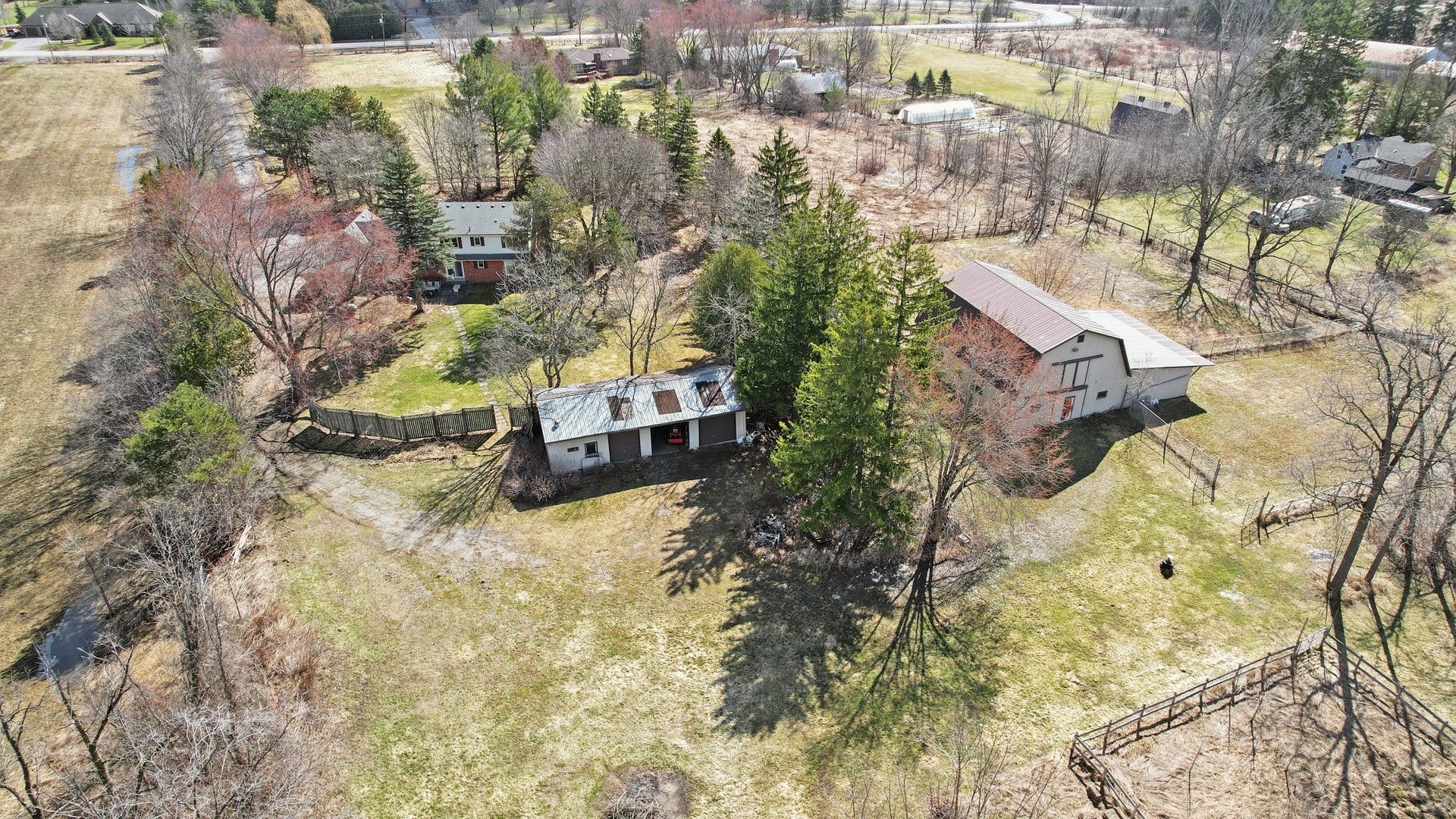 • Outbuildings with box stalls, perfect for equestrian enthusiasts or hobby farming.