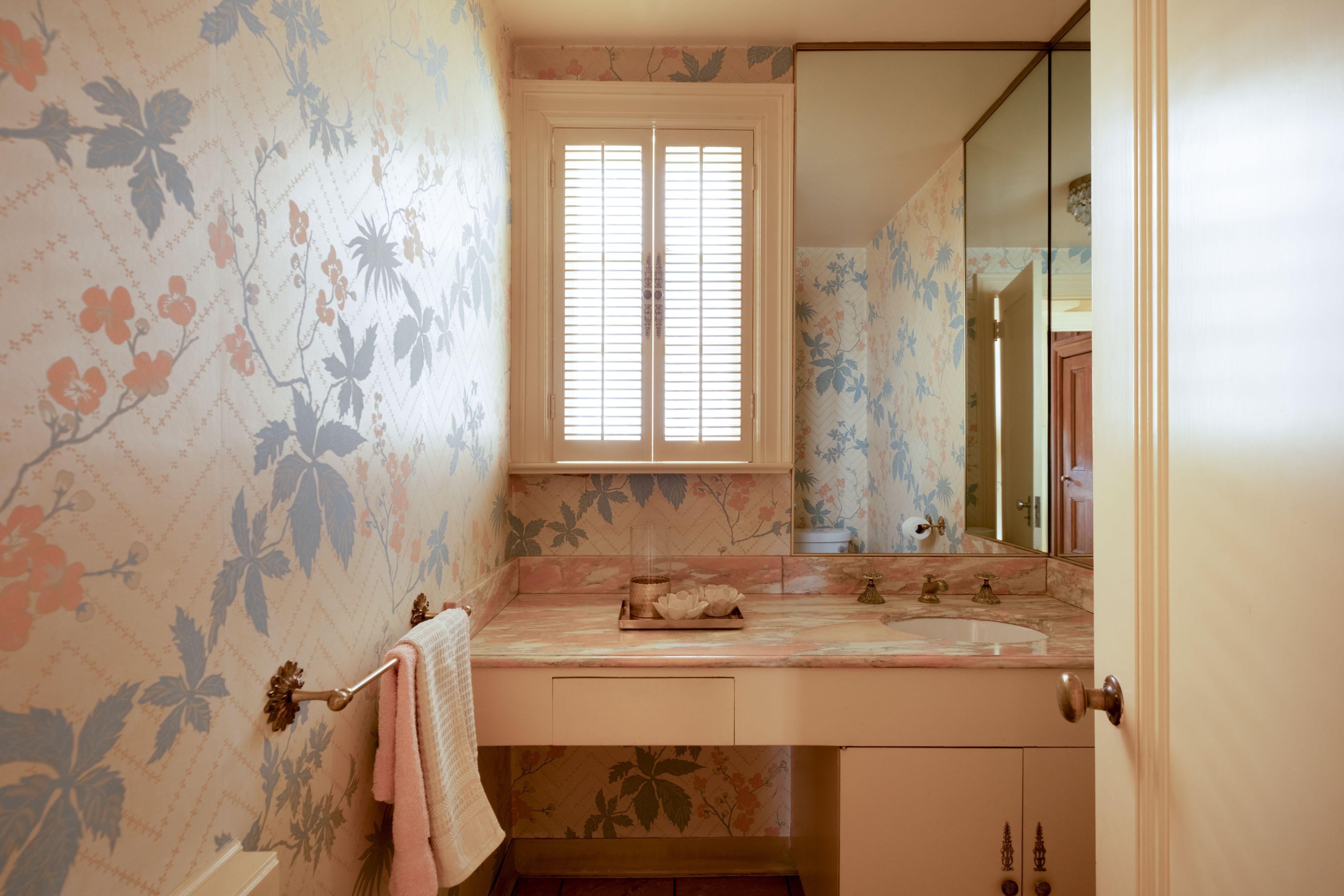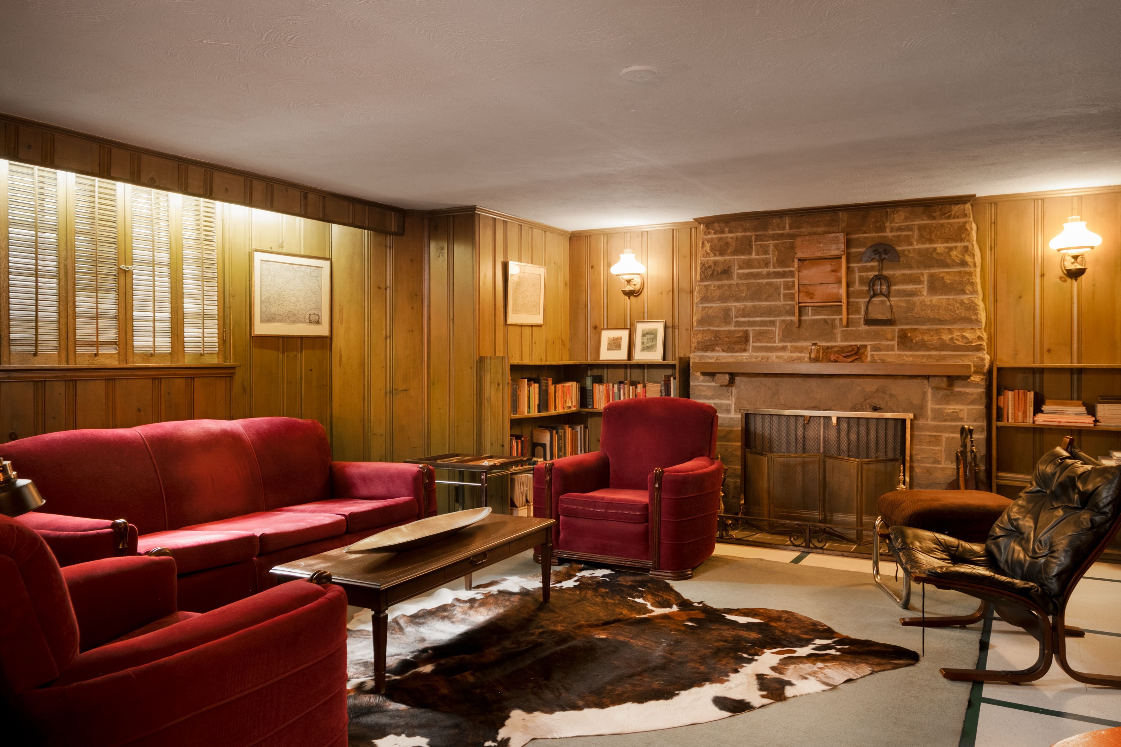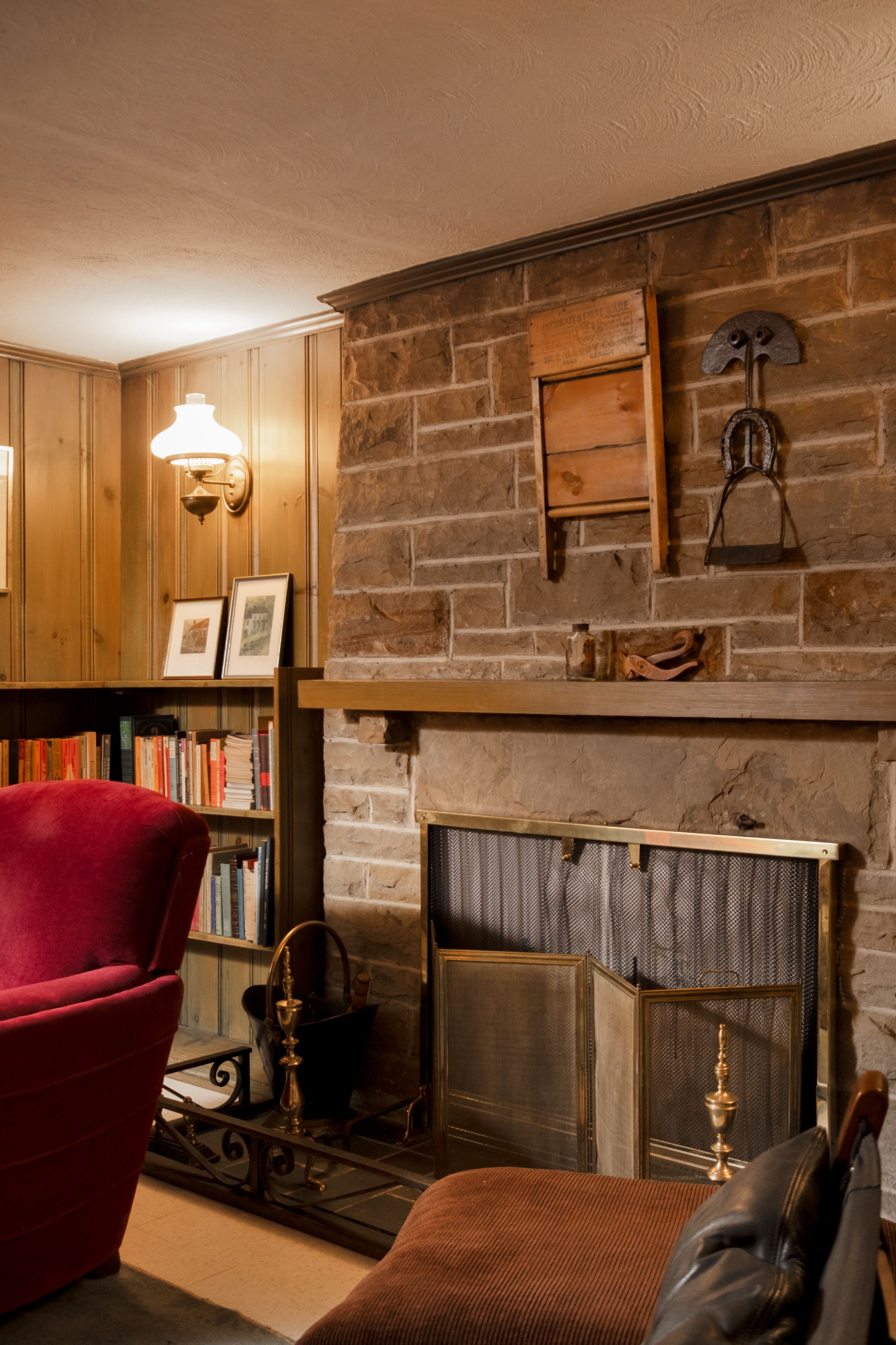 • Vintage marble fireplace in the living room adds character and warmth.