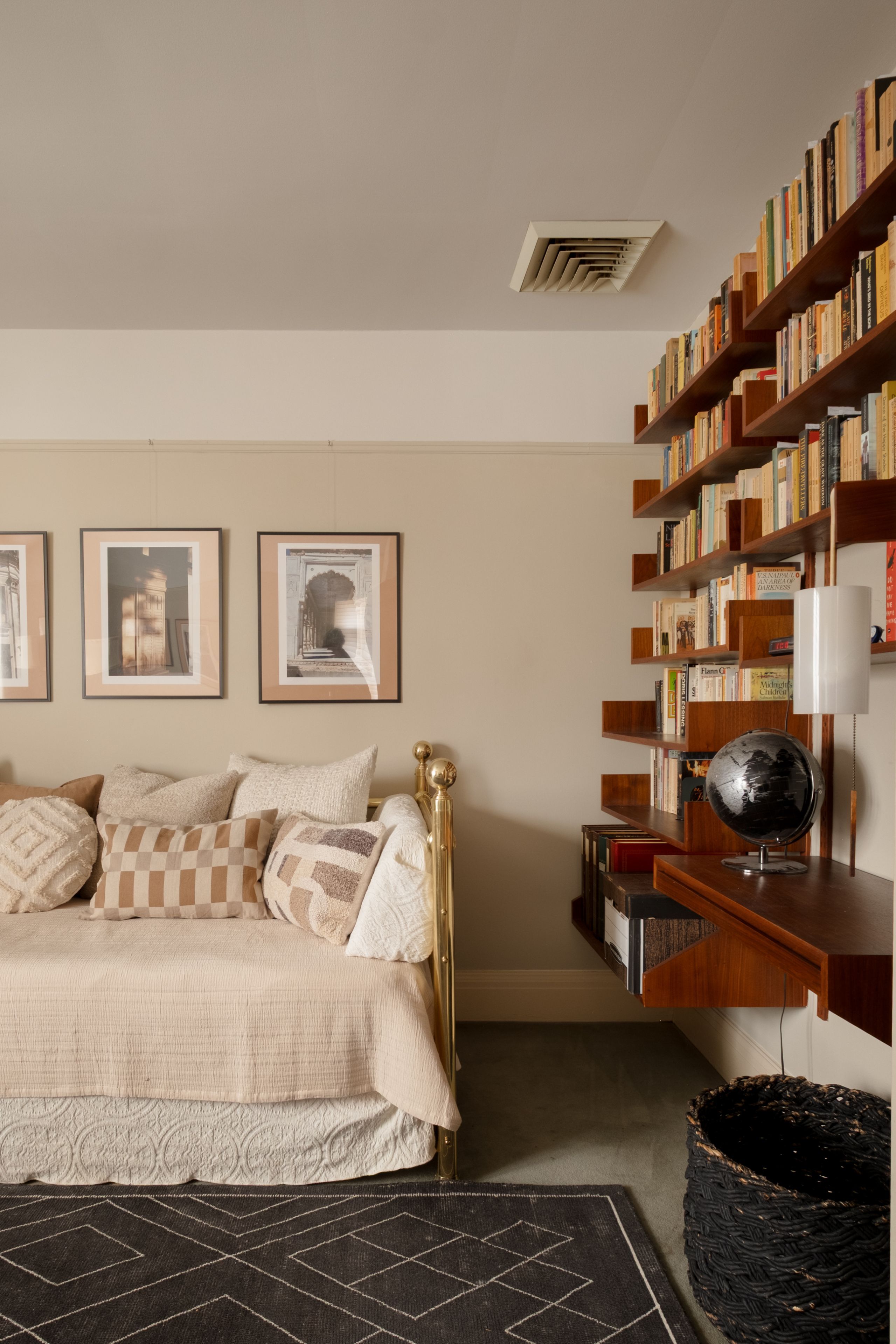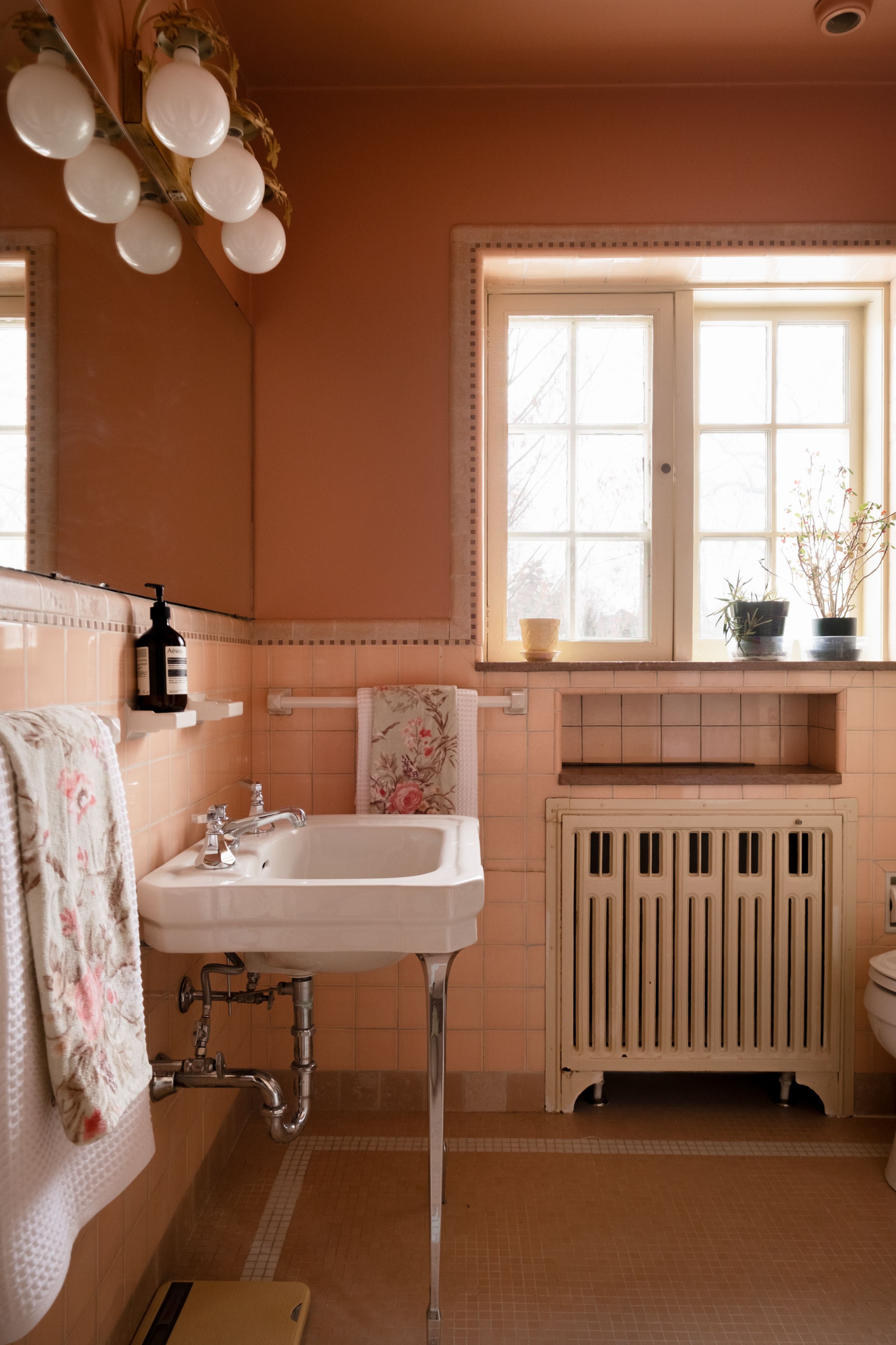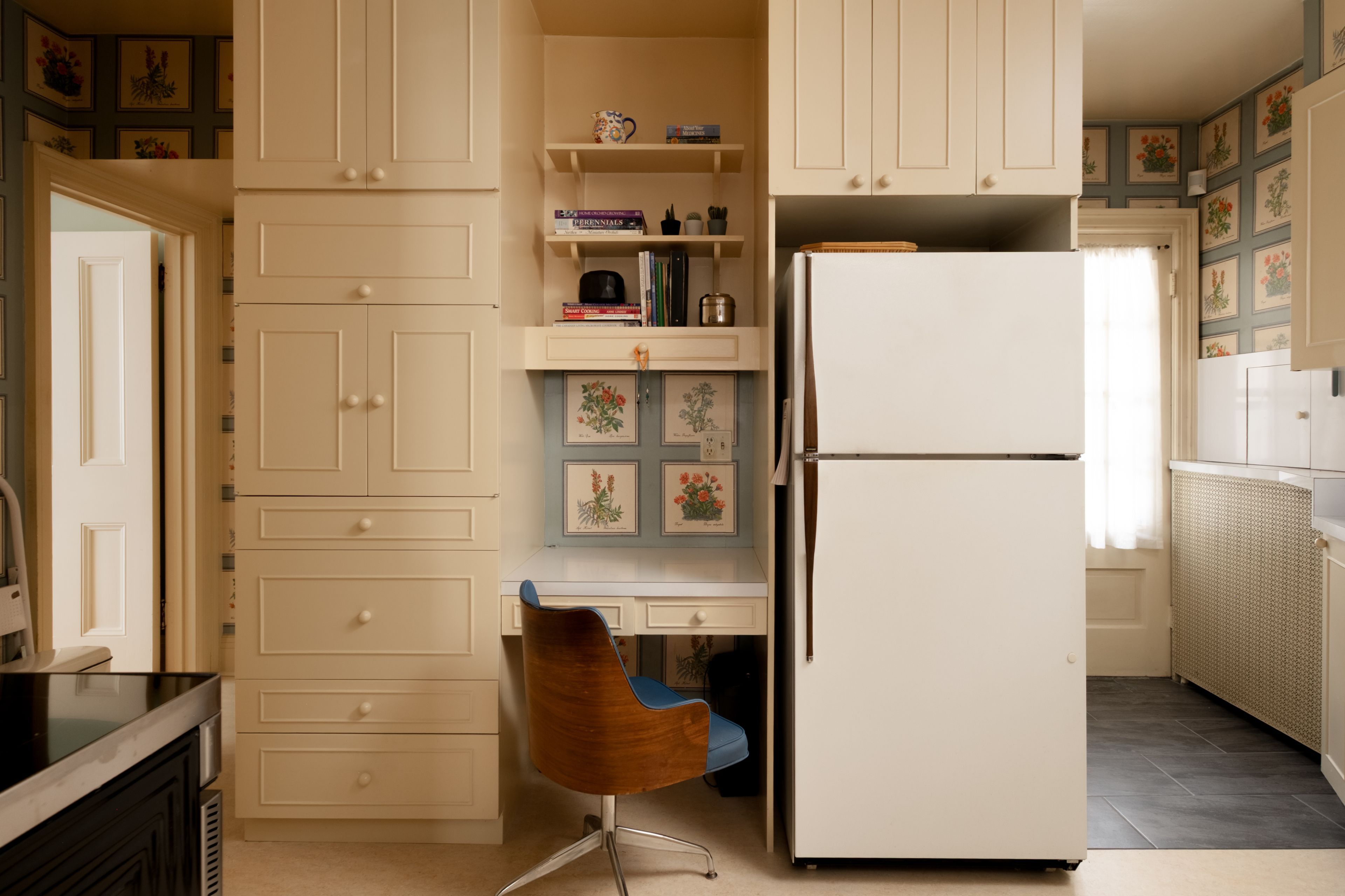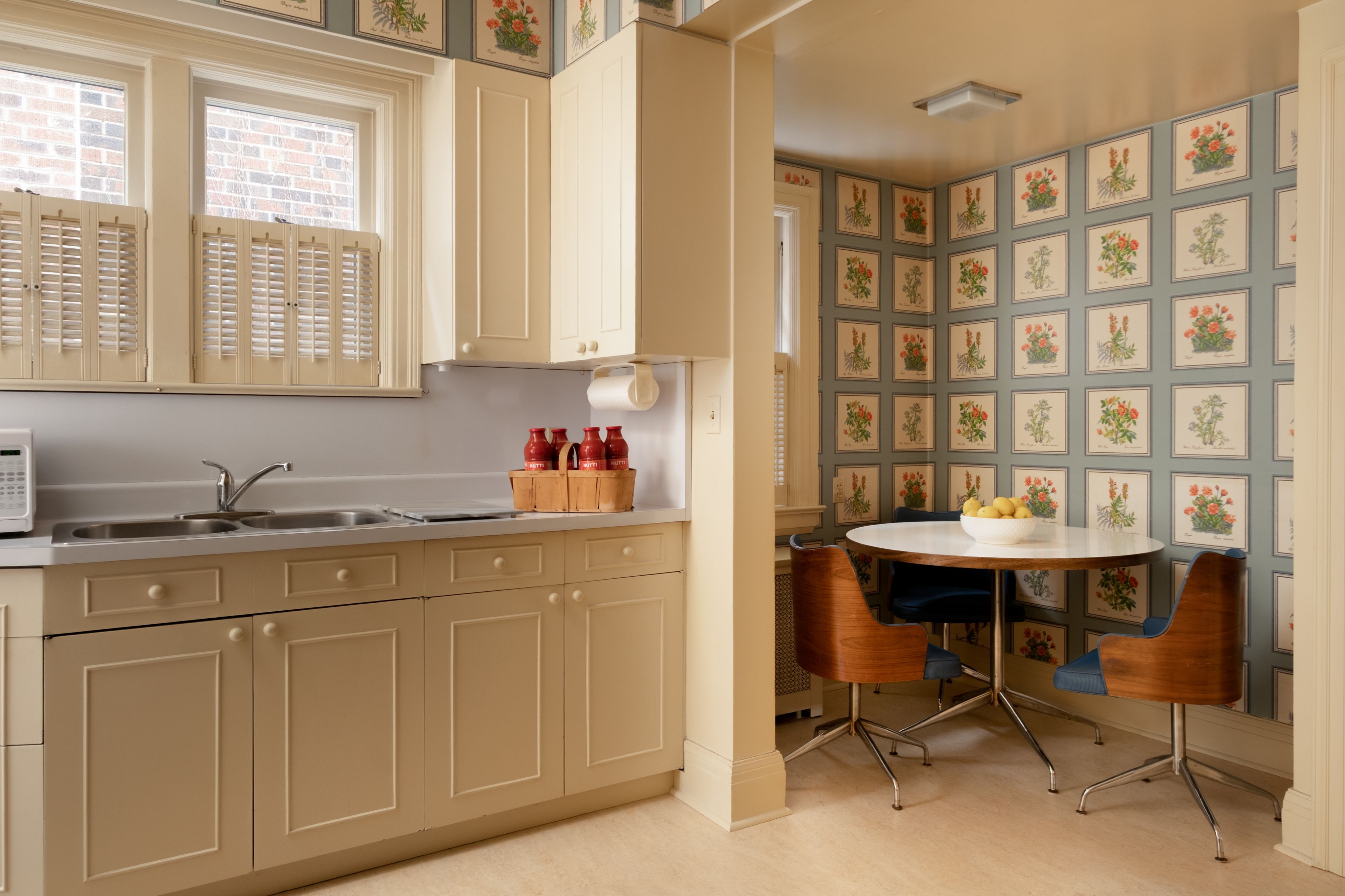• Vintage marble fireplace in the living room adds character and warmth.