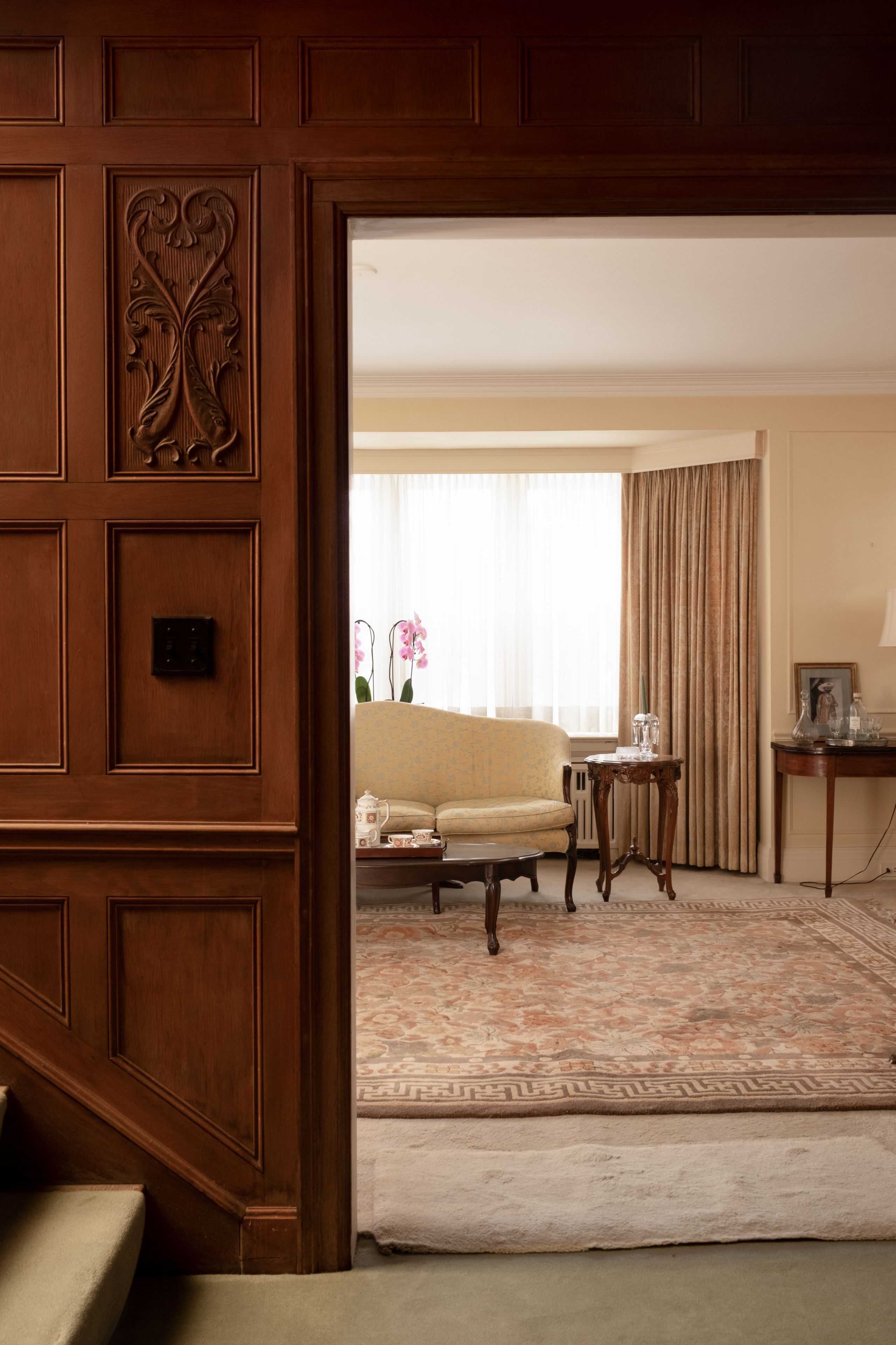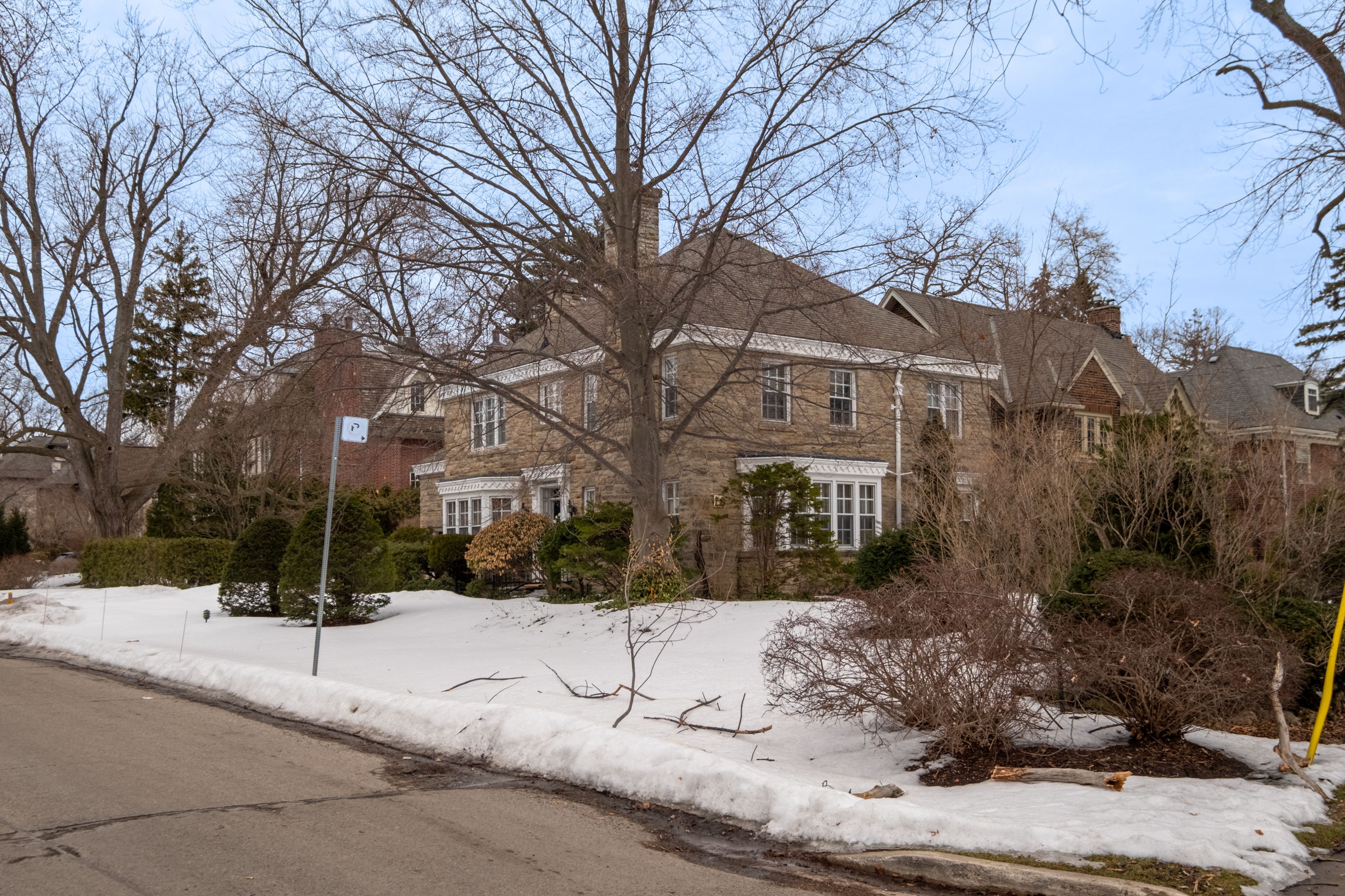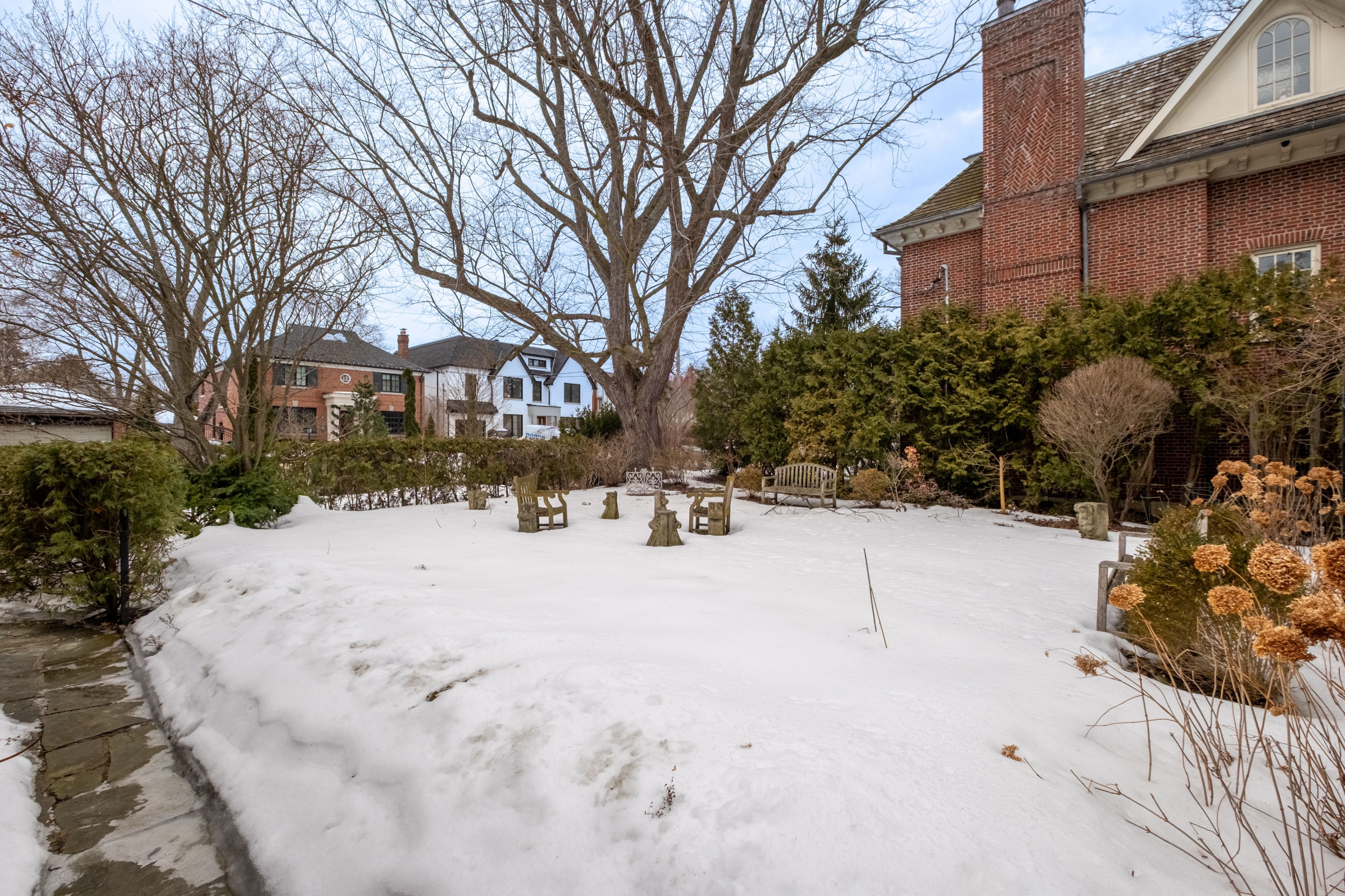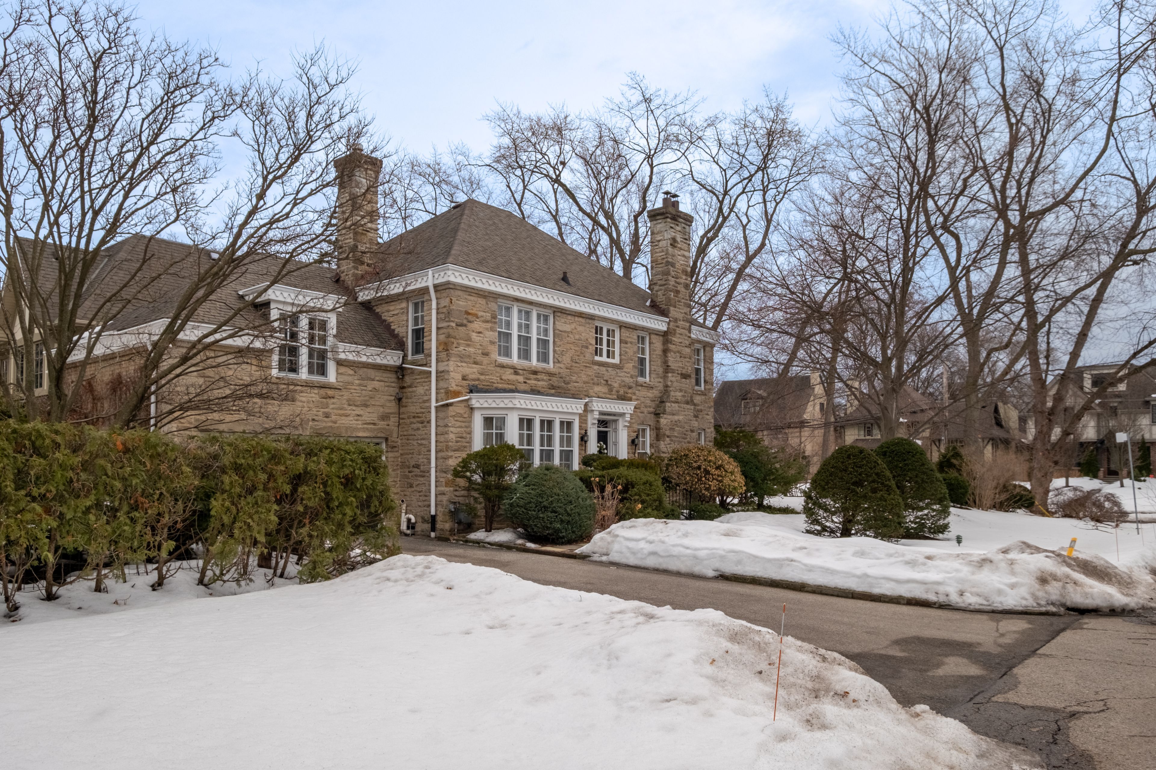Classic architecture for a modern family. Georgian-inspired and rich in original detail, this classic centre hall residence reflects the symmetry and proportion that define the kingsway's most enduring homes. Prominently positioned on a generous corner lot, it carries a quiet sense of presence - established, refined, and built to last. Offering over 2,800 square feet above grade, the home features generous principal rooms arranged in a traditional layout that balances openness with separation for family living. A vintage marble fireplace anchors the living room, while the foyer welcomes with original wood panelling that introduces warmth and character rarely replicated today. The second floor includes four spacious bedrooms and three bathrooms, along with thoughtful built-in storage and a cedar closet. The lower level spans over 1,200 square feet, with approximately 700 square feet finished, including a recreation area with a bar and wood-burning fireplace. The remaining space provides exceptional storage and utility. Outside, the tree-lined side yard offers a private garden setting within the established streetscape that defines the kingsway.