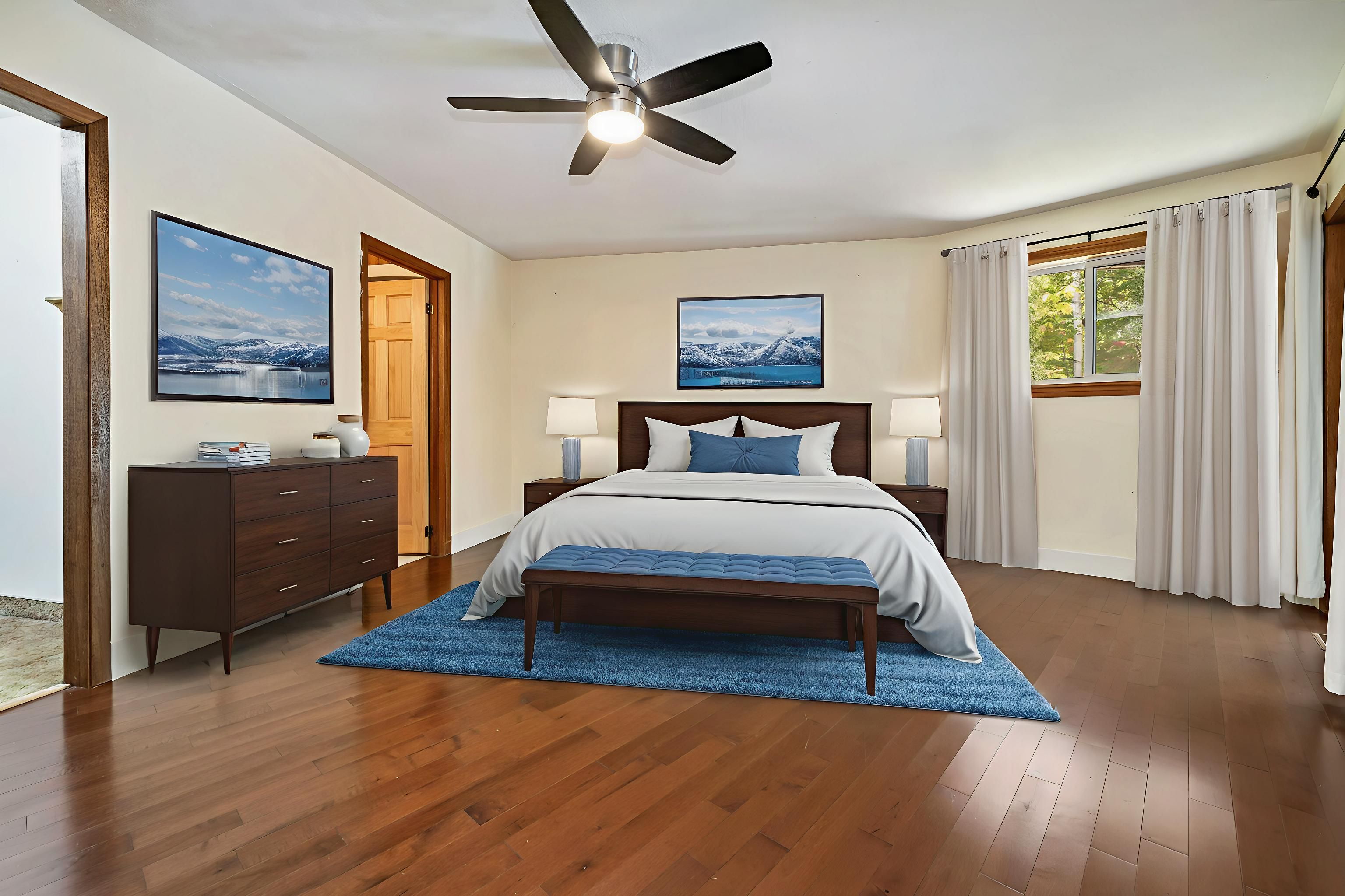 • West-facing deck ideal for enjoying seasonal views of the bay.